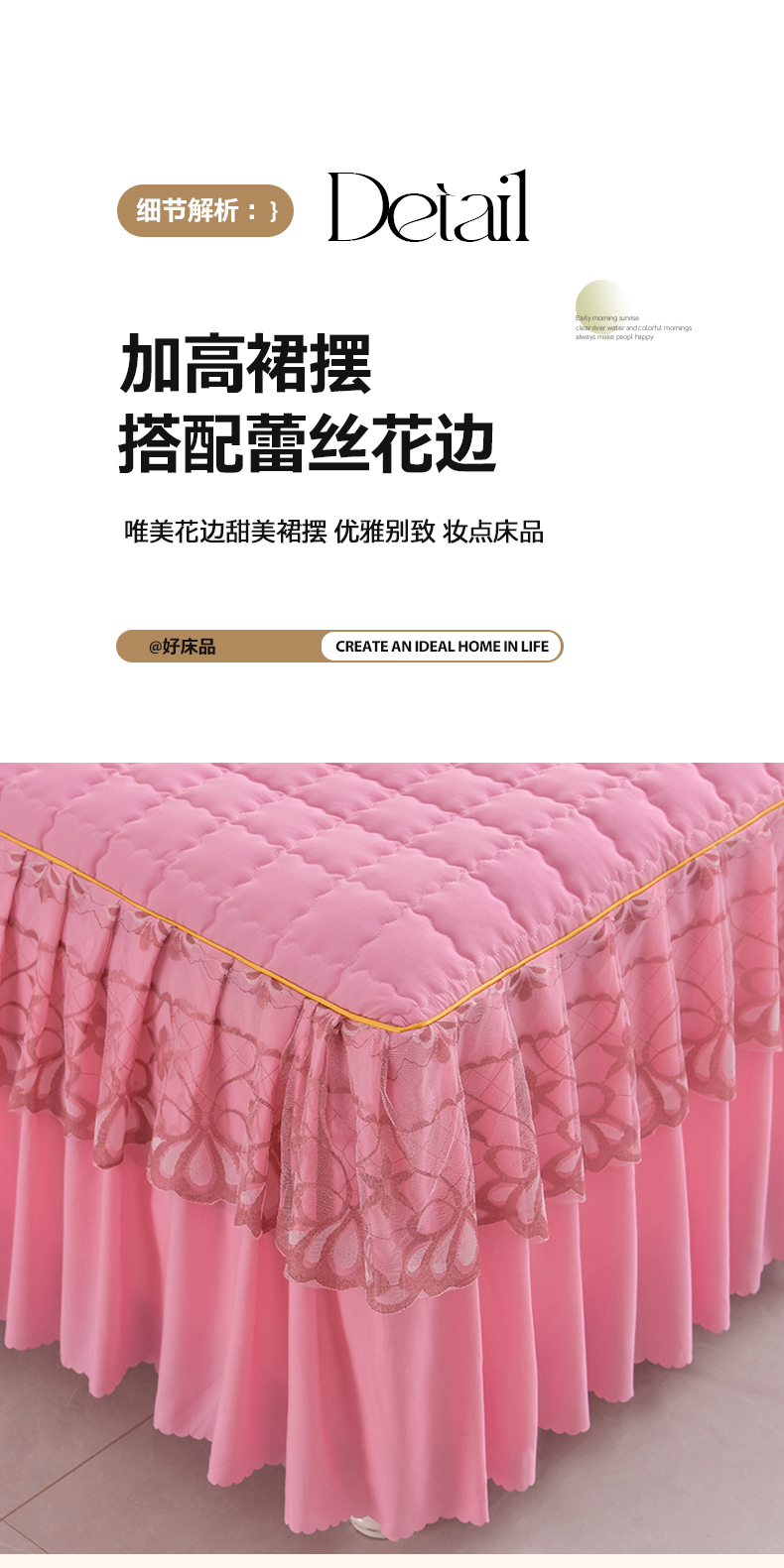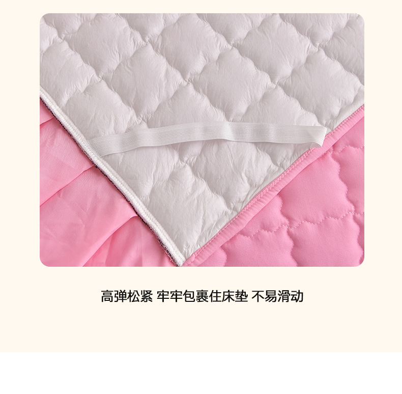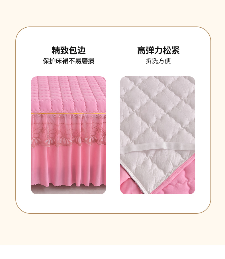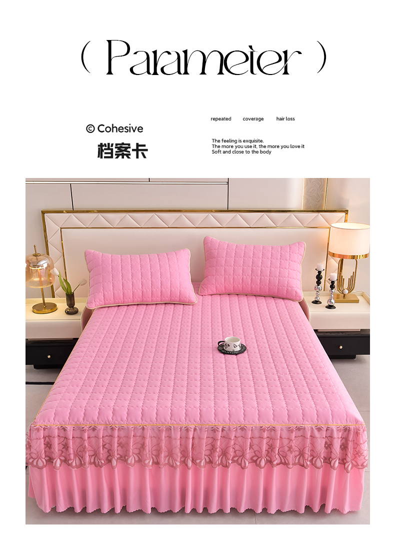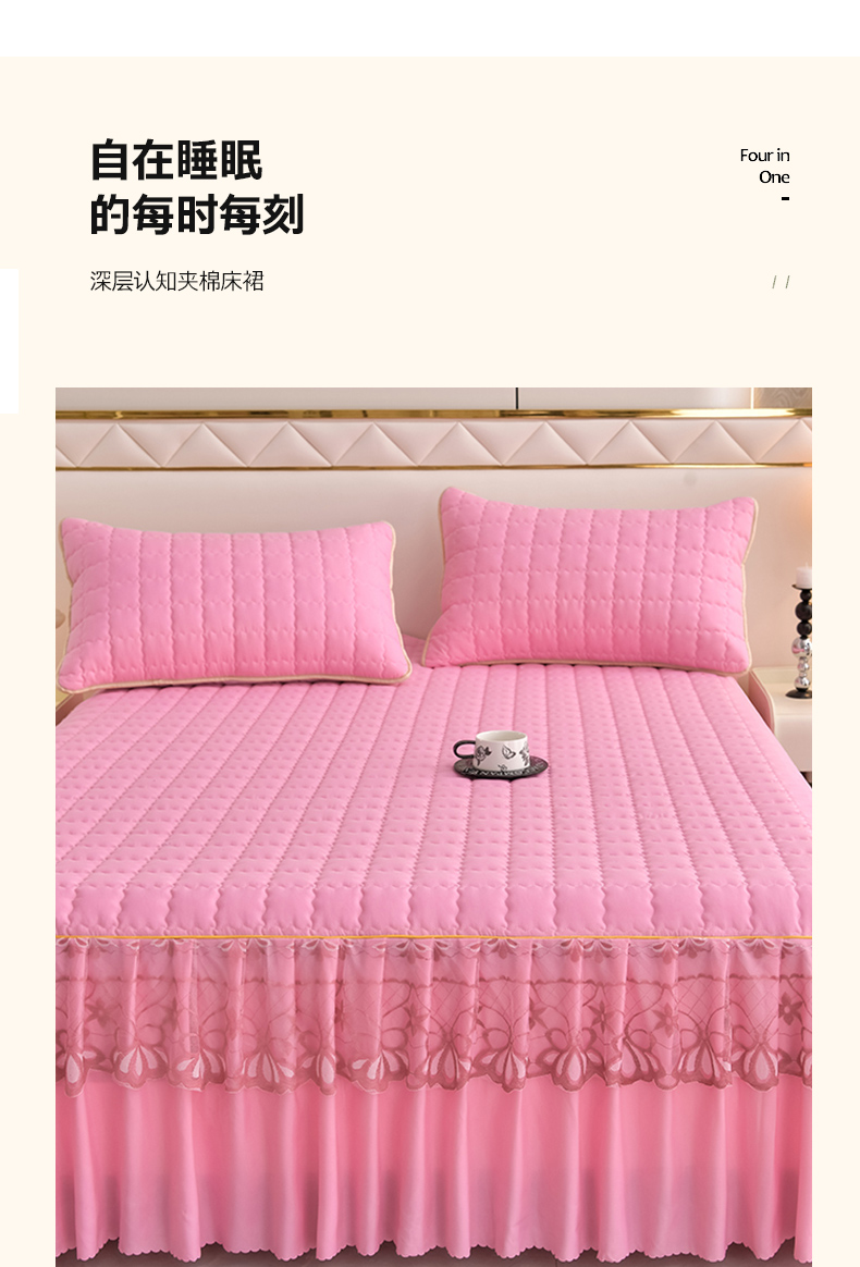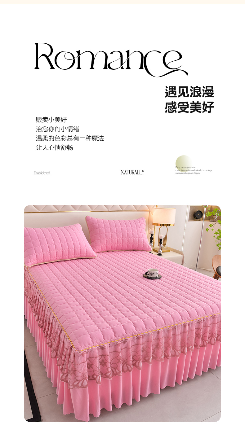 艾裙海 2025新款90克磨毛夹棉绗缝床裙 粉色