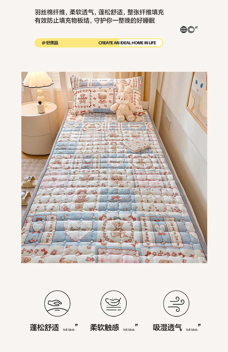 卡伦家纺 2025新款A类牛奶绒夹棉加厚床垫学生宿舍单人床垫 安妮宝贝