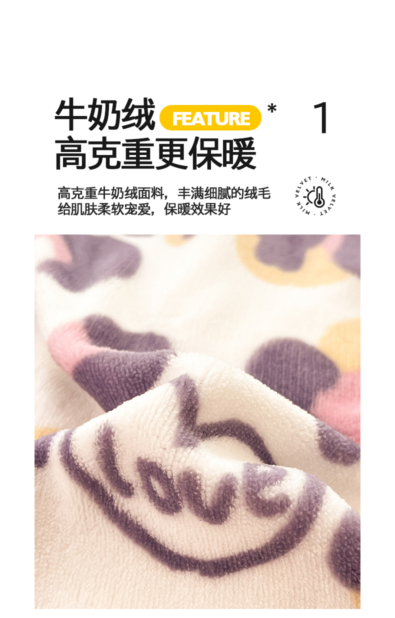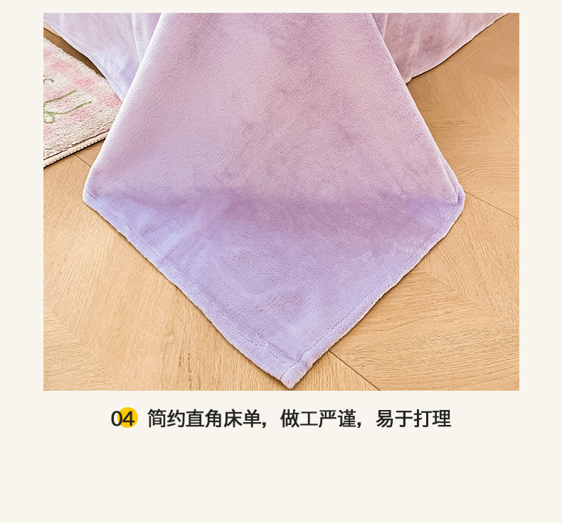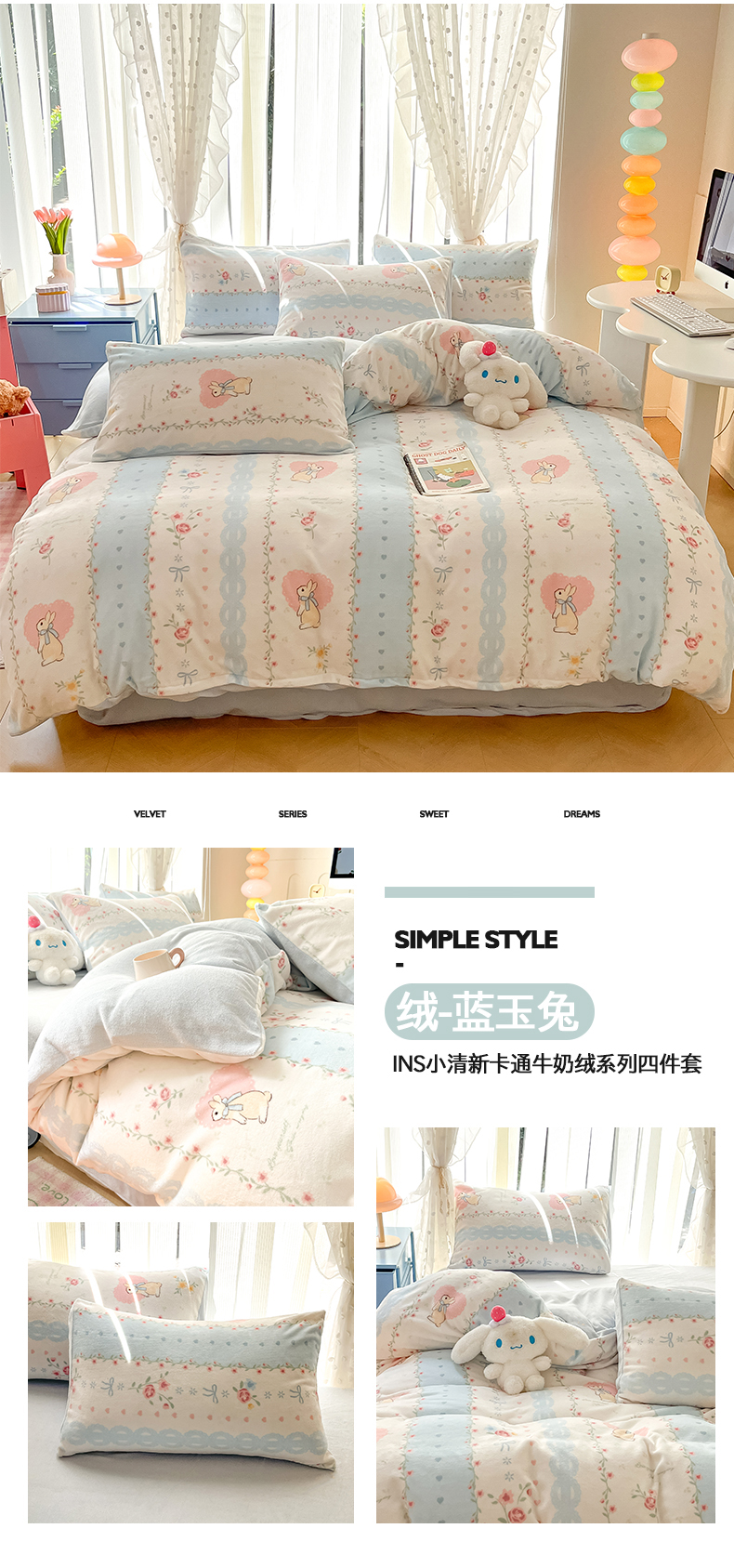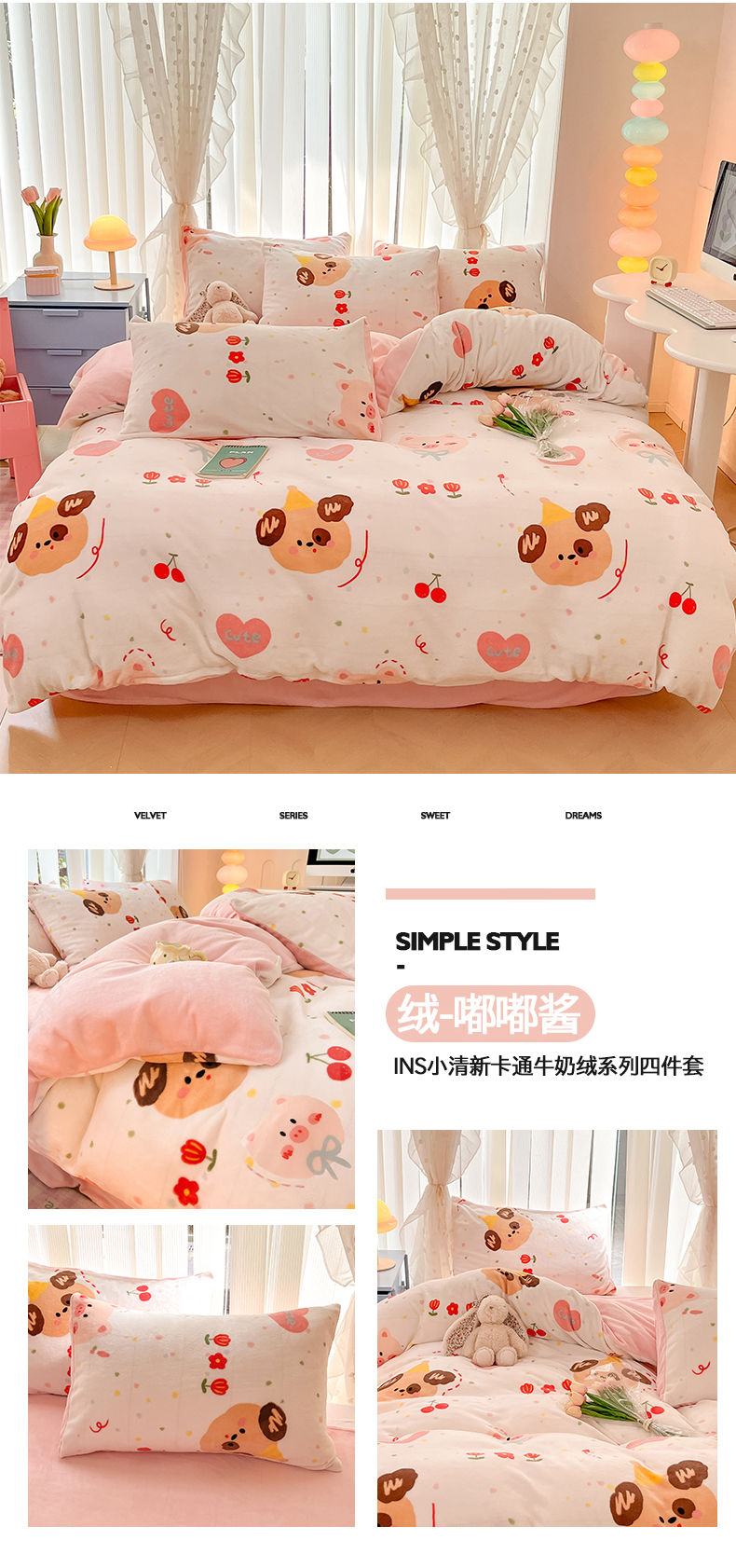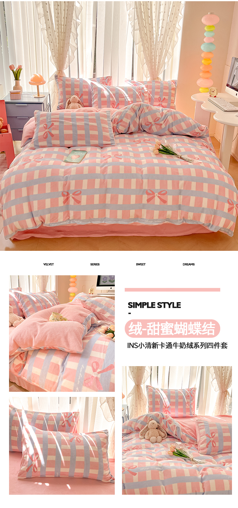 桃子家居 2024新款ins小清新花卉少女卡通跑量牛奶绒系列四件套 绒-紫豹纹