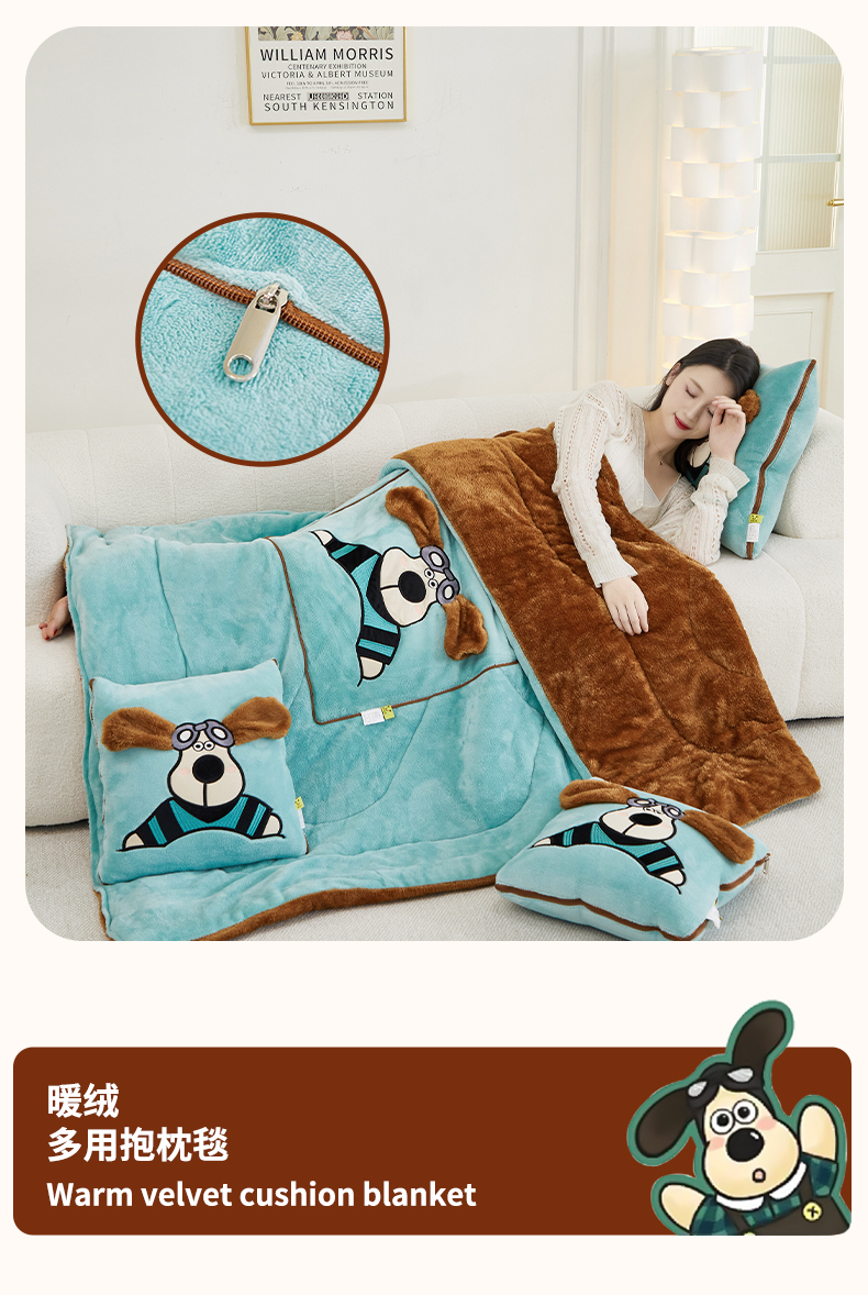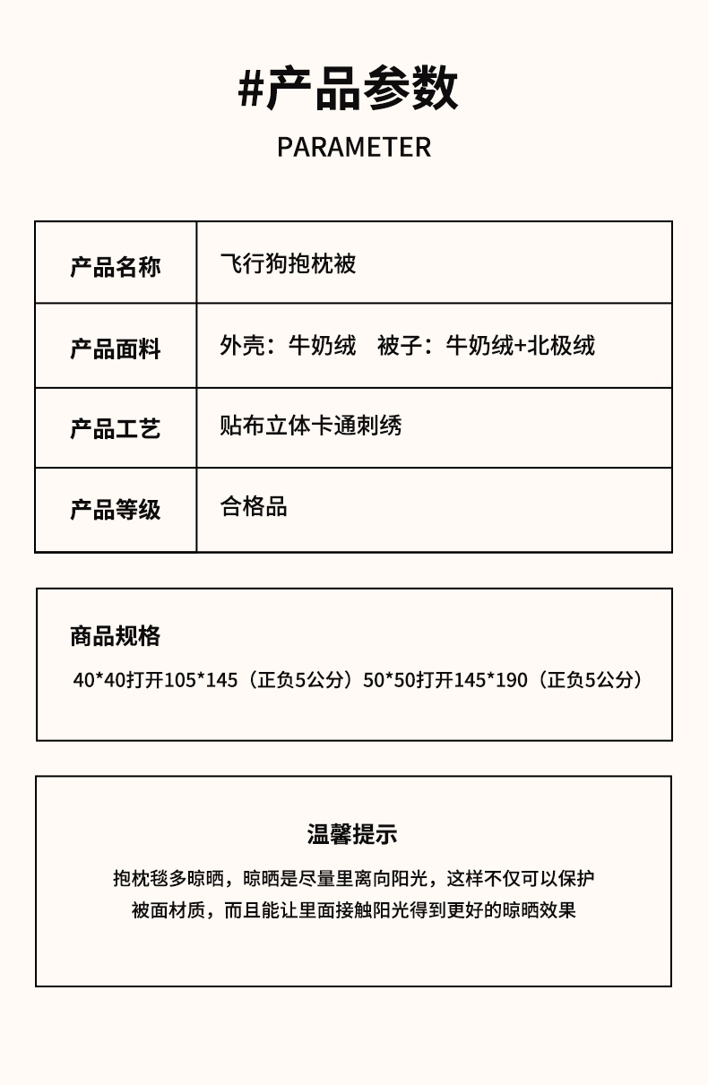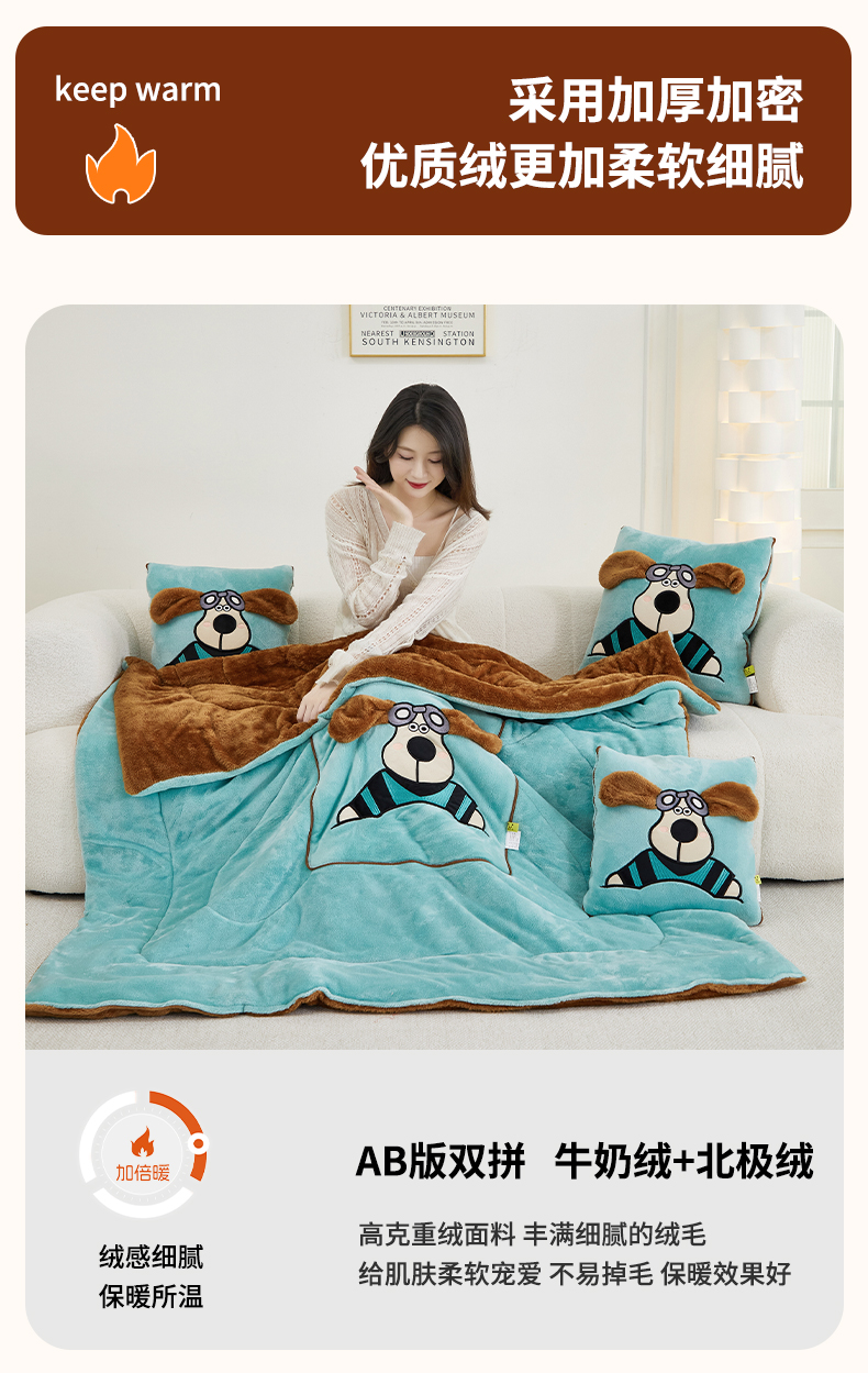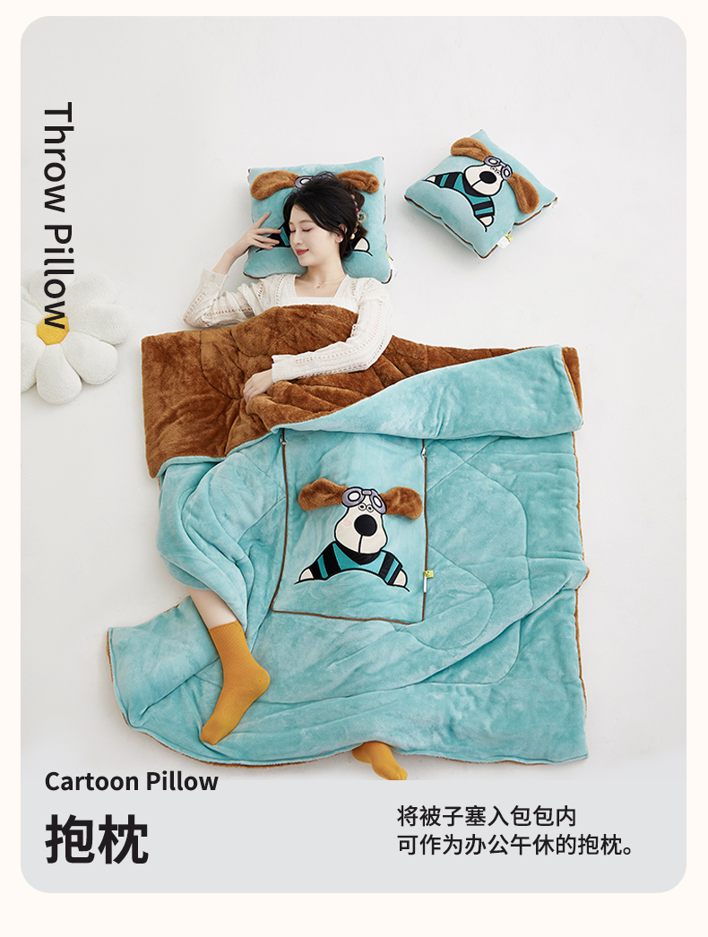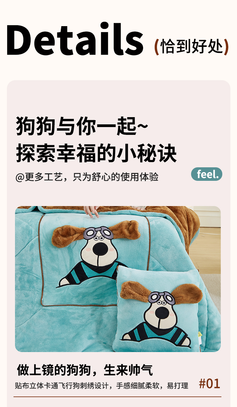 商品名称:古本家居 2024新款飞行狗贴布立体卡通刺绣抱枕被 飞行狗湖蓝色