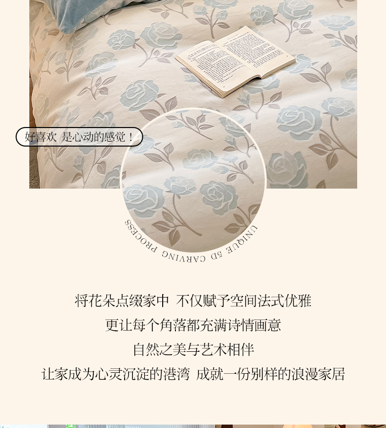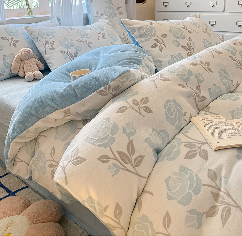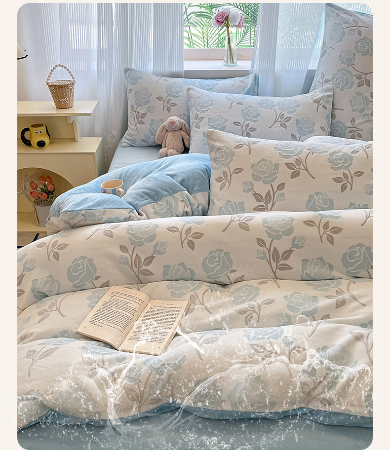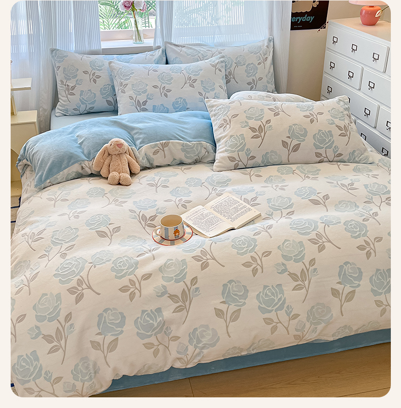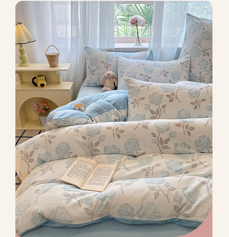 (总)羚羊语家纺 2025新款【正宗全消光】230克牛奶绒田园风四件套毛巾绣刺绣花秋冬加厚法莱绒法兰绒珊瑚绒三件套,如梦令-米白,如梦令-蔷薇,如梦令-柔粉,如梦令-天蓝