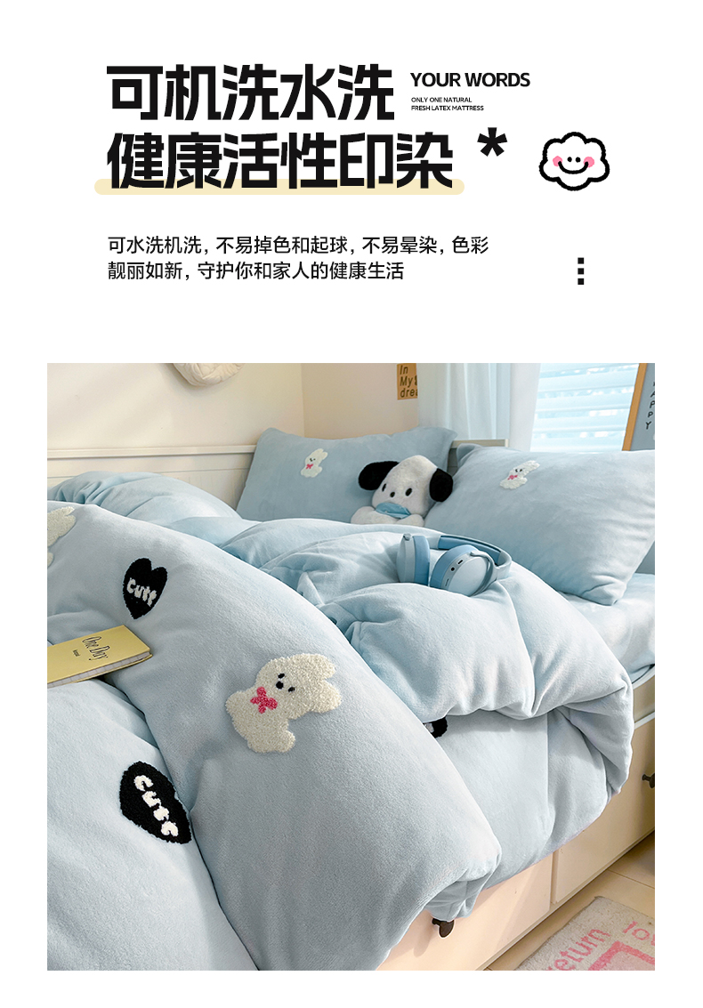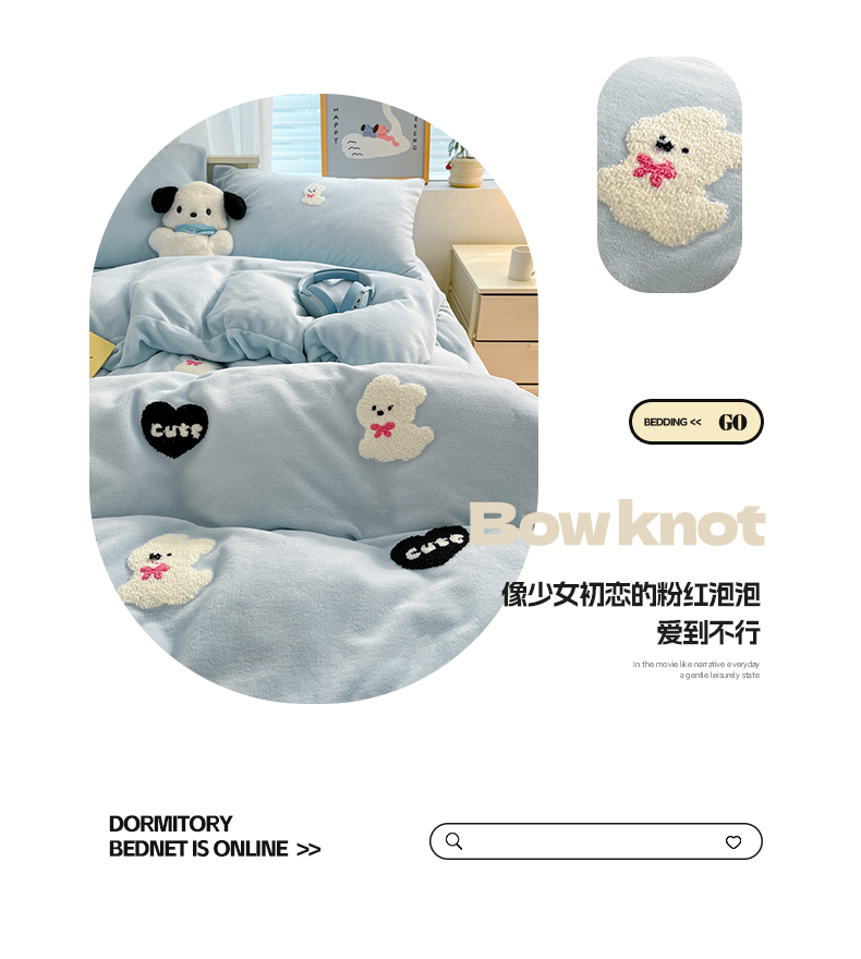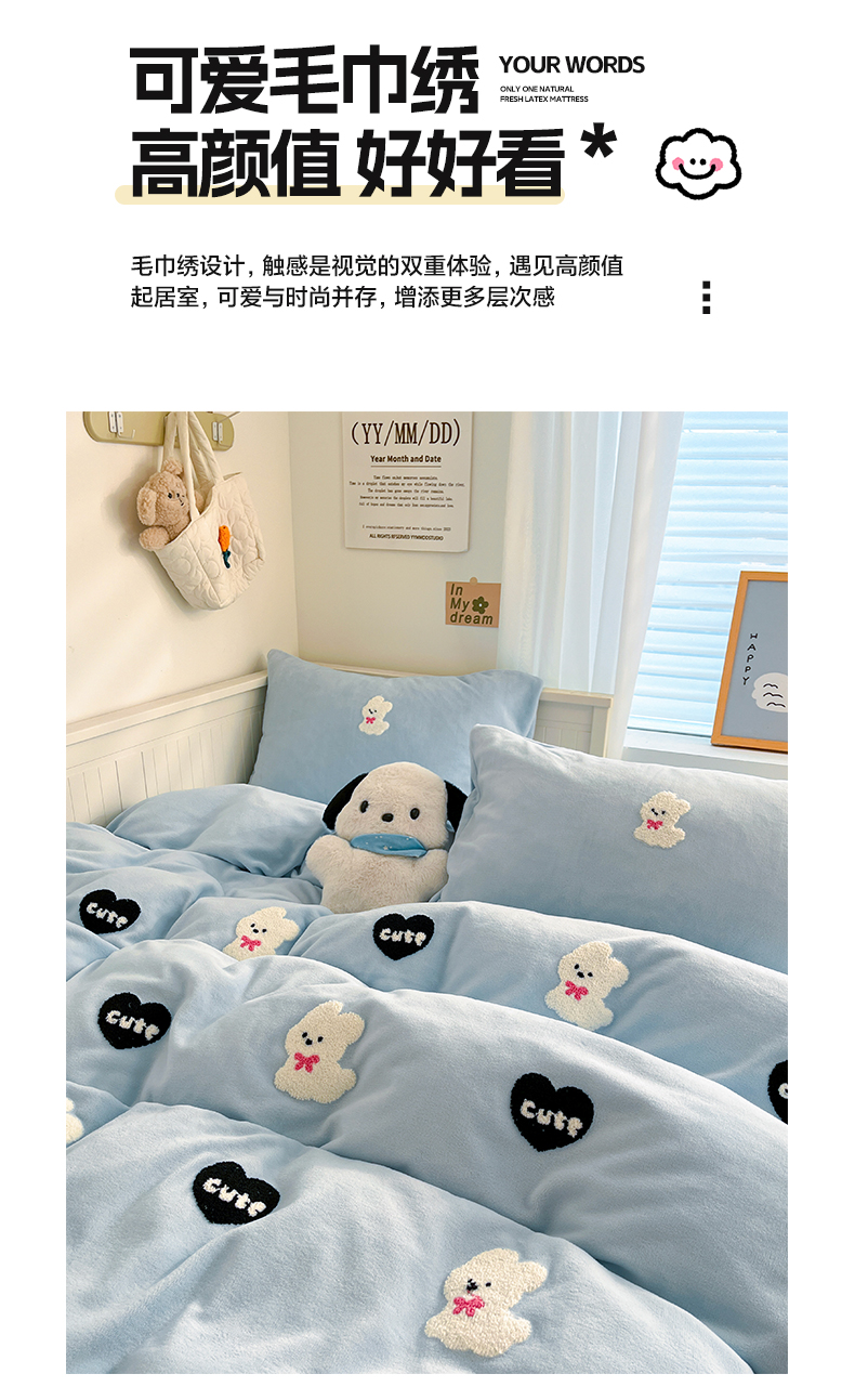 商品名称:亨通家纺 2024新款牛奶绒毛巾绣四件套系列-萌萌狗 萌萌狗-紫