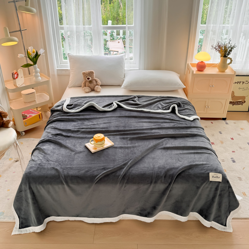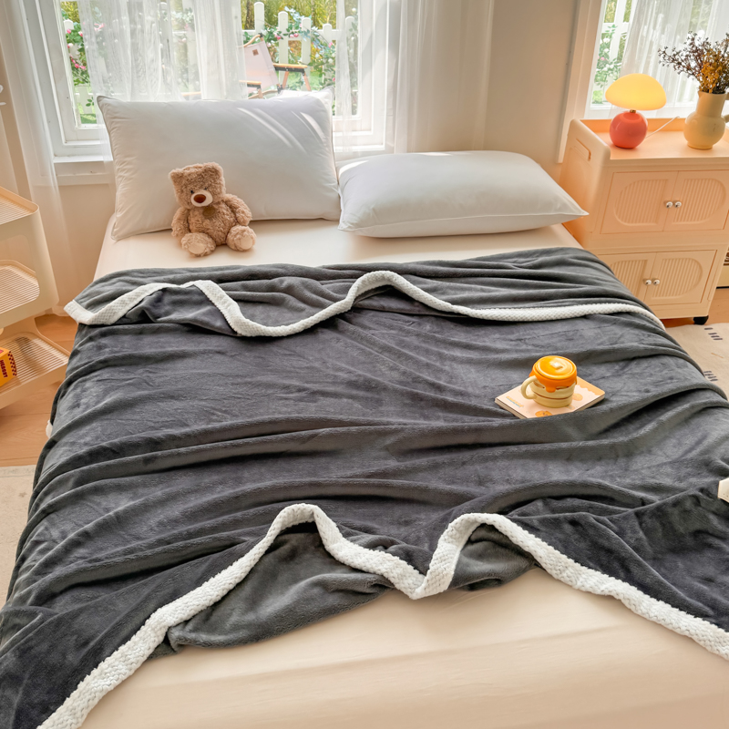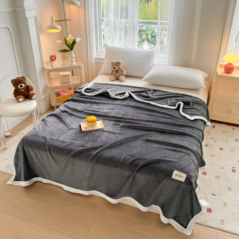 侨鑫 2024新款高克重牛奶绒纯色毛毯 深灰
