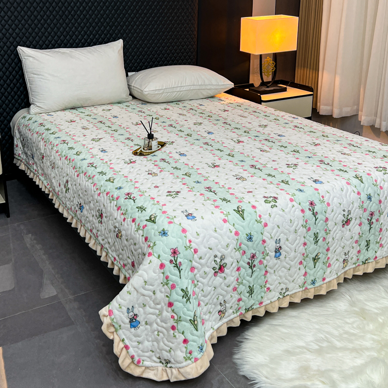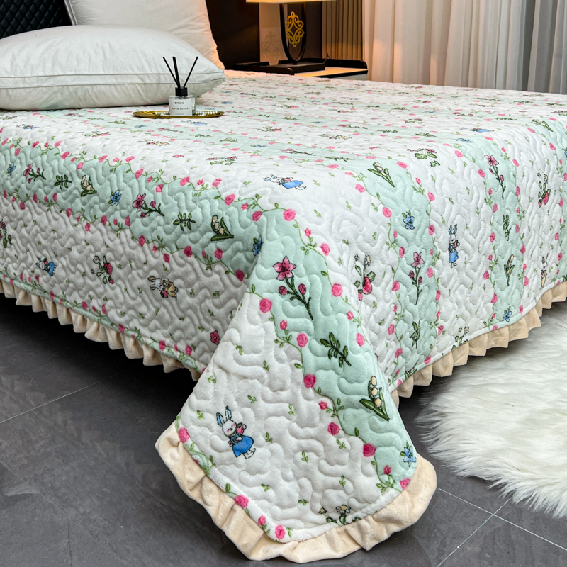 有品 2025年牛奶绒花边5D跑量款夹棉床盖 花西子