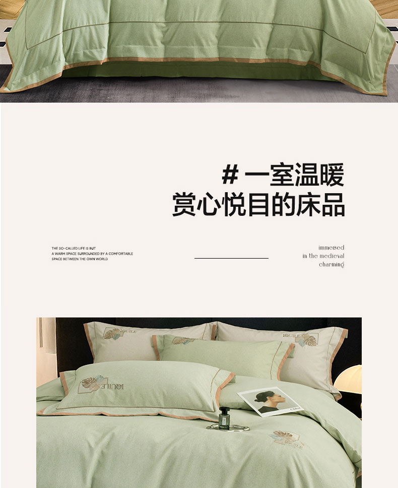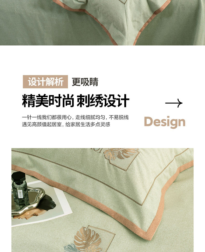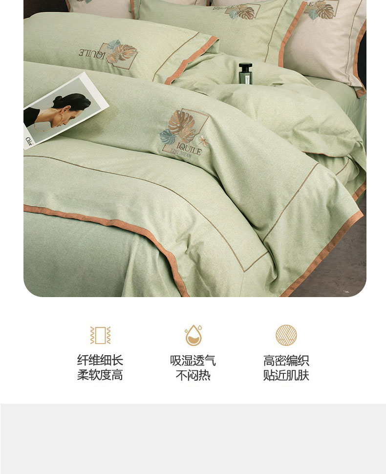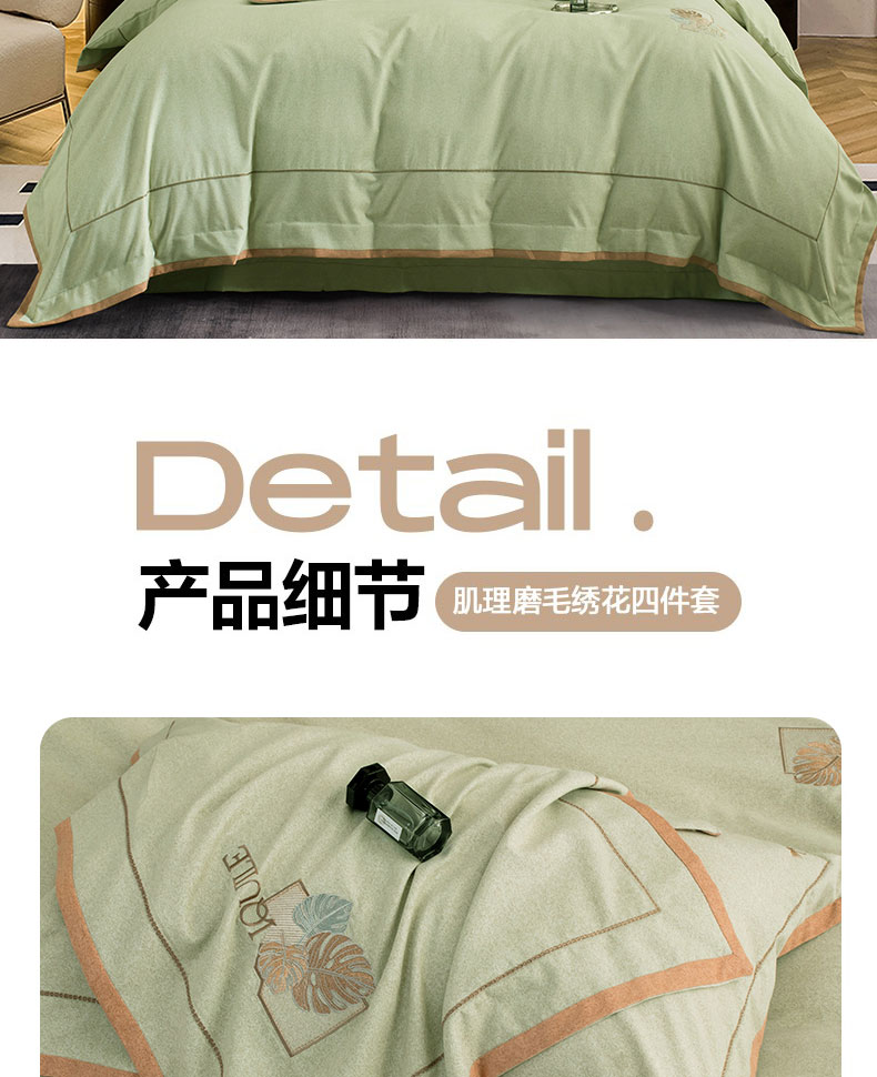 商品名称:蒂爵 全棉纯棉全棉长绒棉肌理纹磨毛绣花四件套洛卡 洛卡-绿