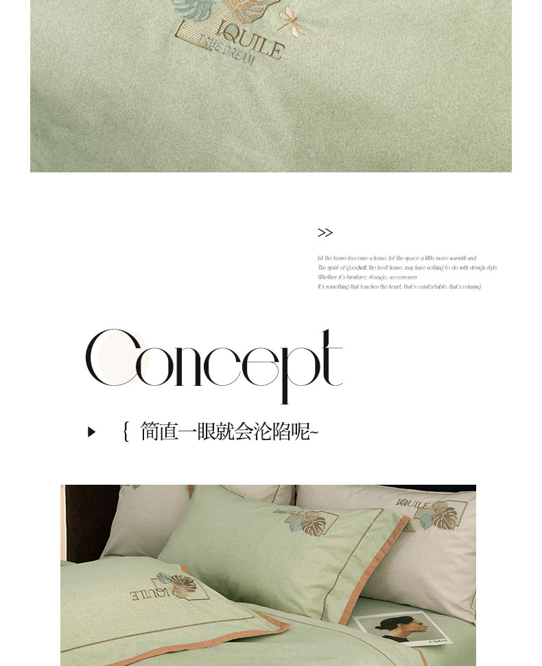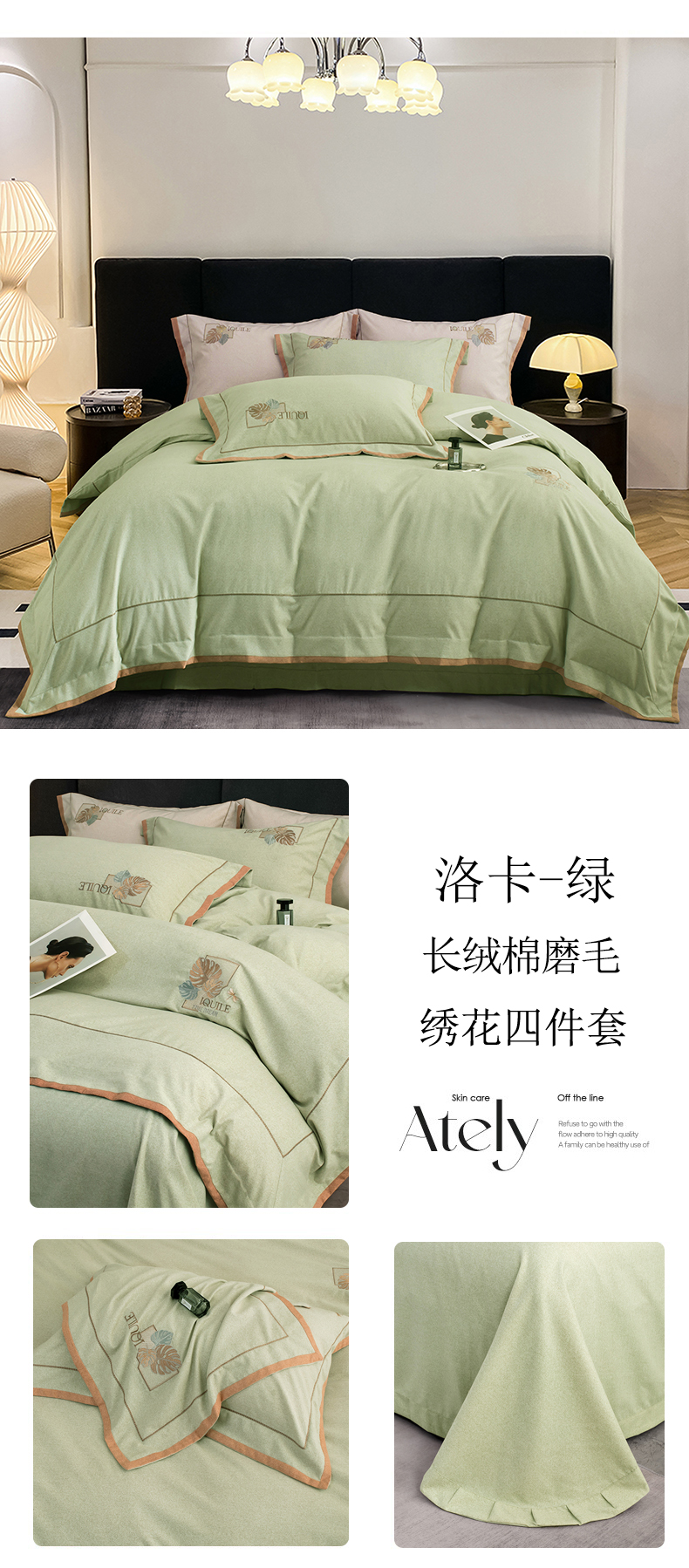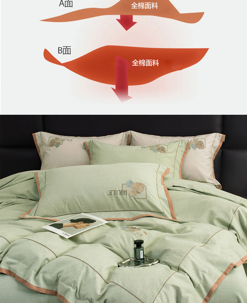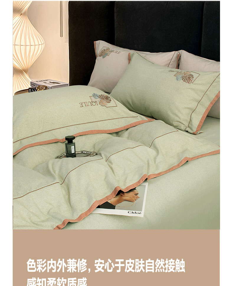 商品名称:蒂爵 全棉纯棉全棉长绒棉肌理纹磨毛绣花四件套洛卡 洛卡-绿