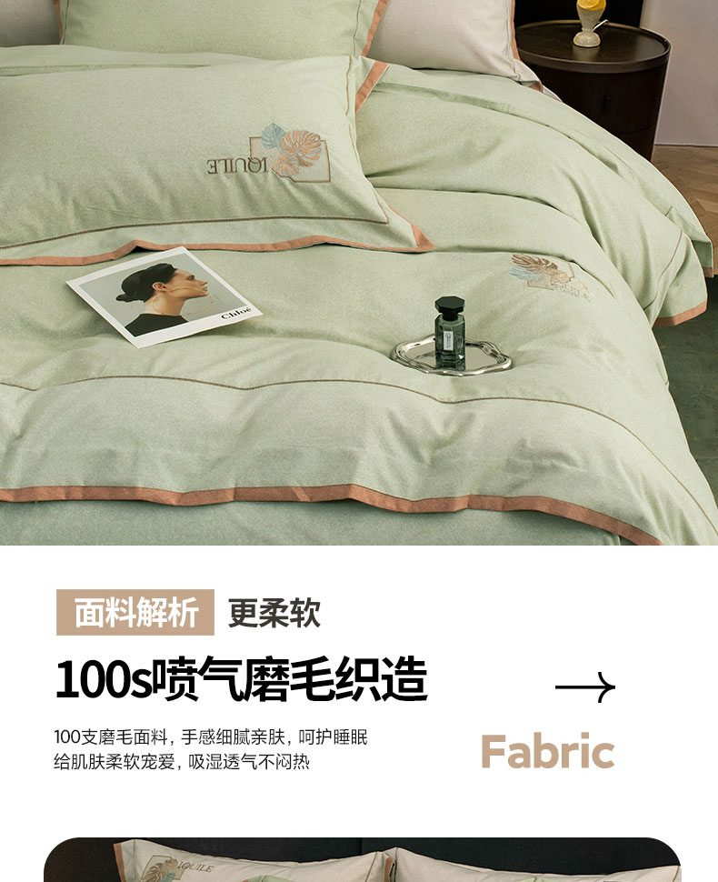 蒂爵 全棉纯棉全棉长绒棉肌理纹磨毛绣花四件套洛卡 洛卡-绿