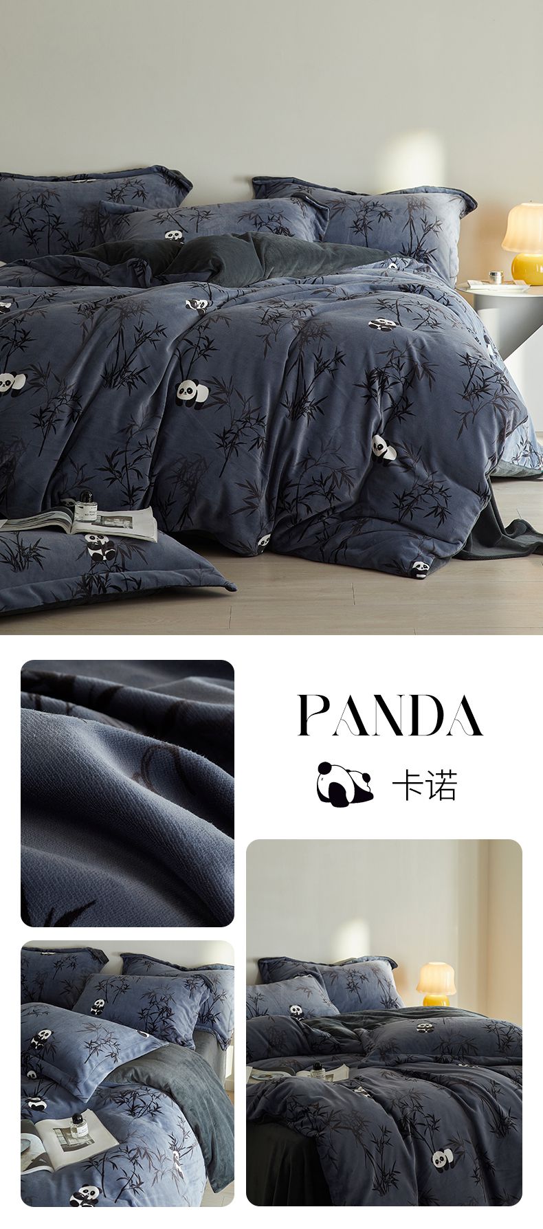 (总)千朵森 2024新款网红印花熊猫牛奶绒四件套 风格一