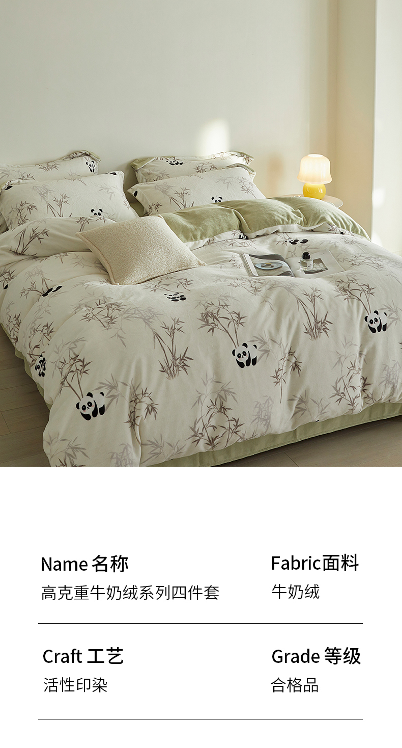 商品名称:(总)千朵森 2024新款网红印花熊猫牛奶绒四件套 风格一