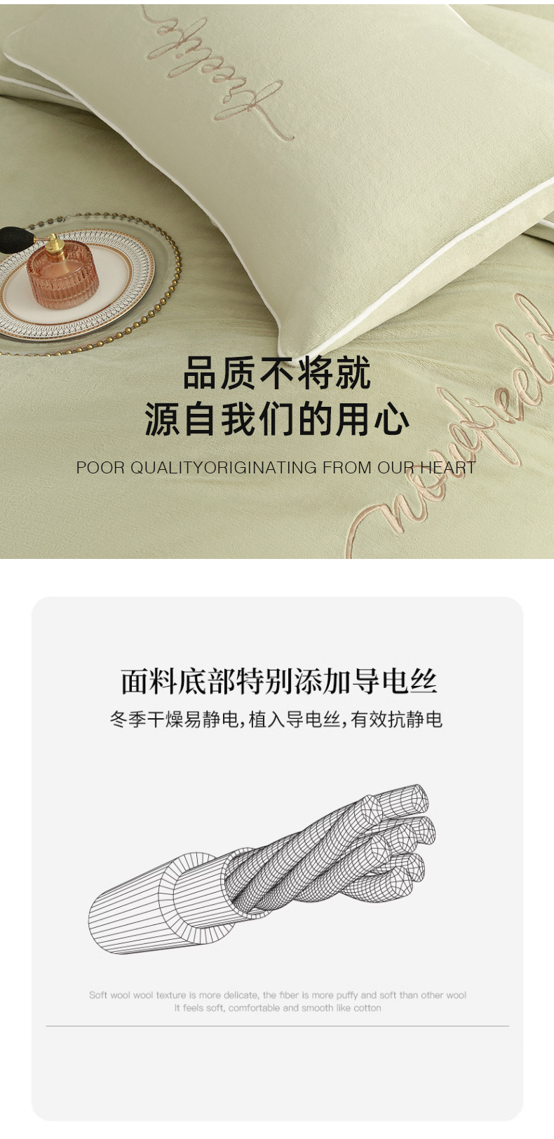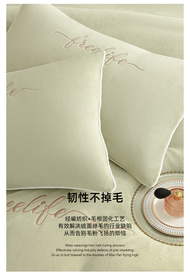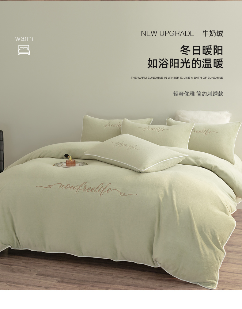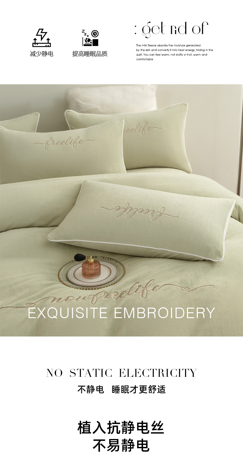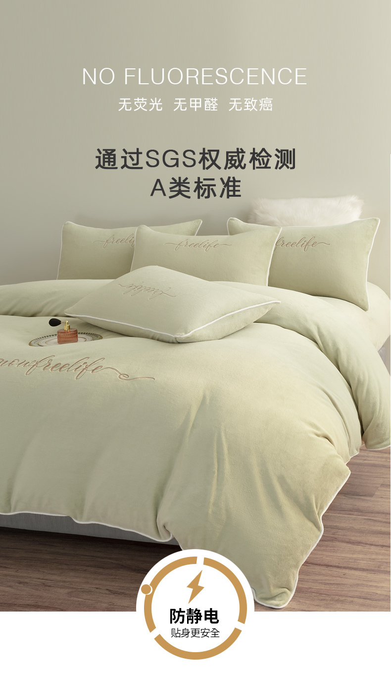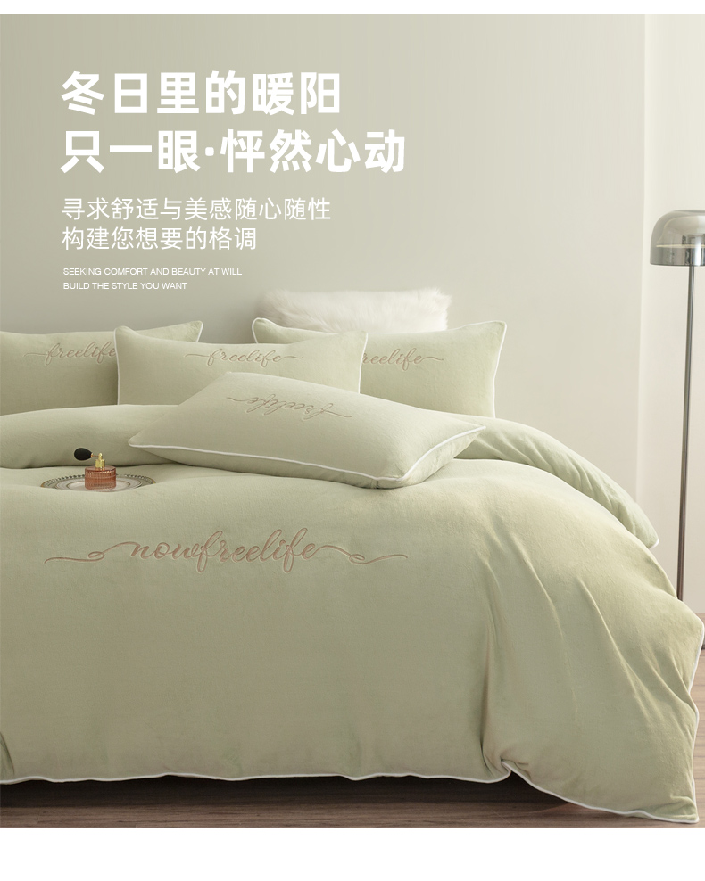 商品名称:千朵森 2024新款奢美牛奶绒刺绣四件套 秧绿