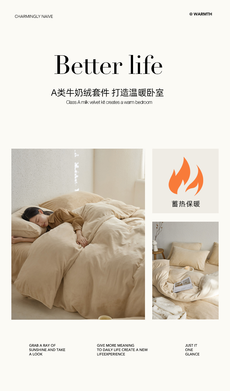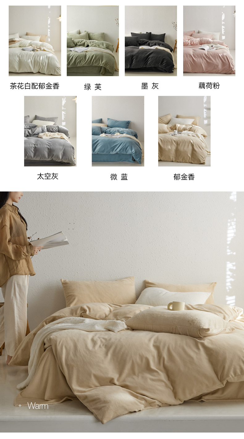 商品名称:千朵森 2024新款高克重纯色牛奶绒四件套 郁金香