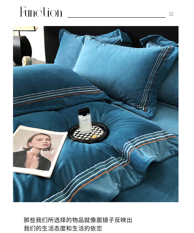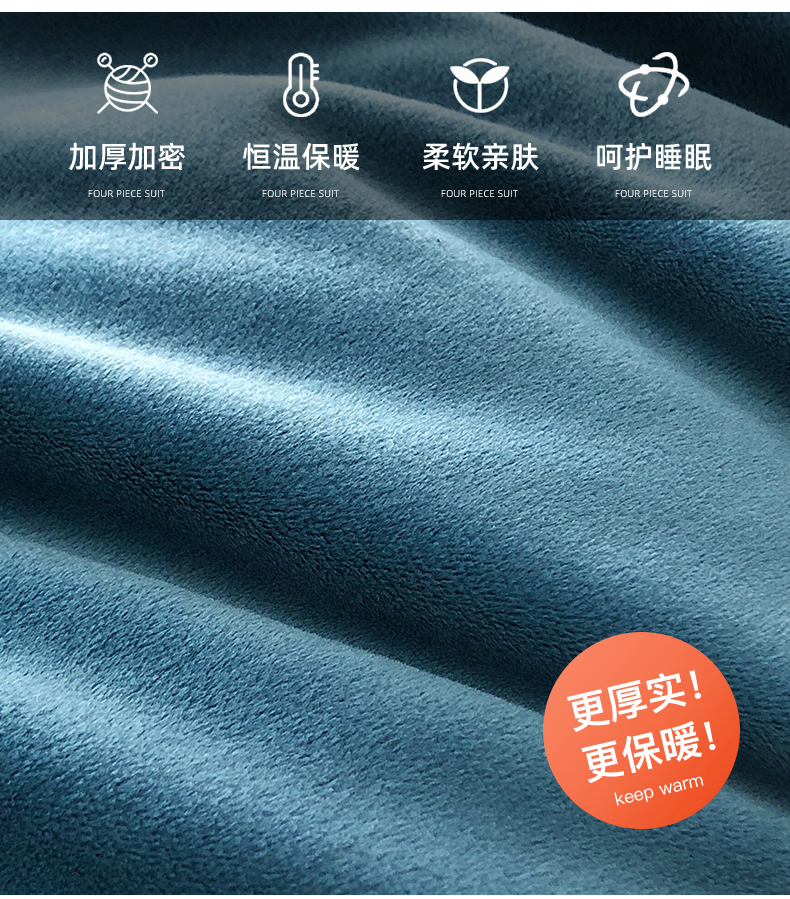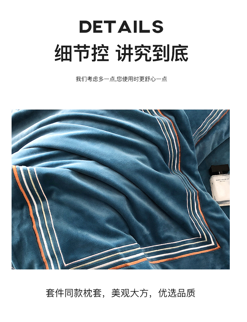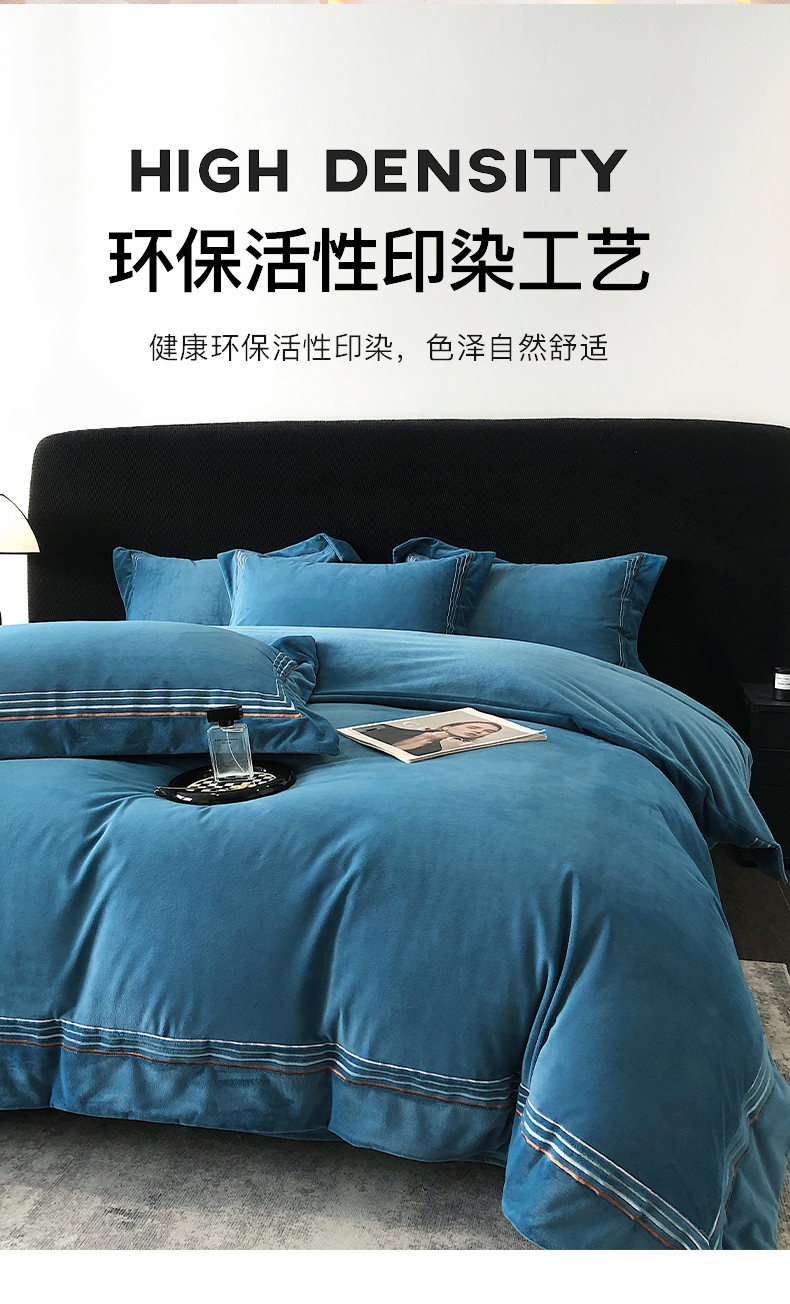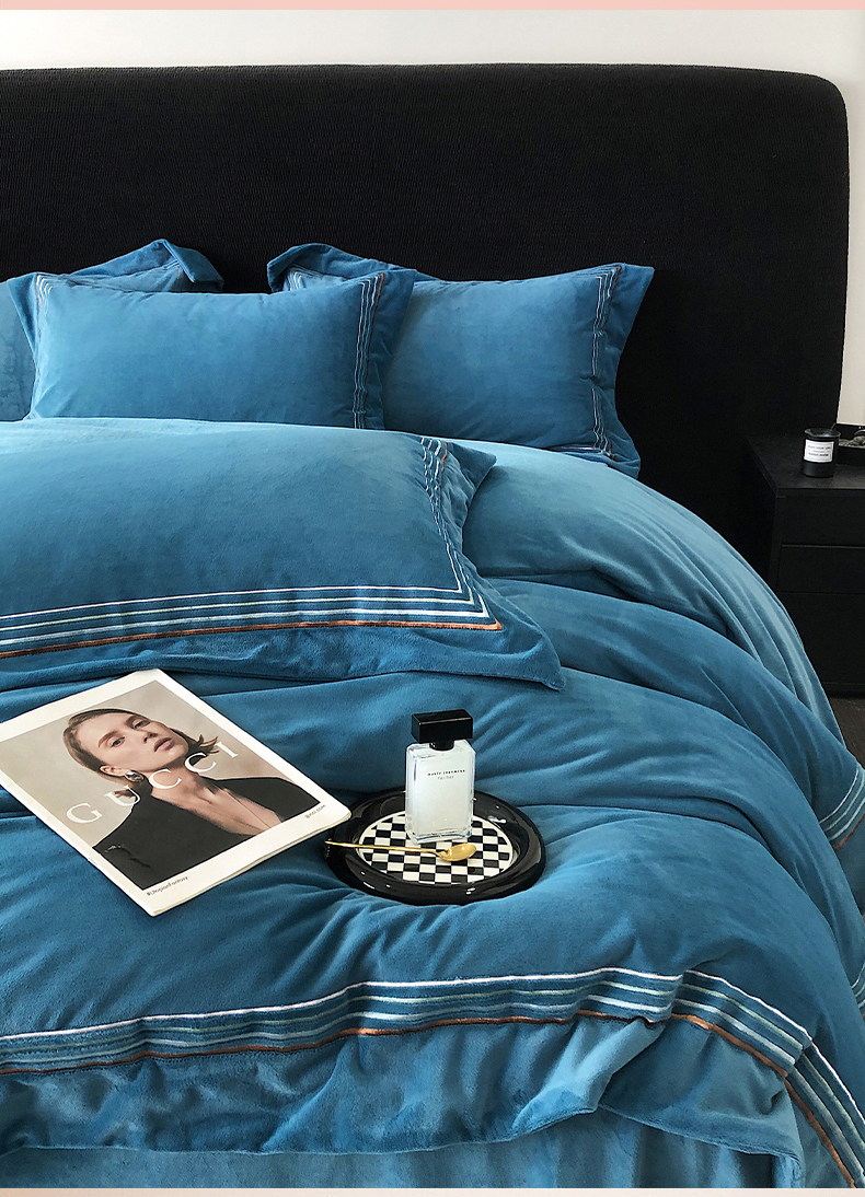 商品名称:禧澜庭2024新款A类婴儿绒宝宝绒纯色刺绣牛奶绒法莱绒法兰绒四件套 星河—自由蓝