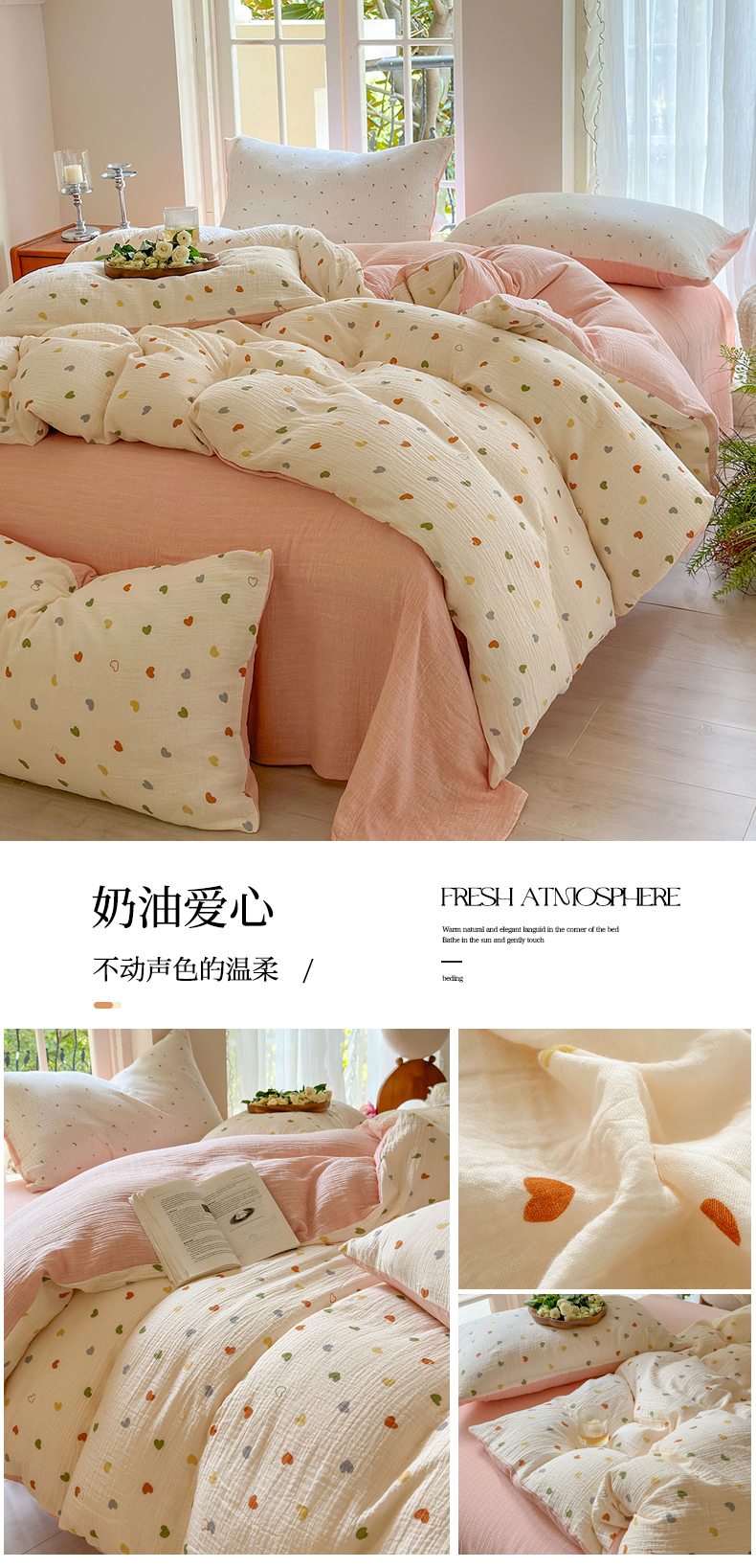 商品名称:木楌 2025新款全棉A类皱皱纱印花四件套 奶油爱心