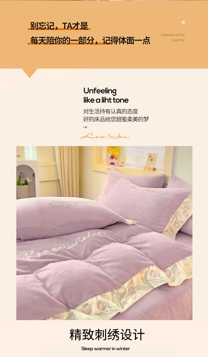 (总)星尚家纺 2024新款全消光A类230g牛奶绒刺绣保暖绒四件套-郁金香,淡雅粉,梵星绿,高级灰,蔷薇紫,婴儿蓝,樱花粉