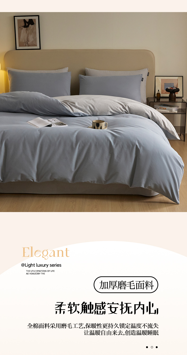 当前位置: 91家纺网 > 商品网购 > 床品套件 > 四件套 > 全棉普通四件套 > 涵宸家纺 2024新款全棉磨毛四件套纯厚系列(轻)-四件套 纯厚(星耀兰+兰灰)