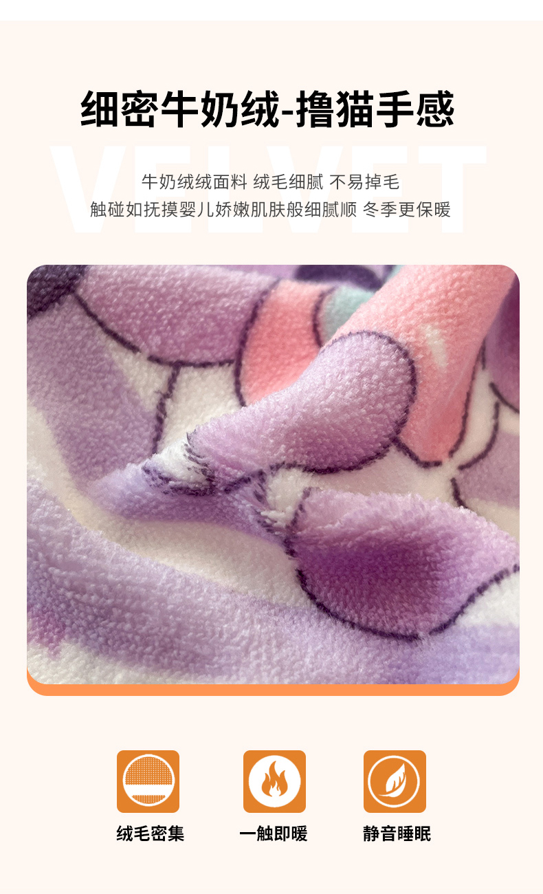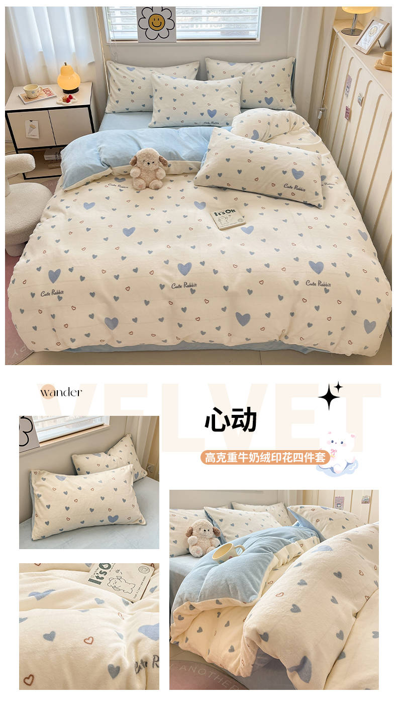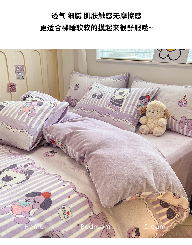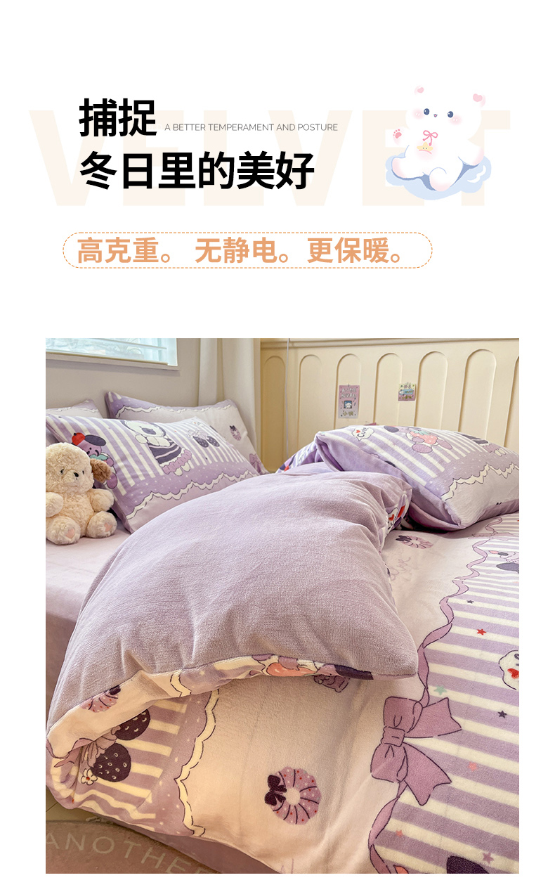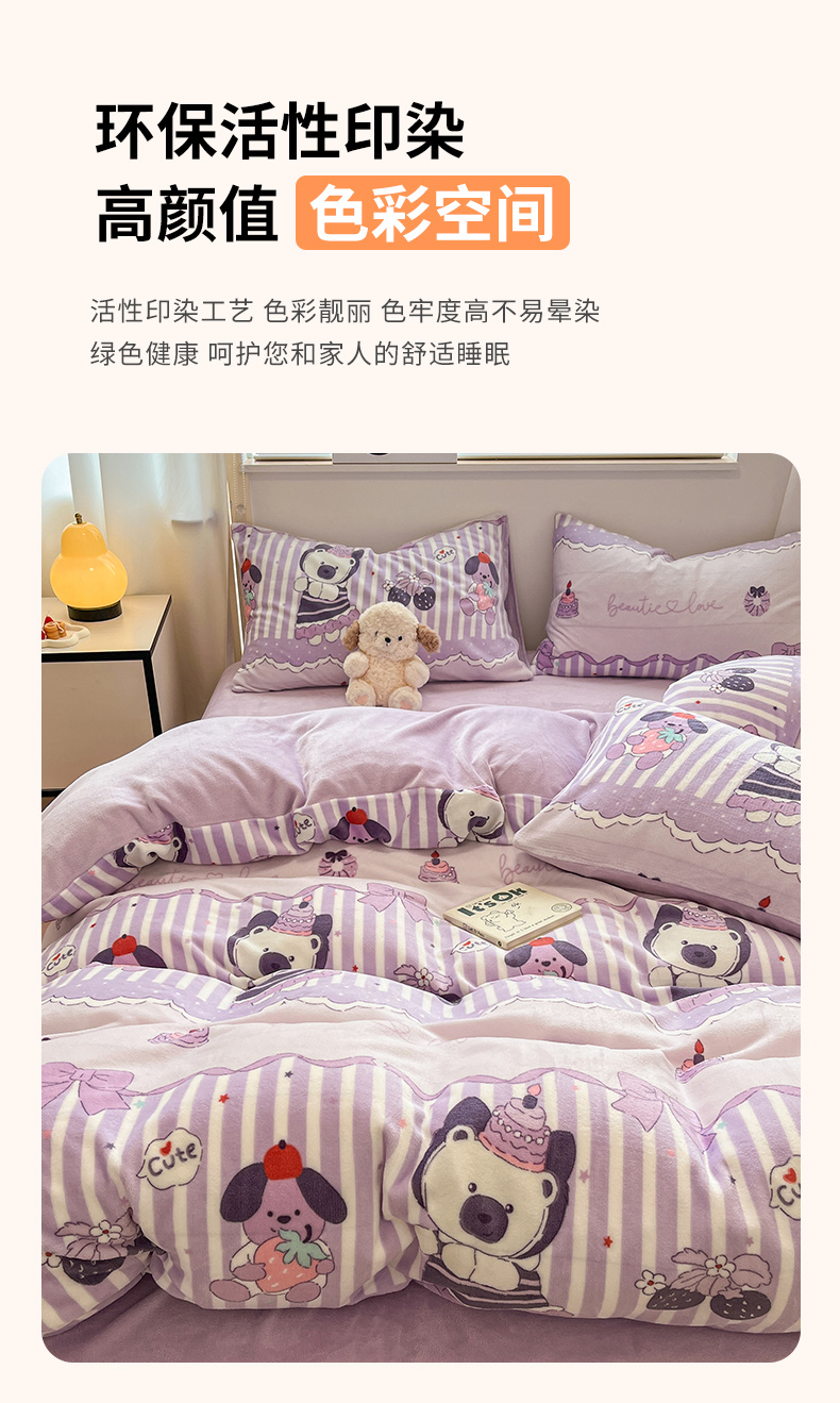 商品名称:捌月 2024新款童话镇系列高克重印花牛奶绒四件套卡通小清新加厚保暖绒套件 美乐妮