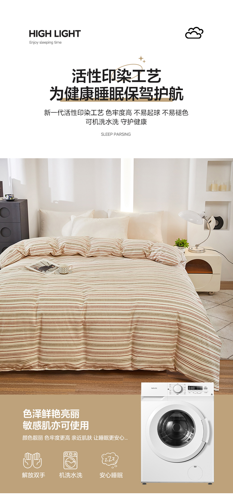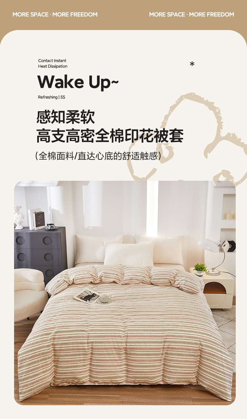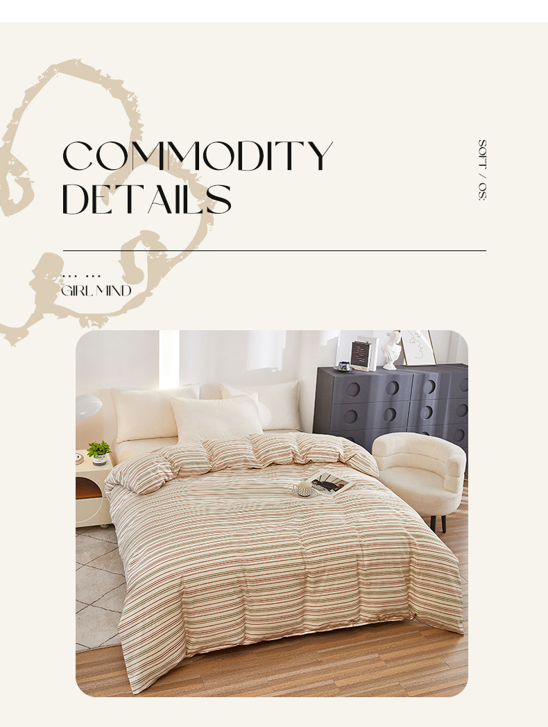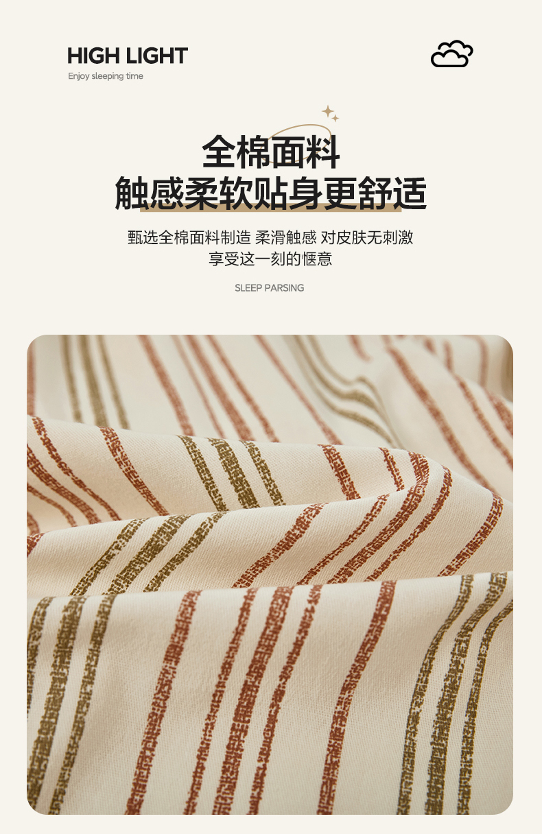 商品名称:雲归梦 2024新款全棉多规格加厚磨毛多规格单品--单被套 单被套-时尚条-棕