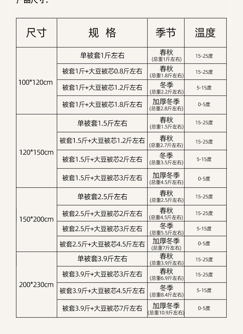 春秋套:单被套120*150+120*150(1.2斤) | ¥55.00 |