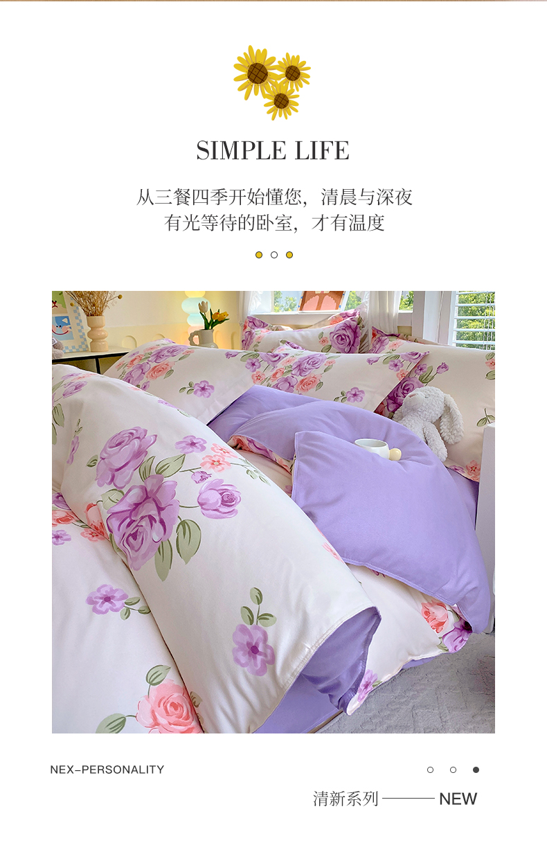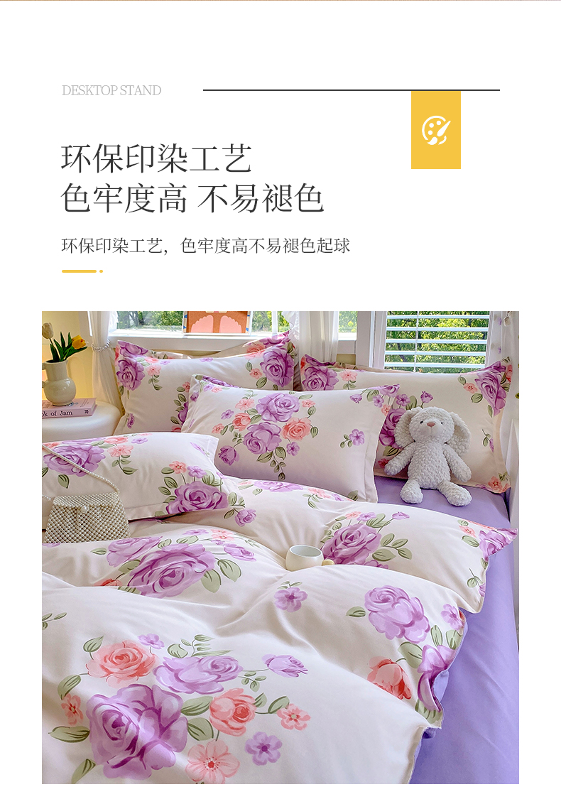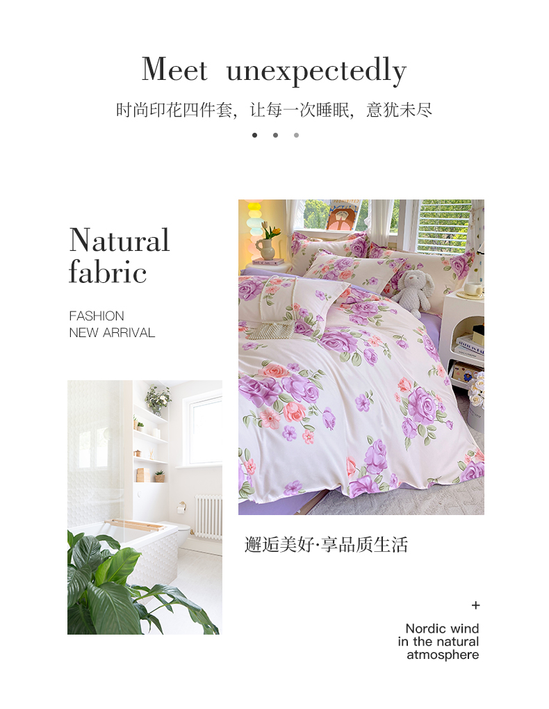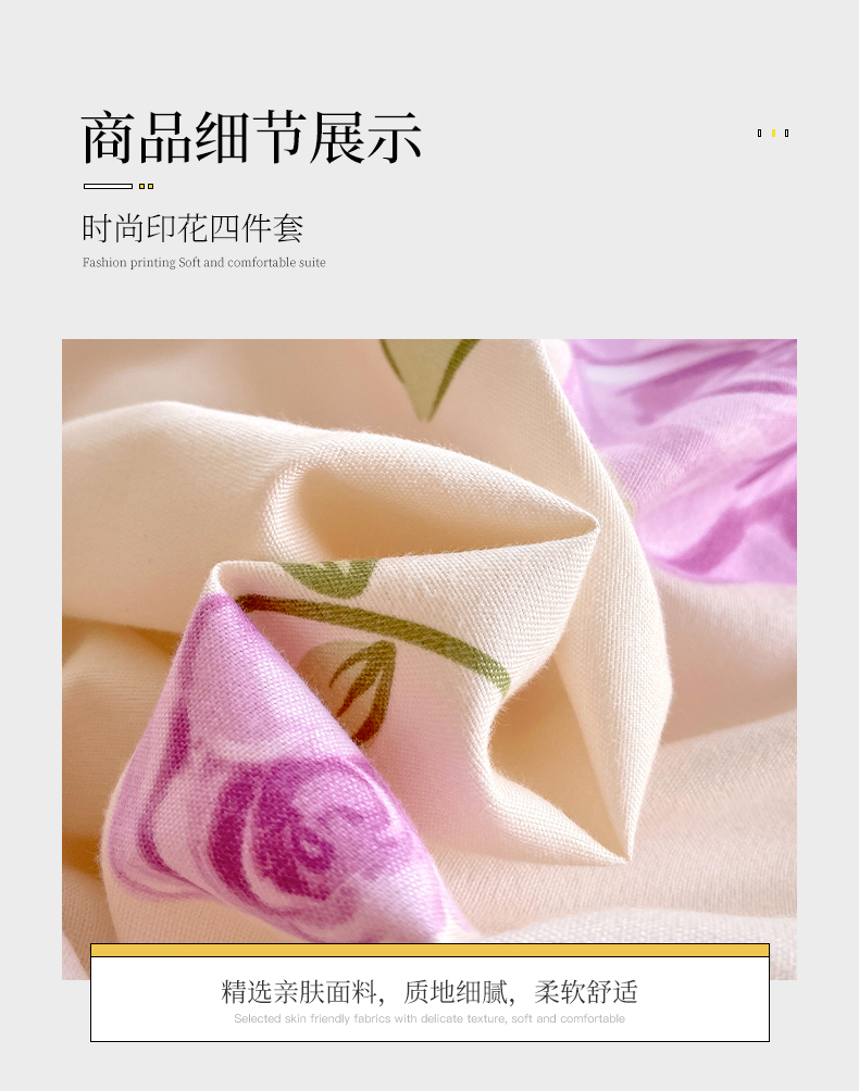 商品名称:好亿来 2025新款植物羊绒加厚斜纹磨毛四件套 芳菲