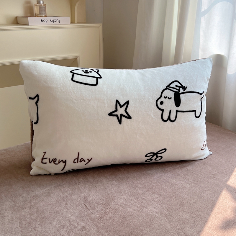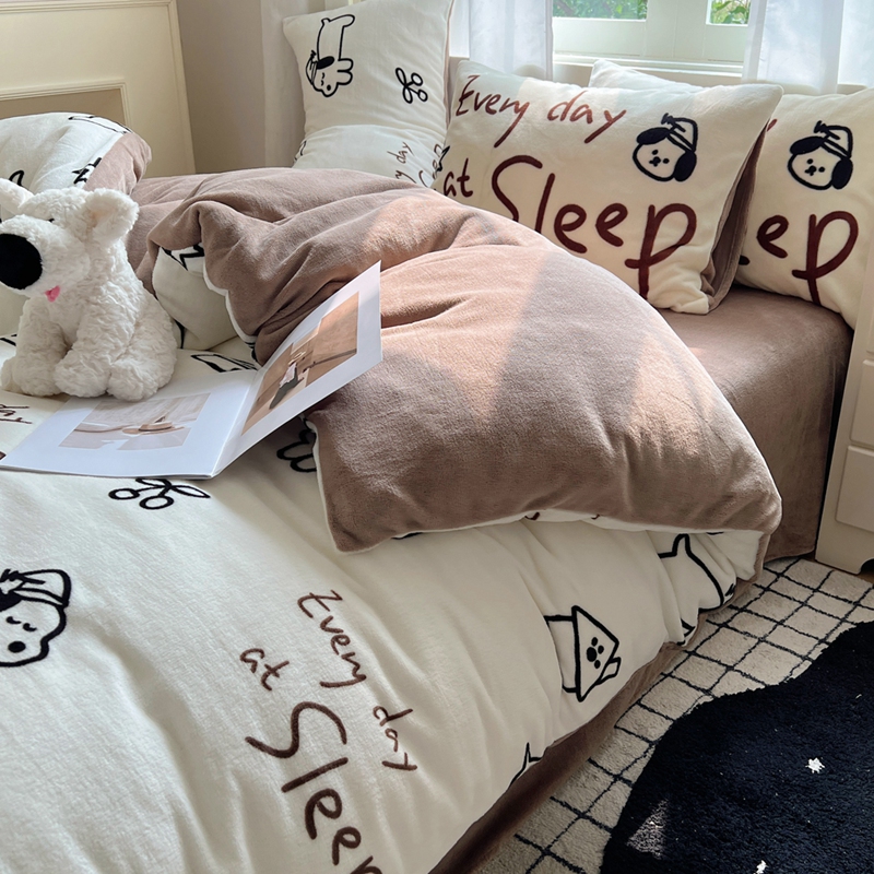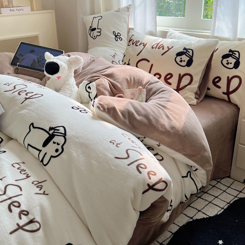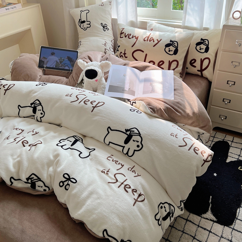 (总)桃喜 2025新款牛奶绒线条系列四件套 【会员-5】,黑白小狗,咖色线条狗勾