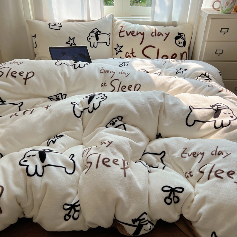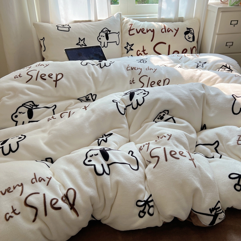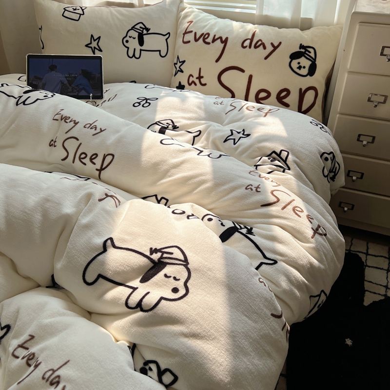 商品名称:桃喜 2024秋冬新品卡通混搭牛奶绒系列四件套 黑白涂鸦