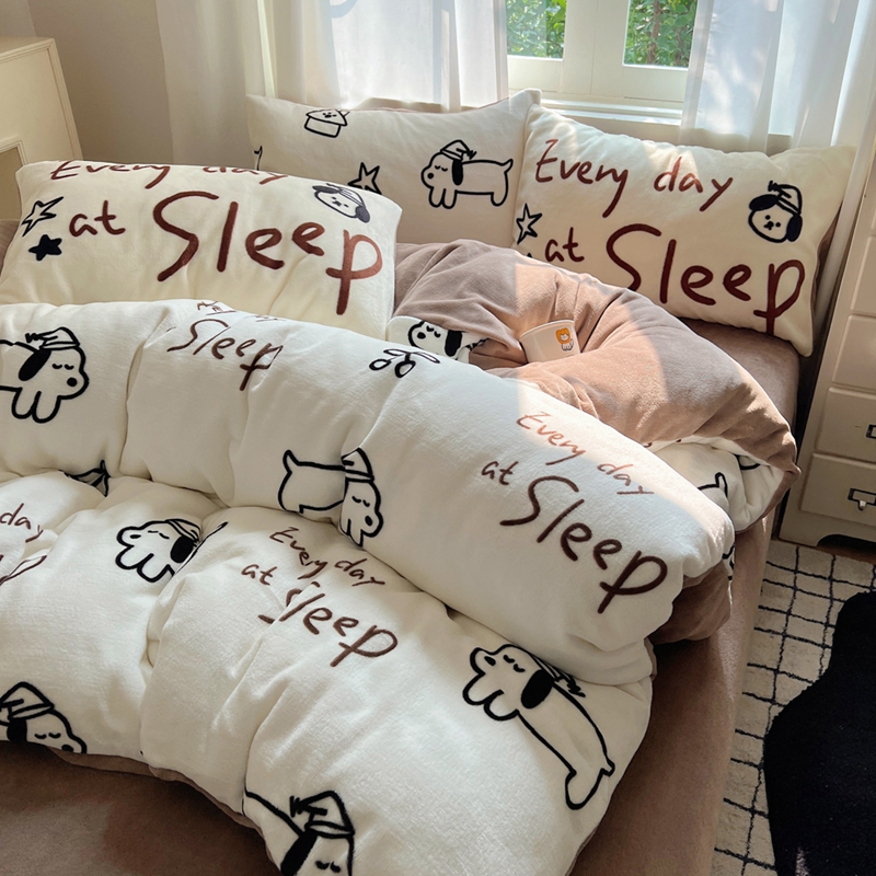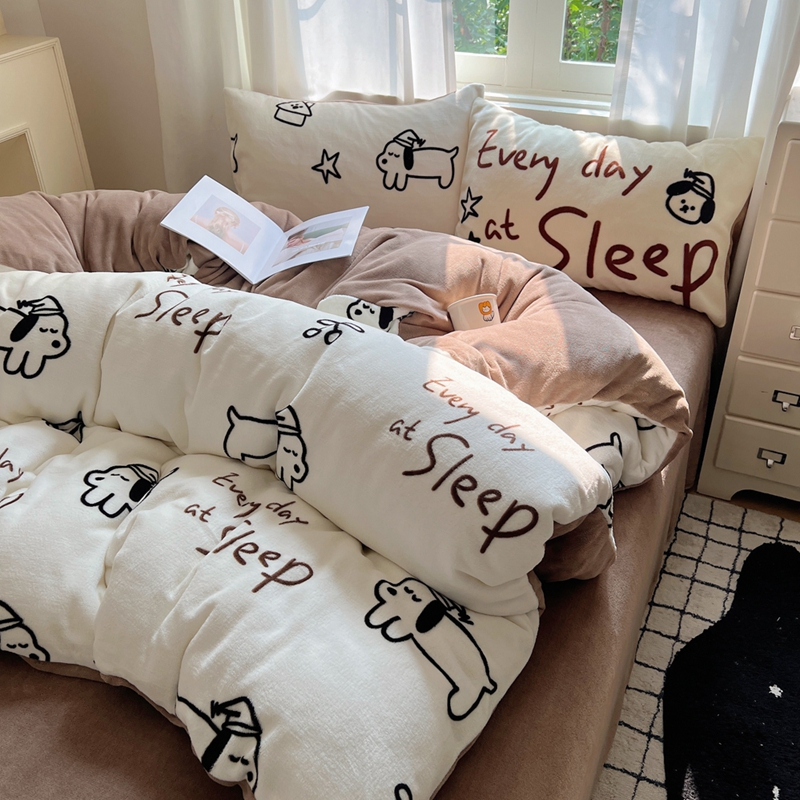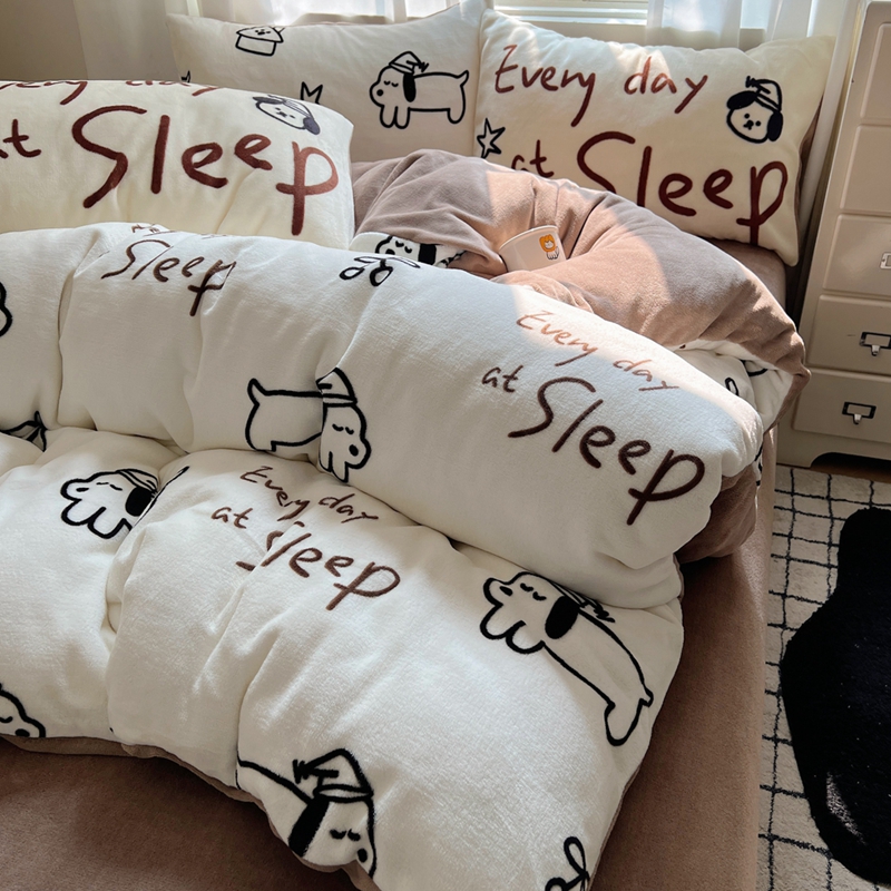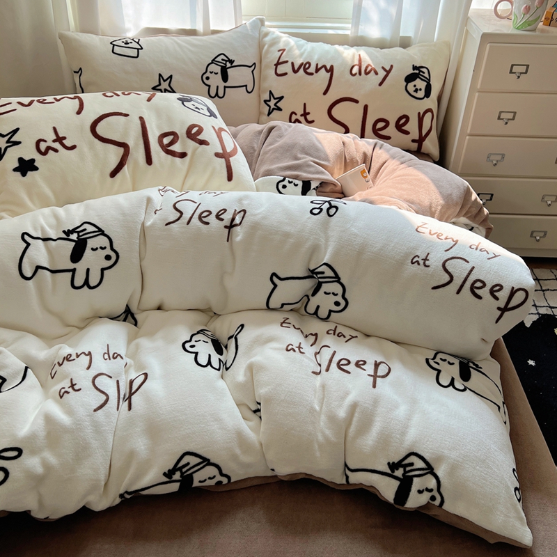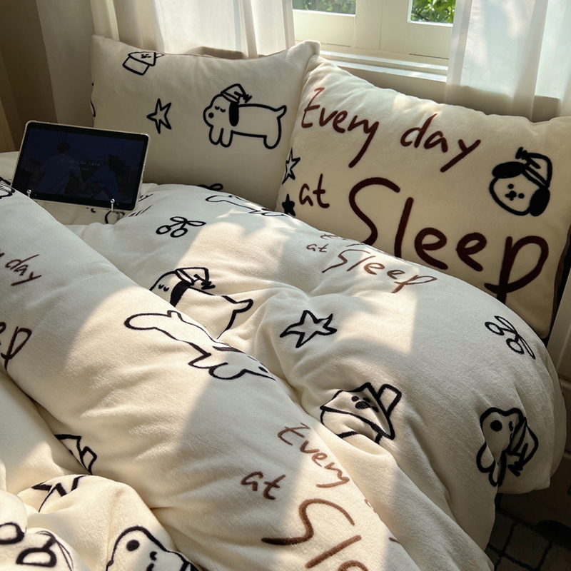 桃喜 2024秋冬新品卡通混搭牛奶绒系列四件套 黑白涂鸦