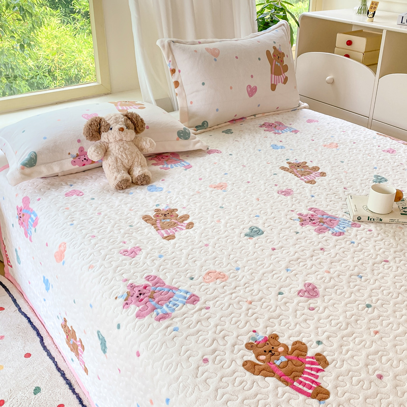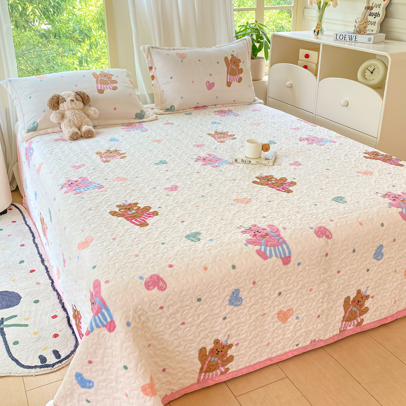 赫梵茜 2024新款高克重牛奶绒夹棉单床盖 熊宝宝
