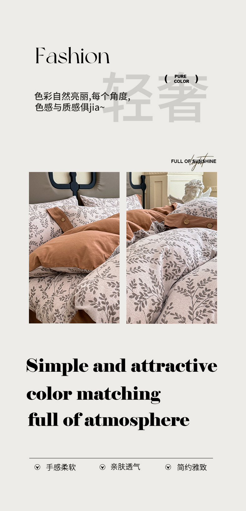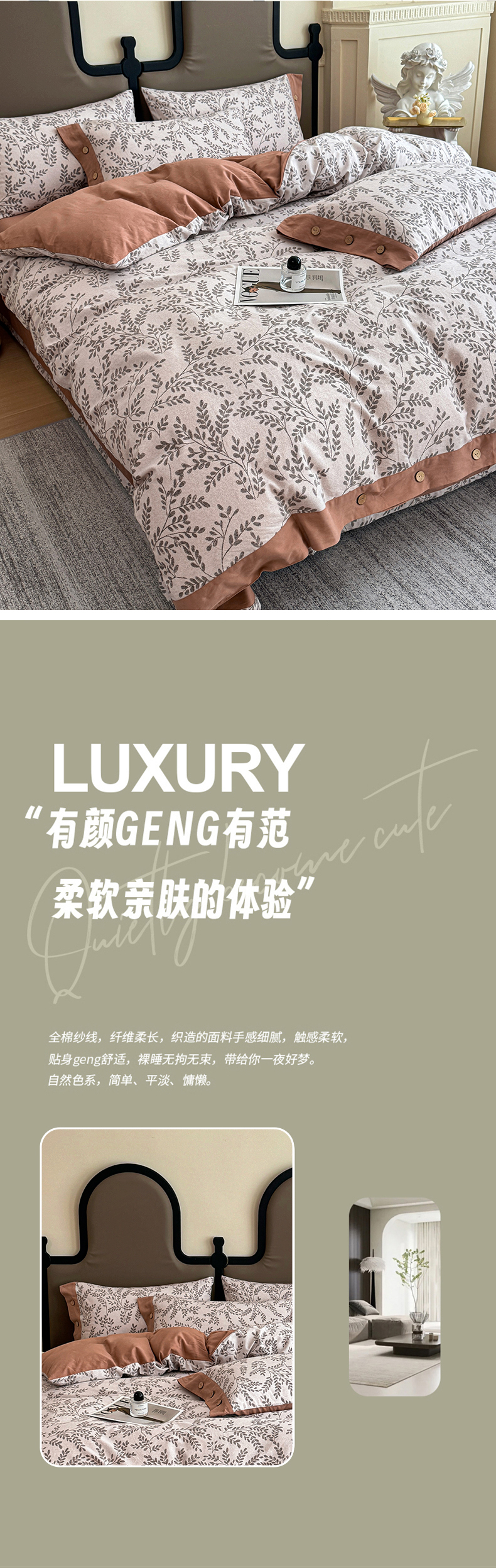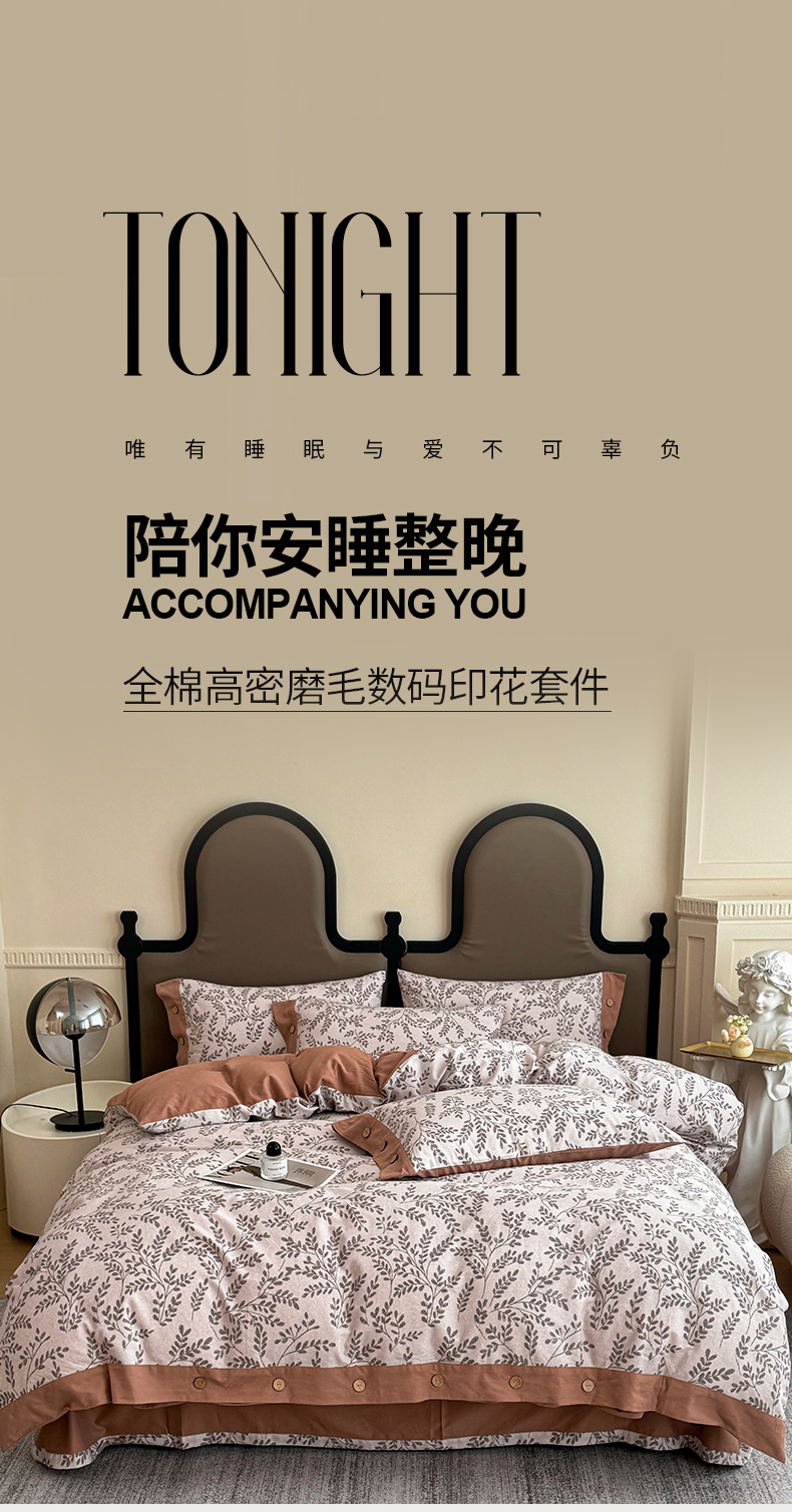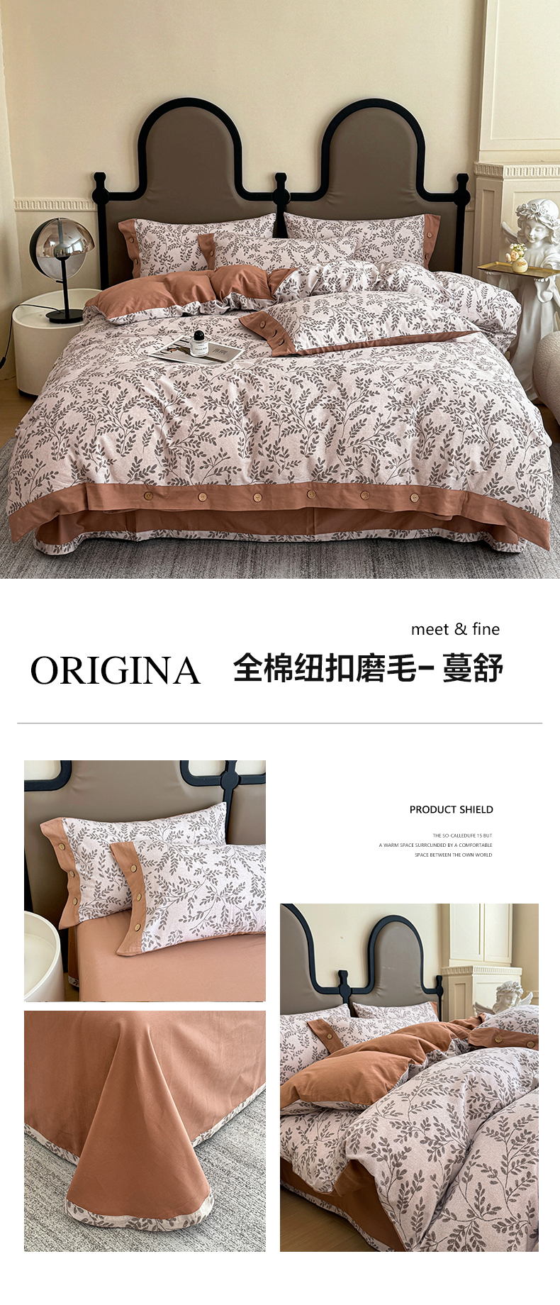 商品名称:泽西家纺 2024新款数码印花全棉磨毛纽扣款纯棉磨毛四件套 蔓舒