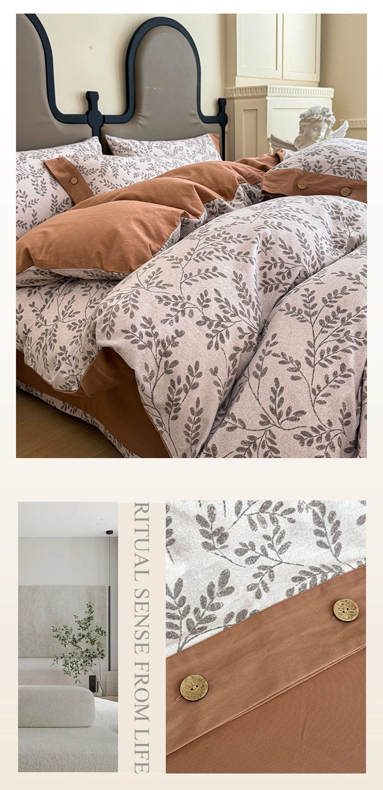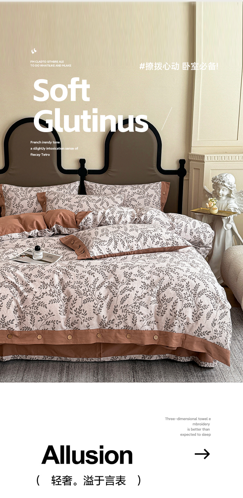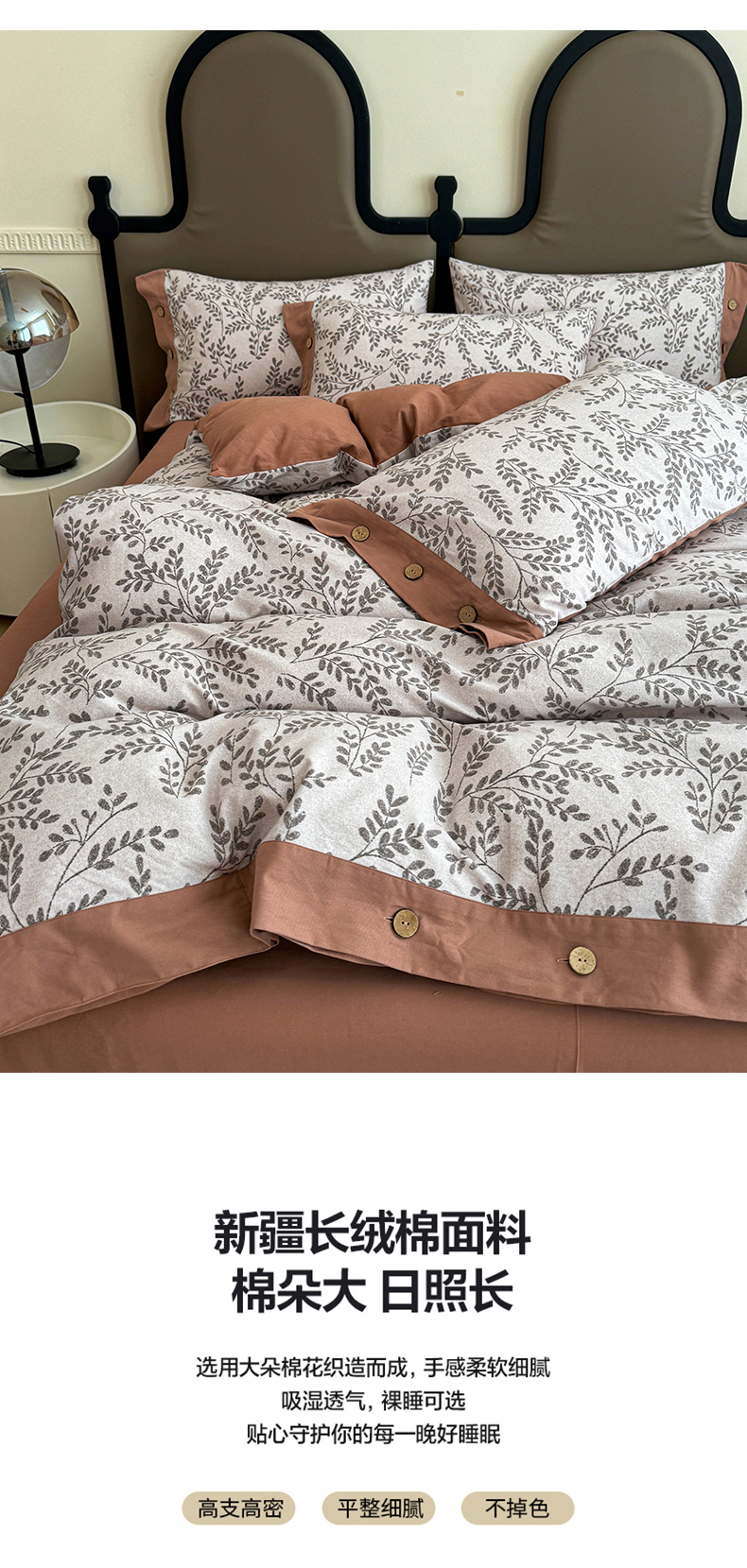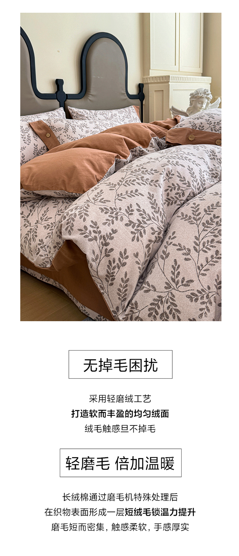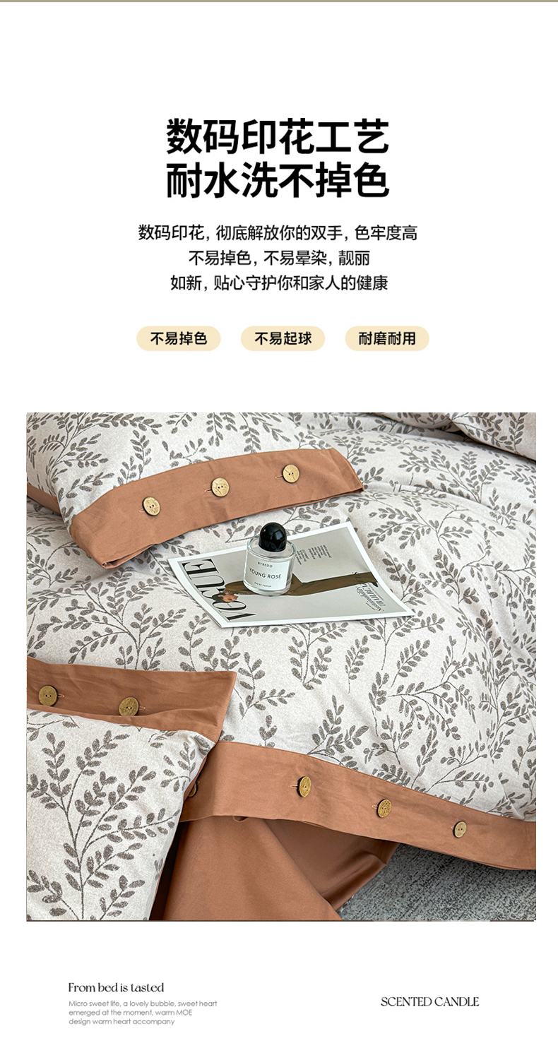 泽西家纺 2024新款数码印花全棉磨毛纽扣款纯棉磨毛四件套 蔓舒