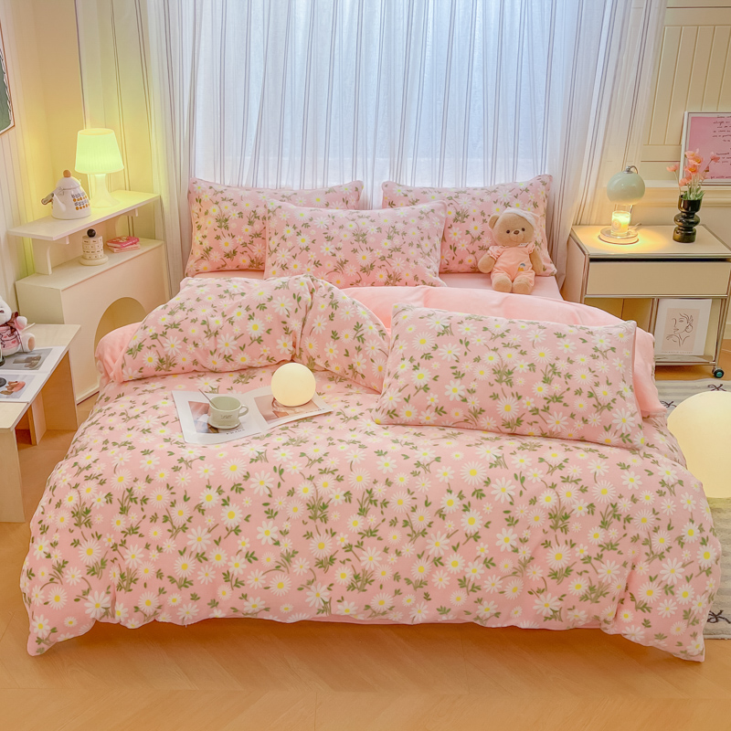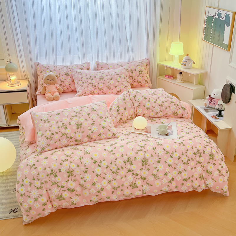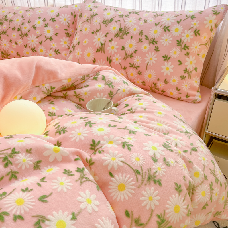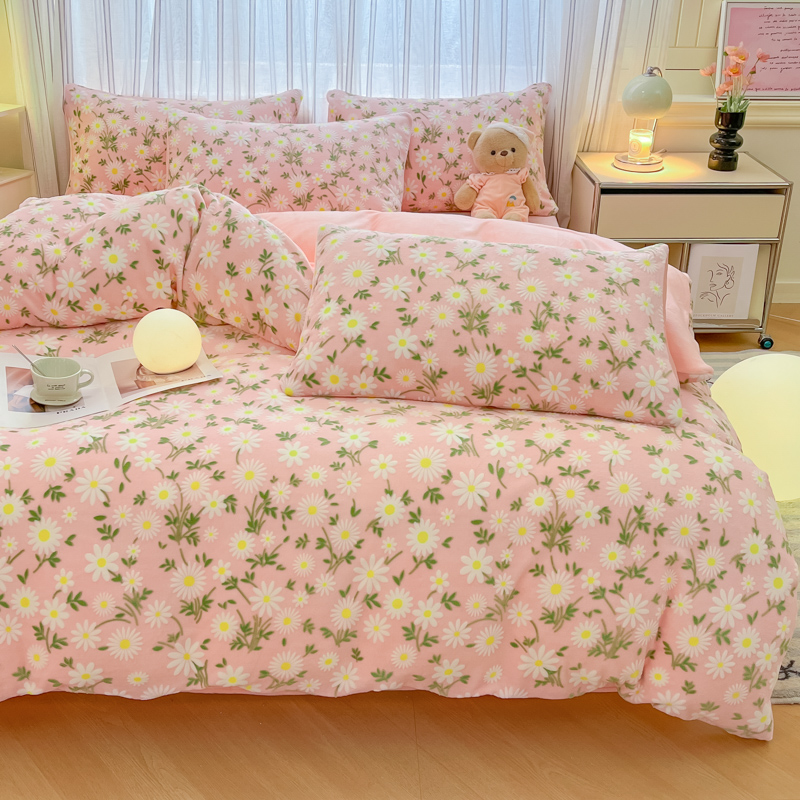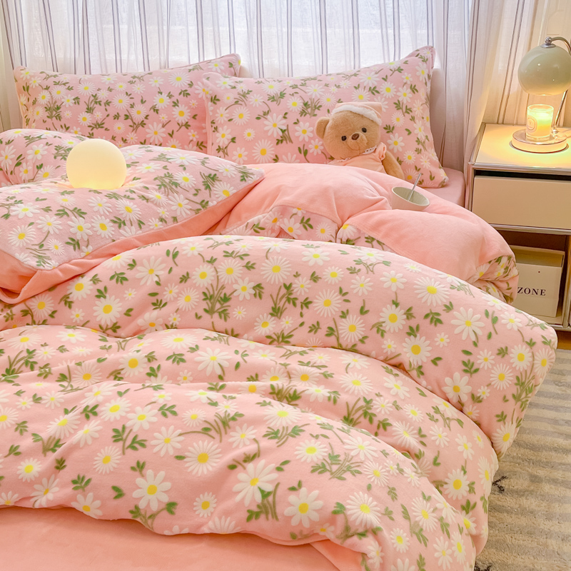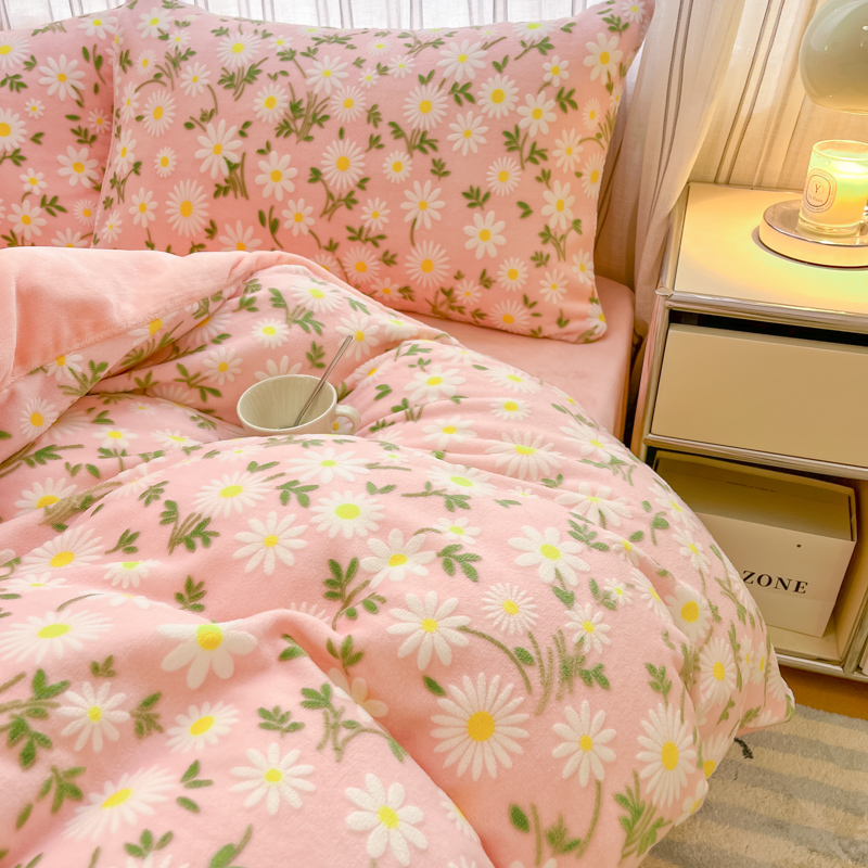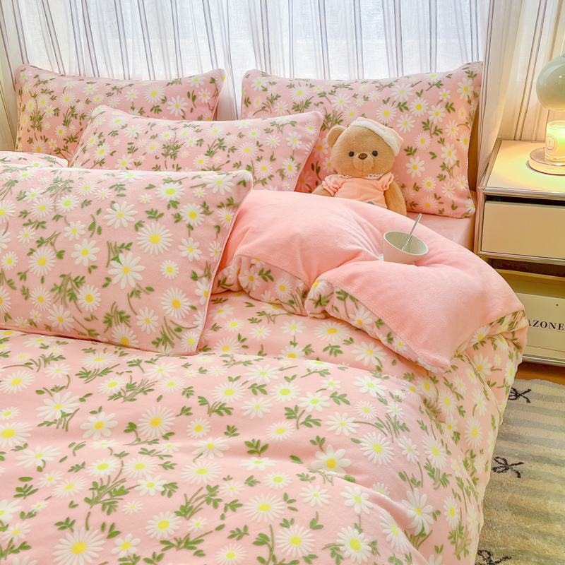 商品名称:绘萱家居 2025新款高克重雕花雕印纯色牛奶绒四件套双拼法莱绒珊瑚绒 小雏菊