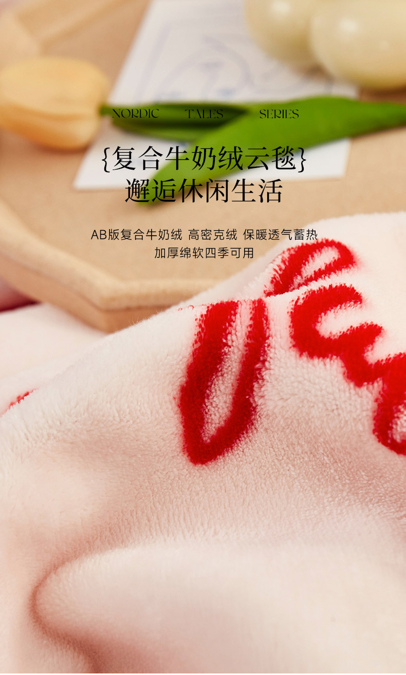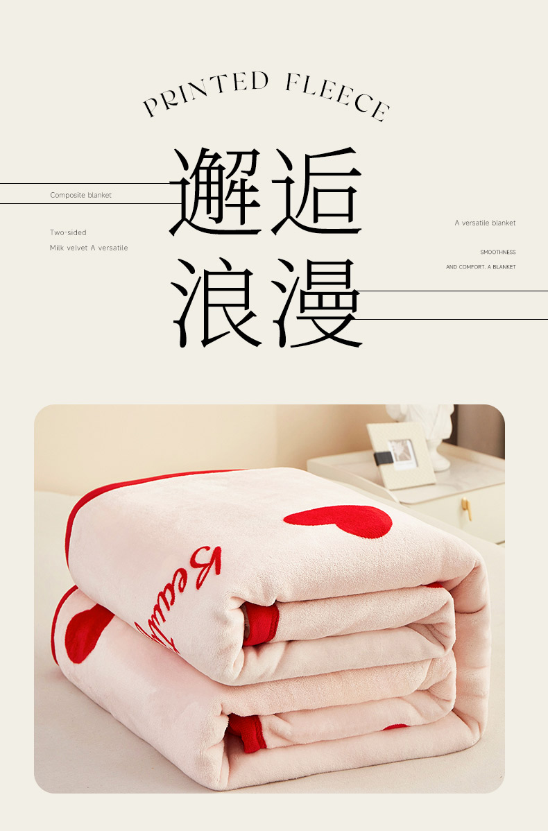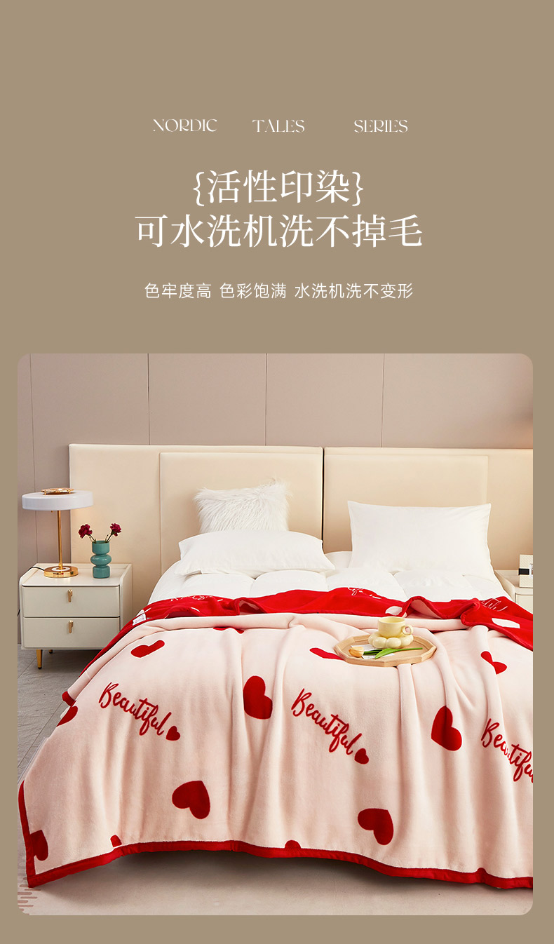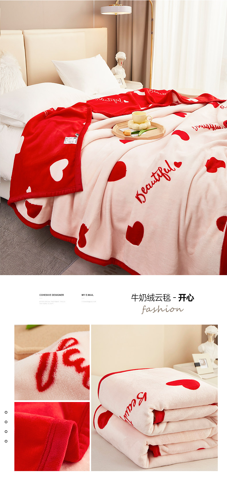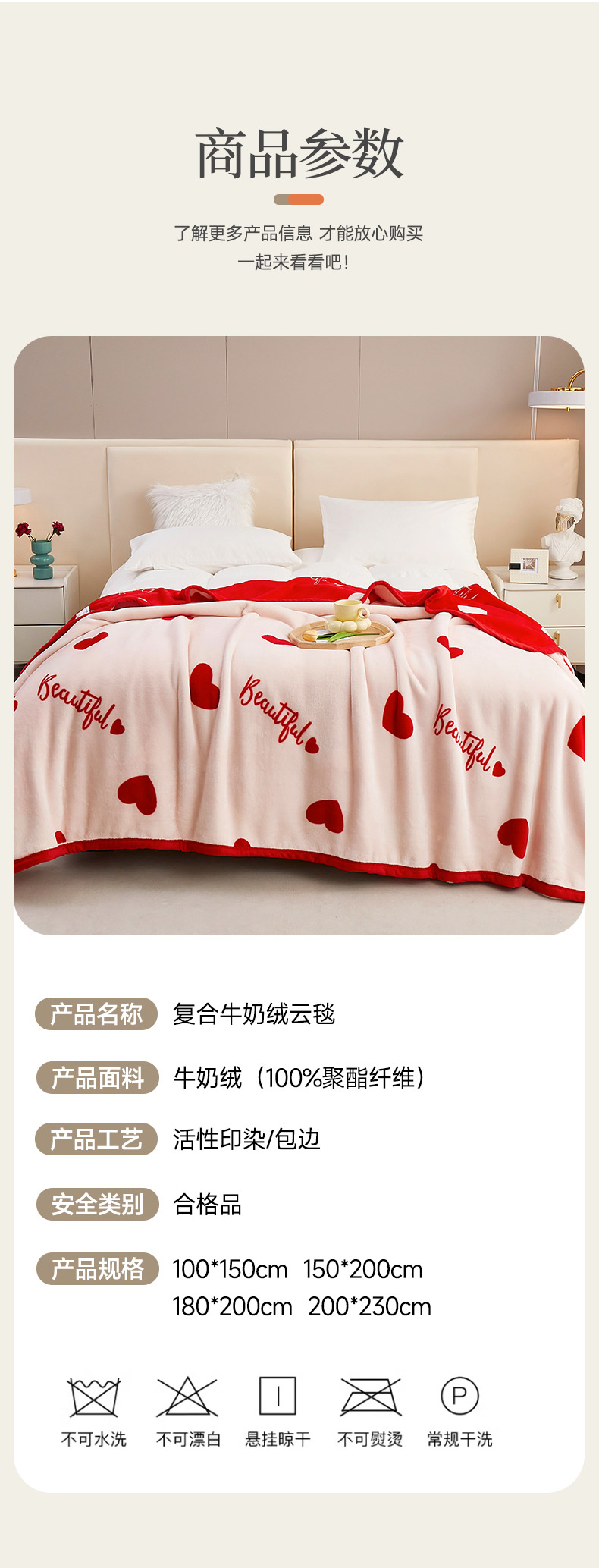 悦织湾家纺 2025新款高克重双面印花云毯毯子盖毯 开心