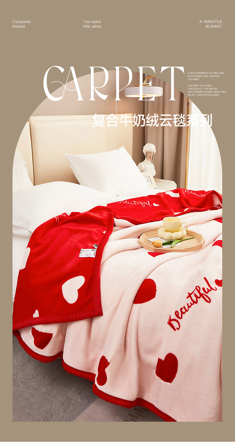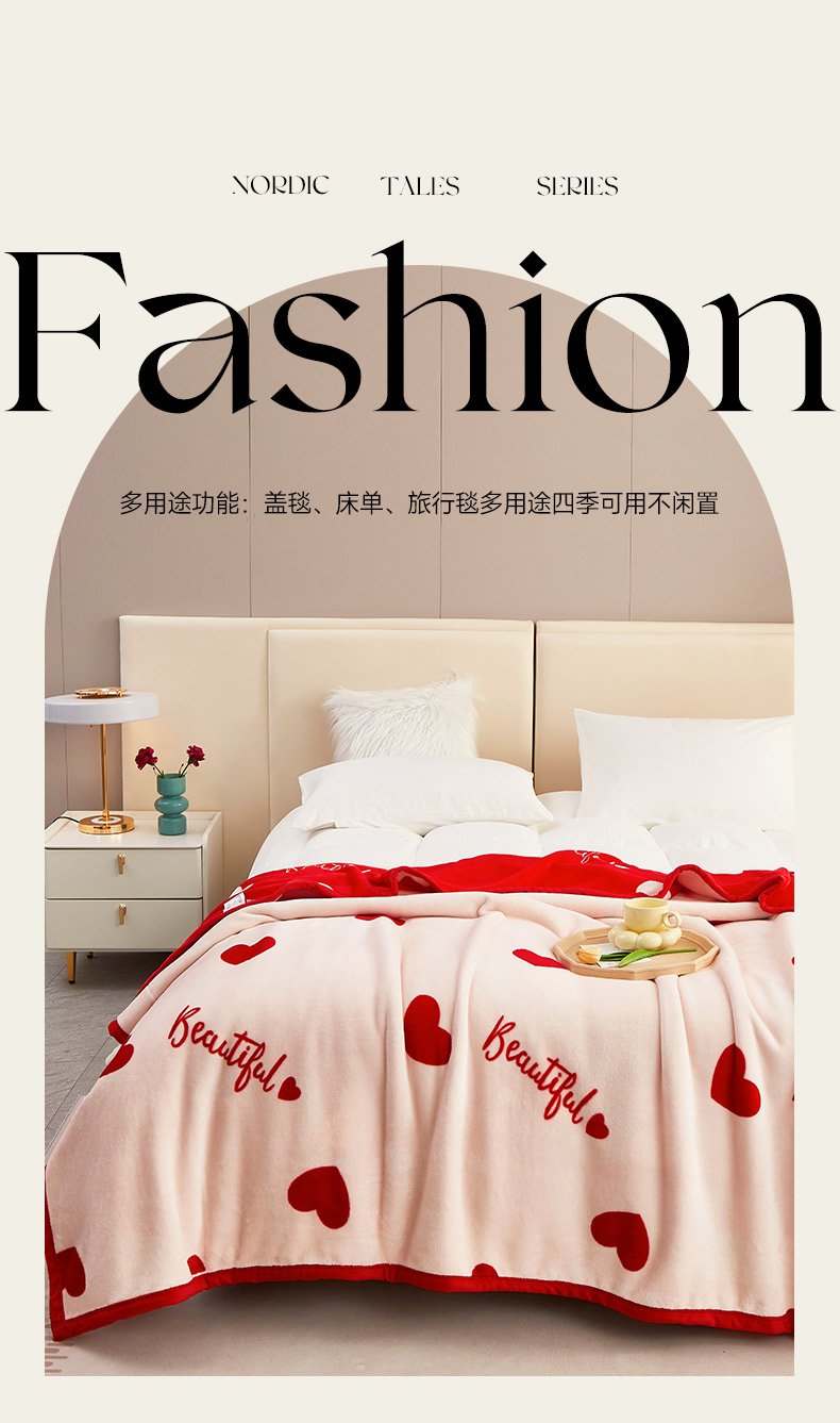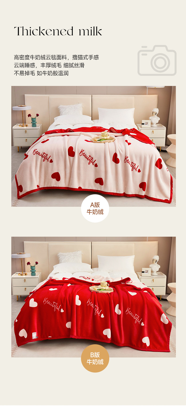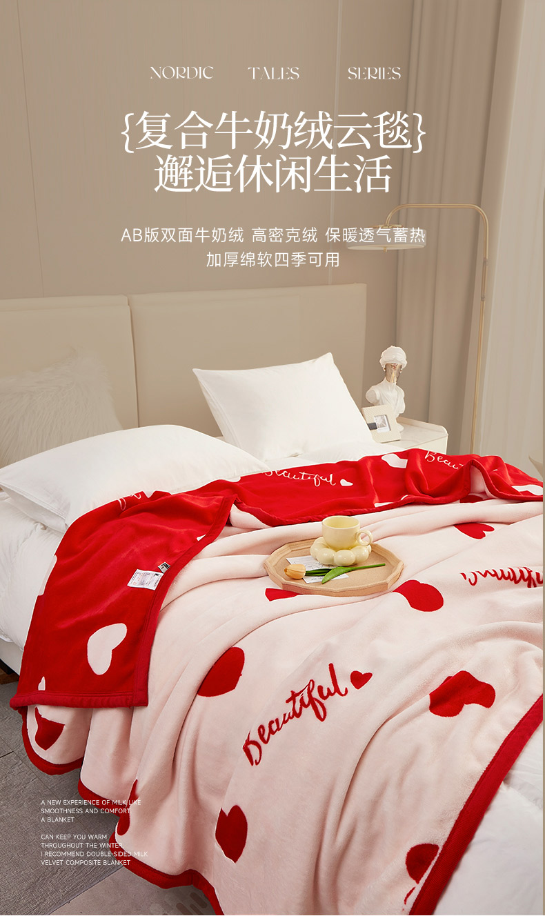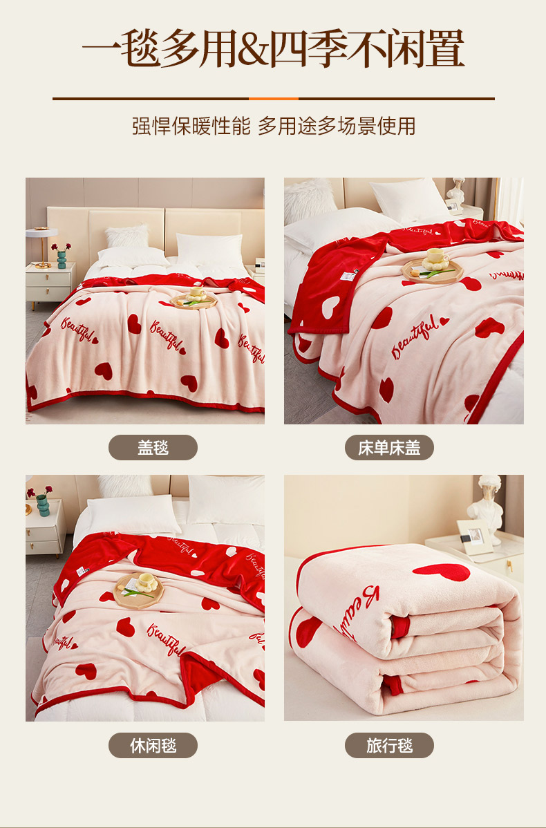 悦织湾家纺 2025新款高克重双面印花云毯毯子盖毯 开心