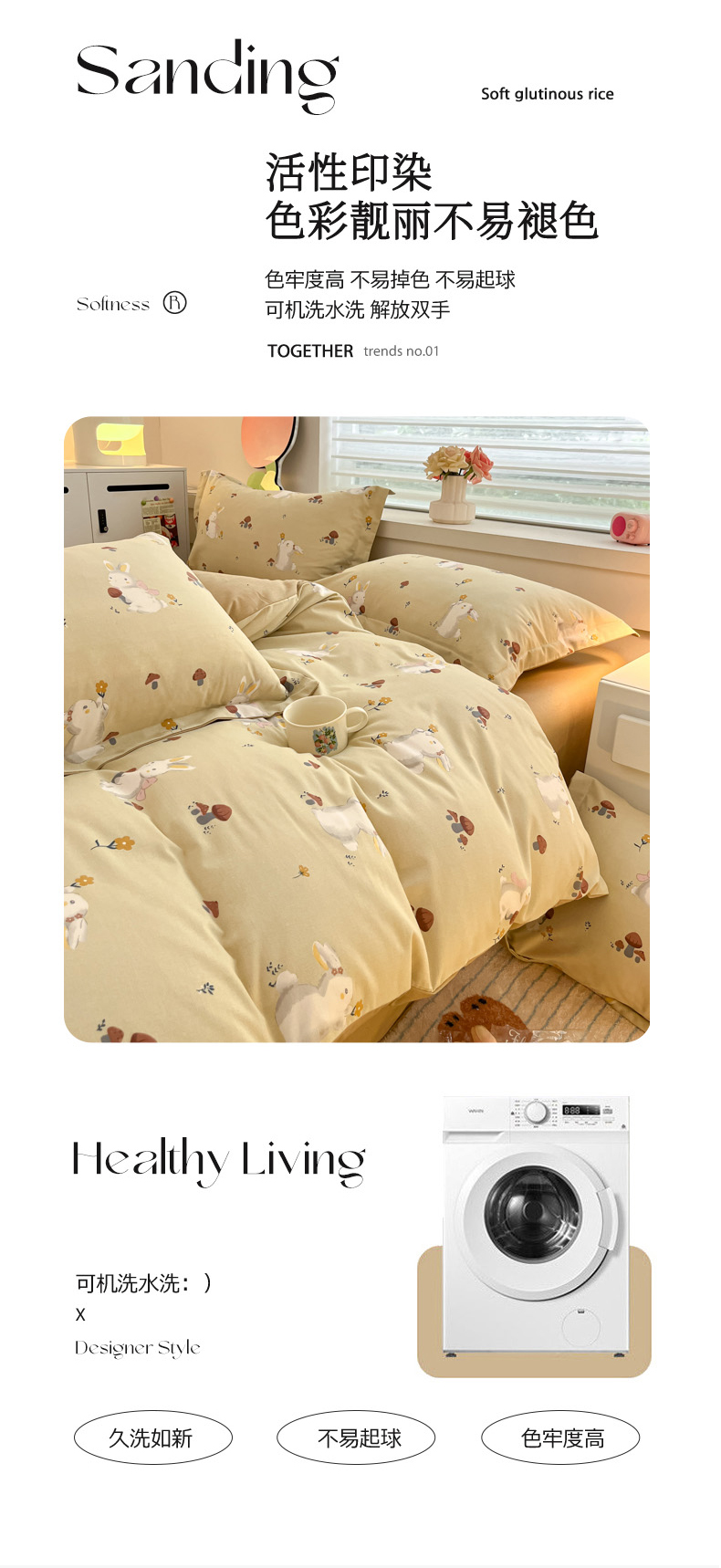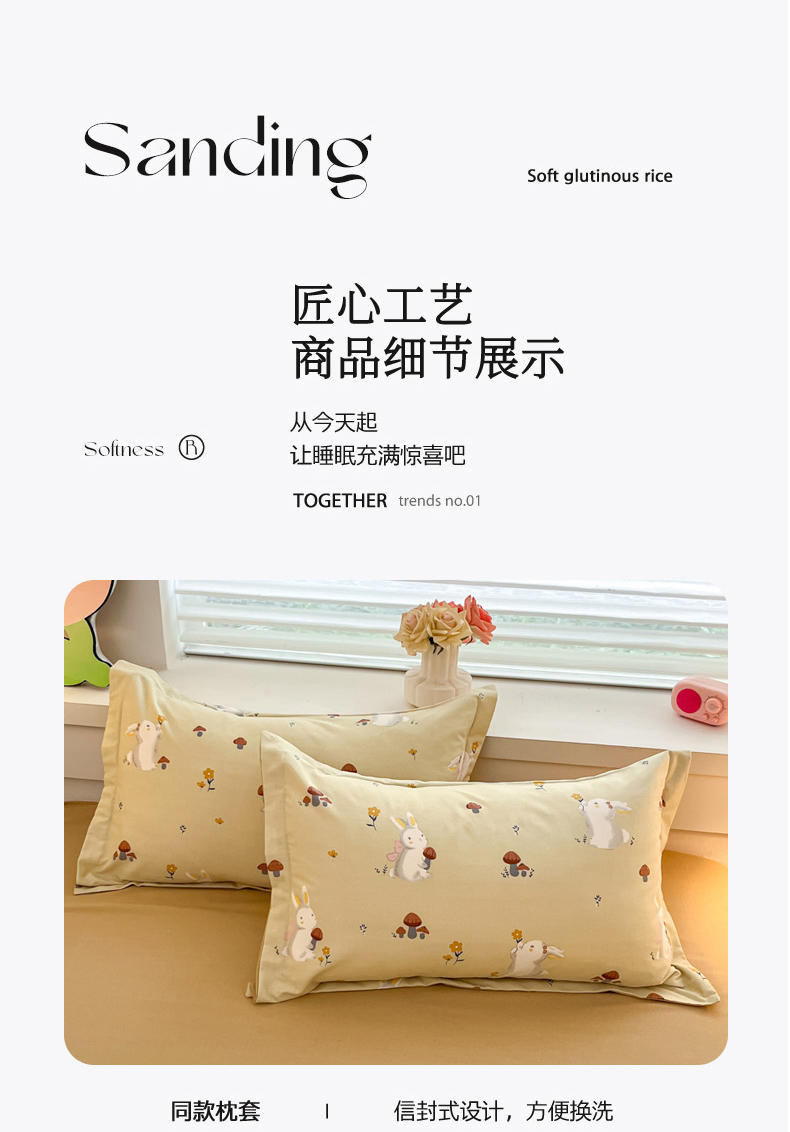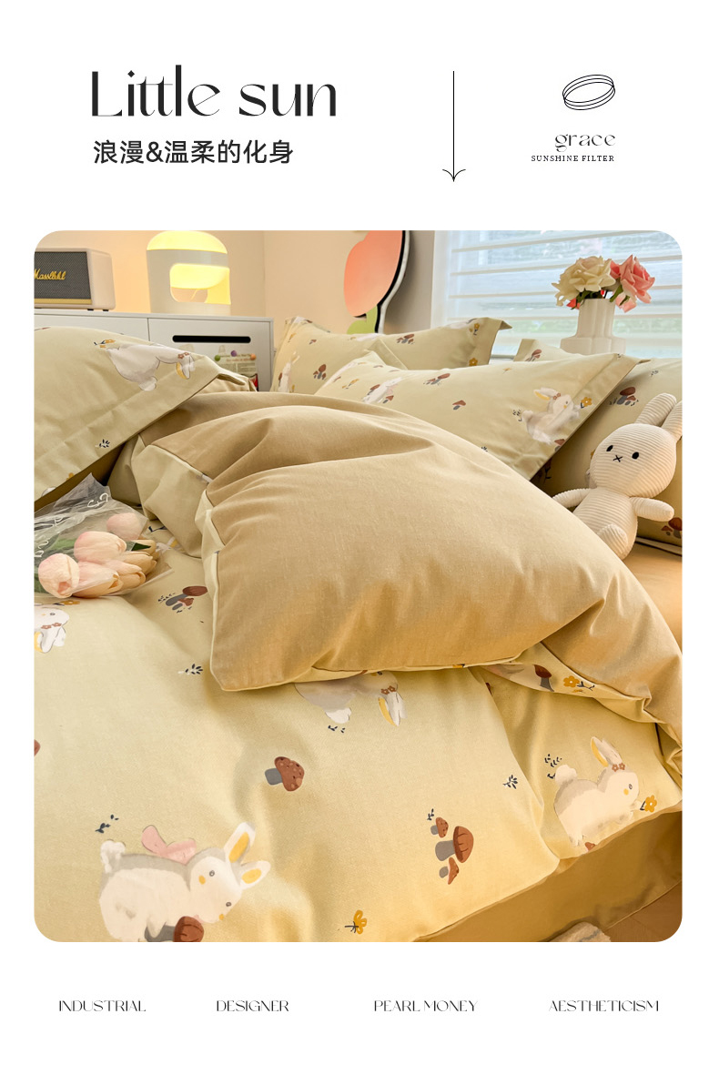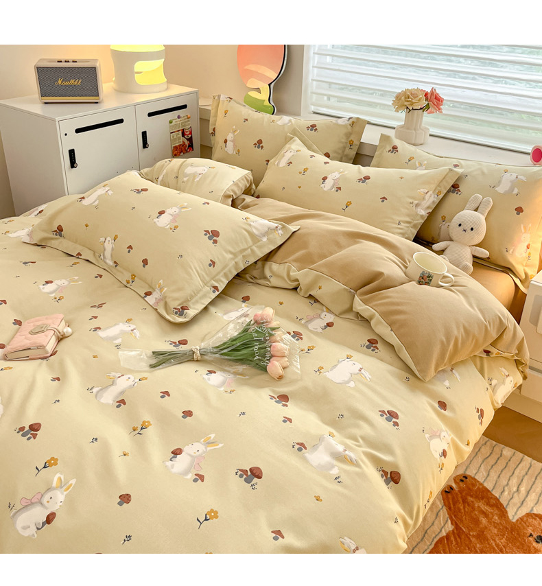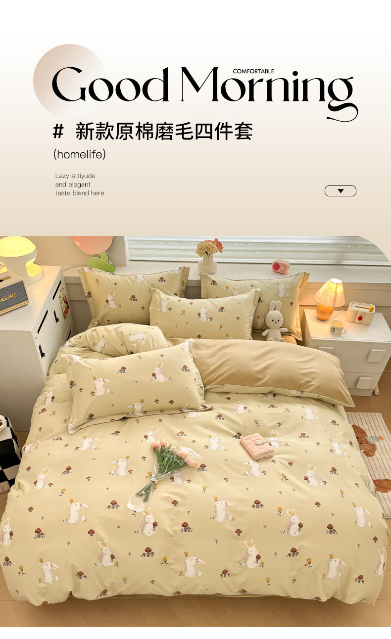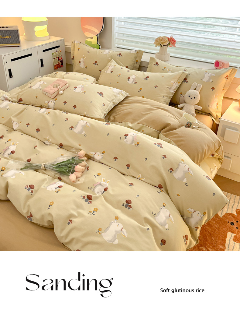 当前位置: 91家纺网 > 商品网购 > 床品套件 > 四件套 > 普通磨毛四件套 > 慕尚家纺 2025新款原棉磨毛四件套单被套系列-四件套 蘑菇小兔