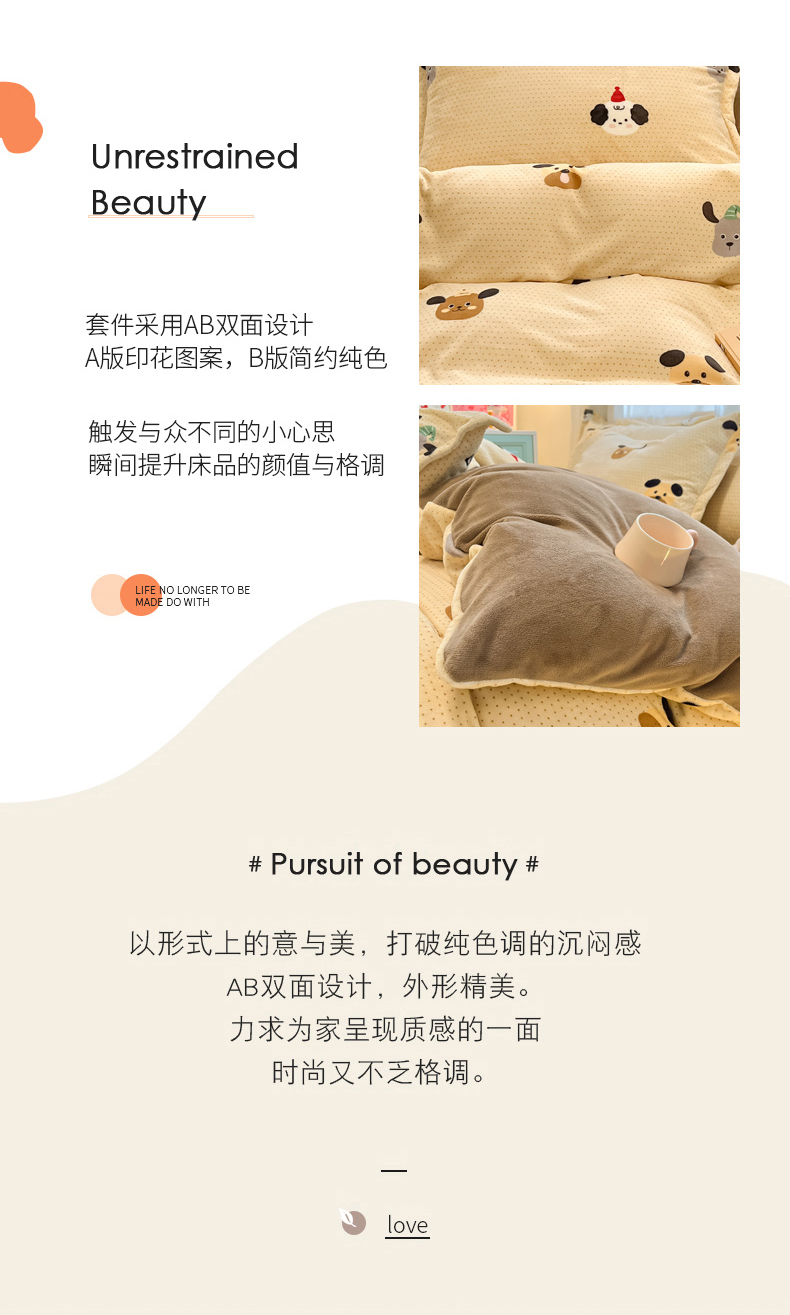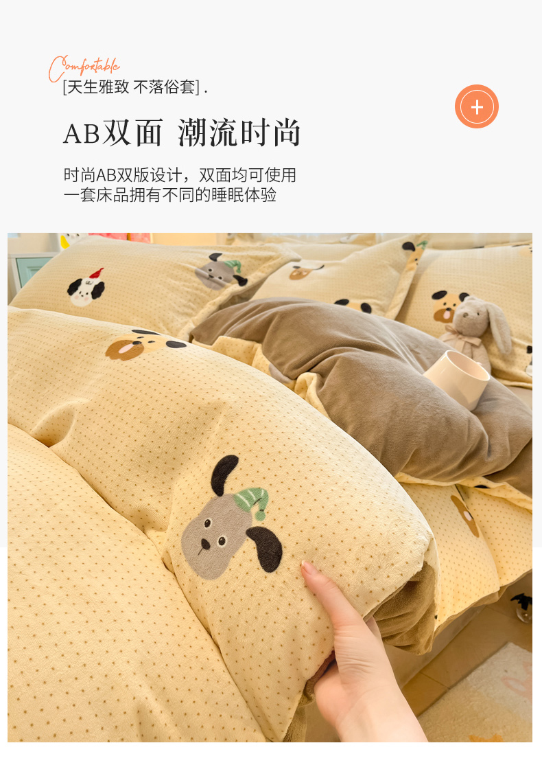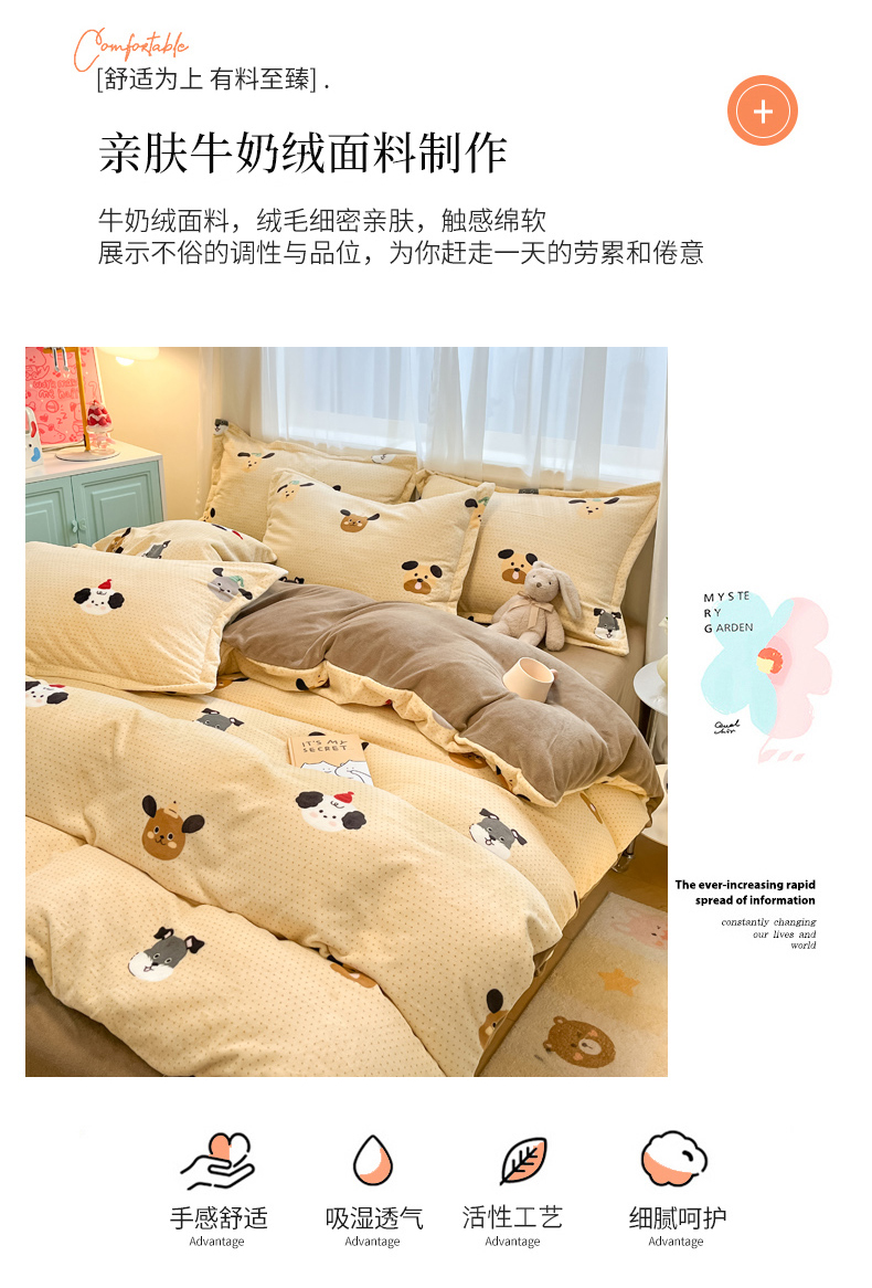2025新款田园花卉类印花牛奶绒被套单件 开心狗