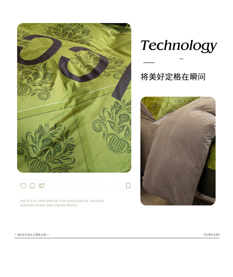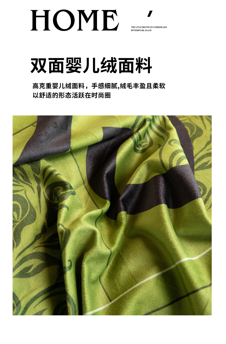色鬼布艺 2024新款婴儿绒数码印花牛奶绒四件套仿大牌直播爆款网红款 复古绿