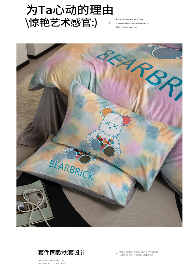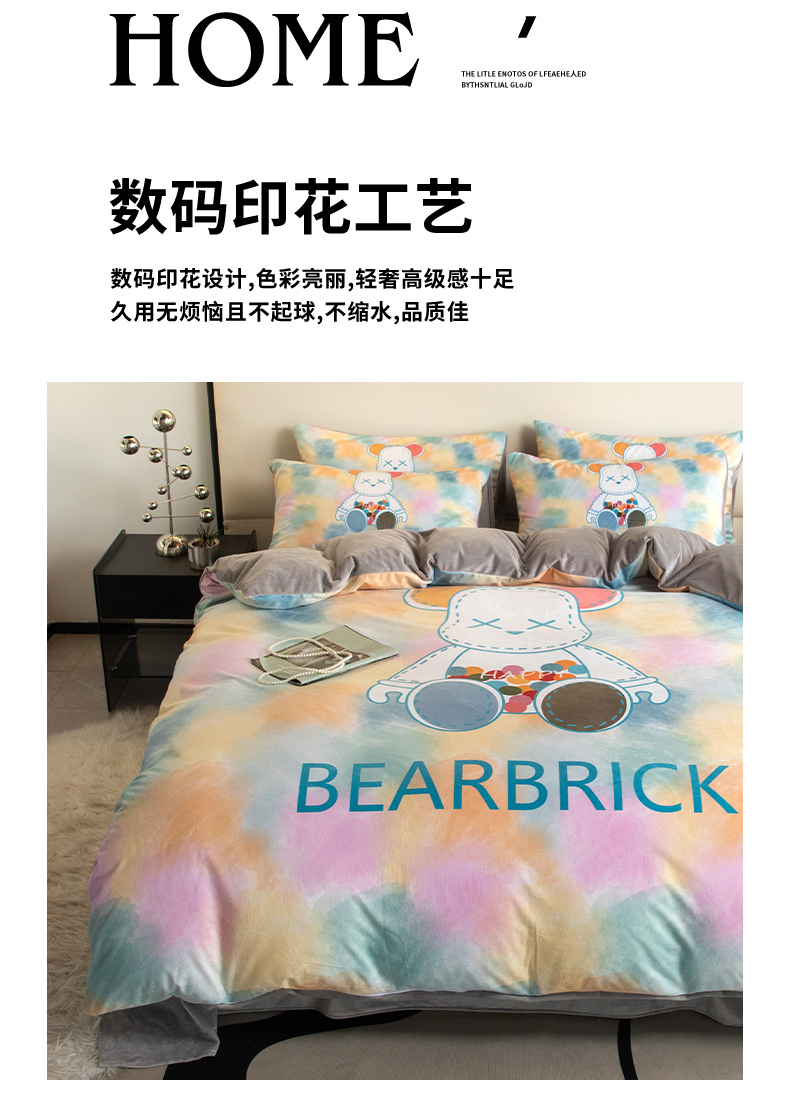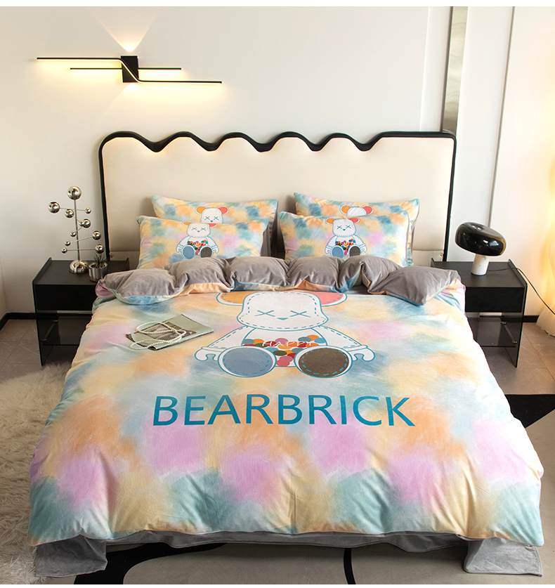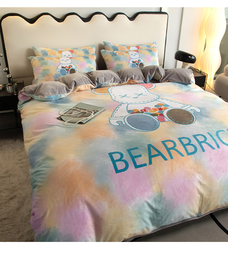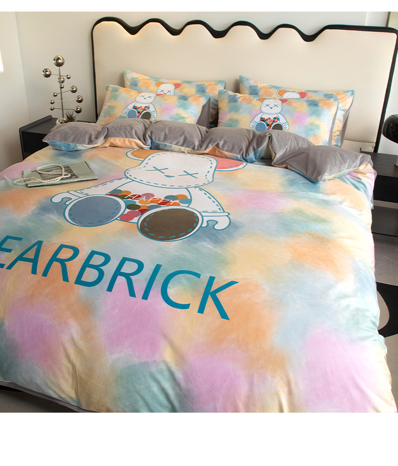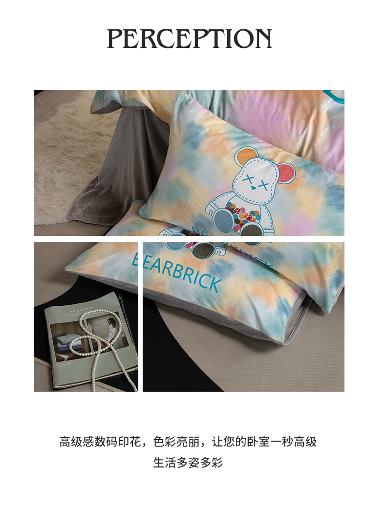 商品名称:色鬼布艺 2024新款婴儿绒数码印花牛奶绒四件套仿大牌直播爆款网红款 七彩熊