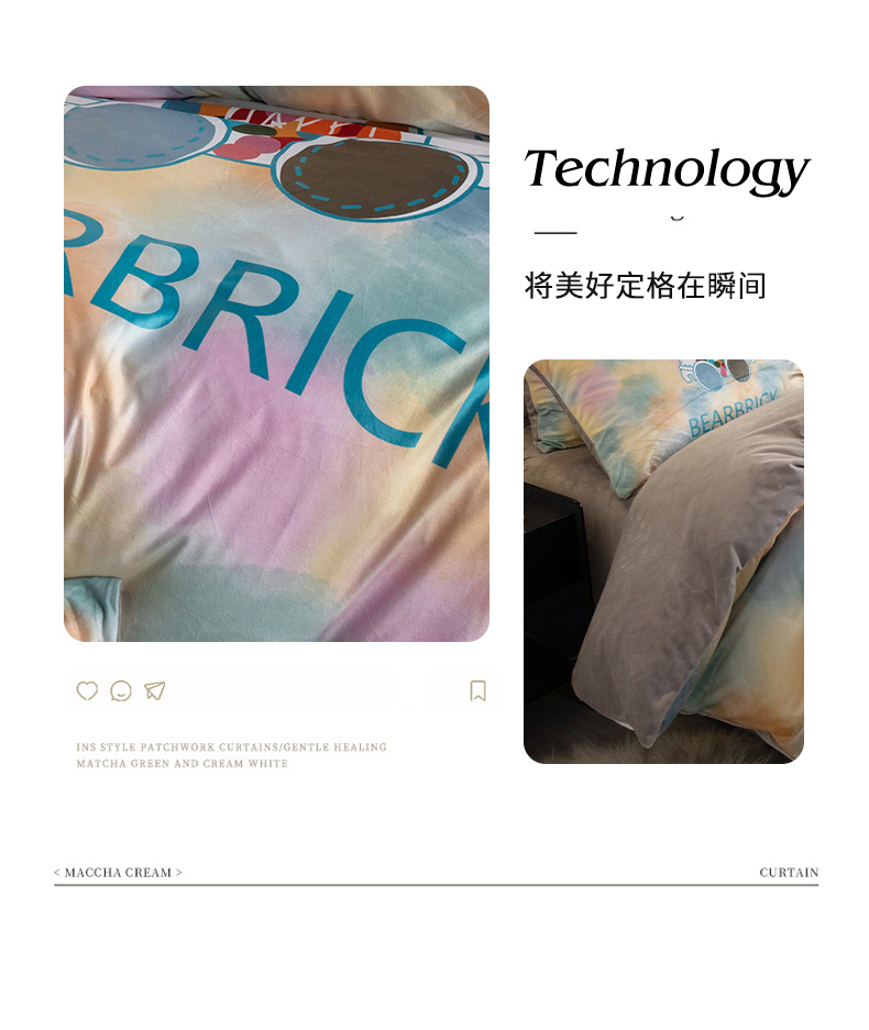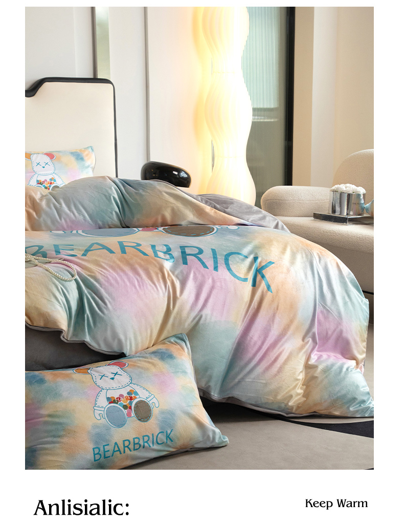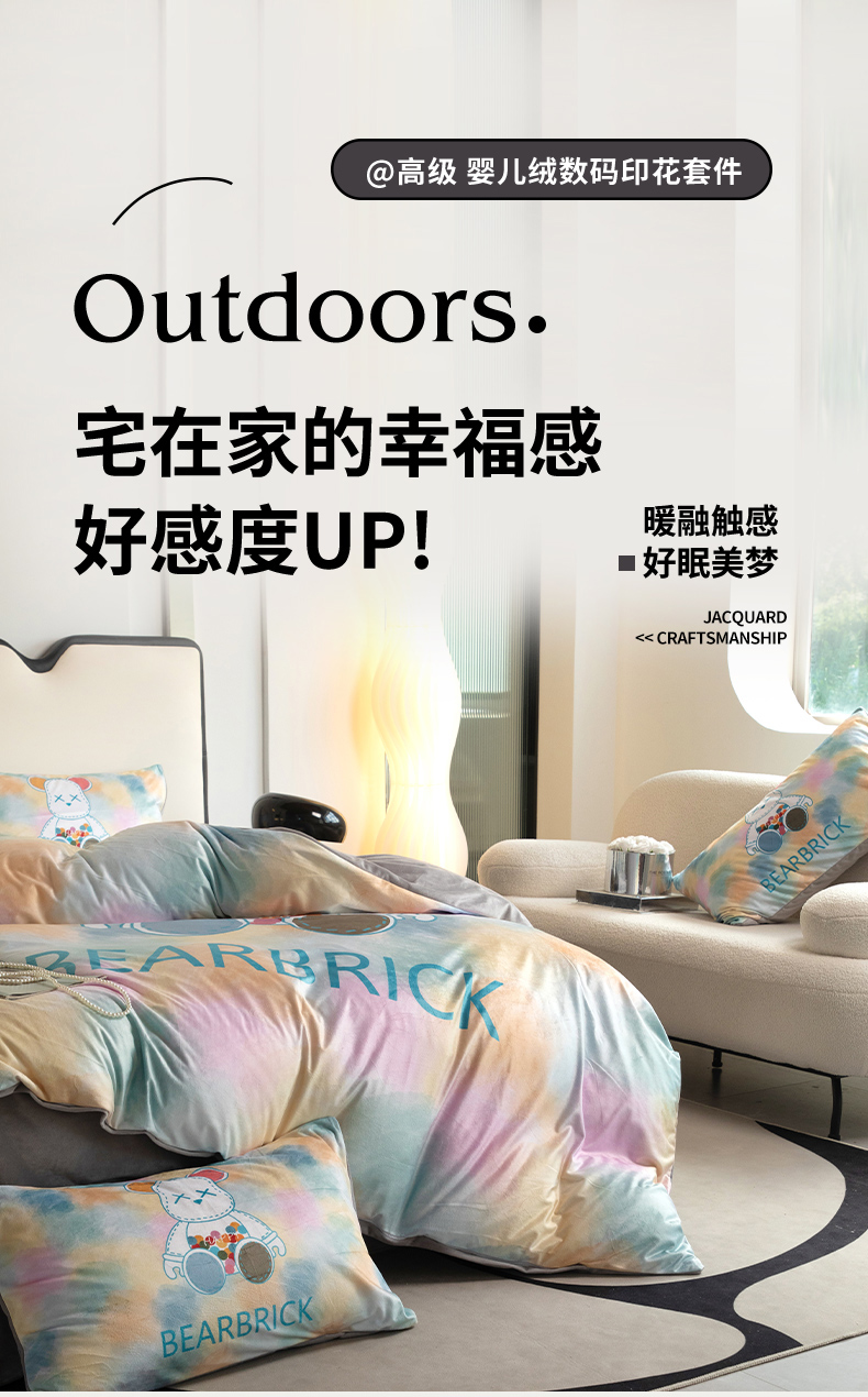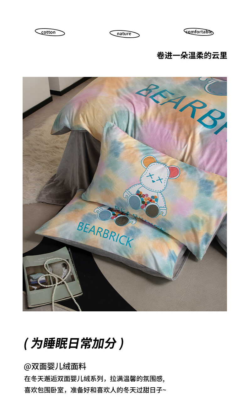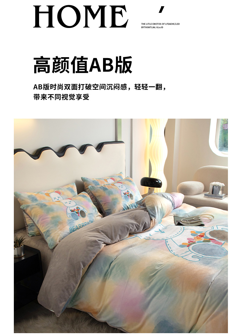 商品名称:色鬼布艺 2024新款婴儿绒数码印花牛奶绒四件套仿大牌直播爆款网红款 七彩熊