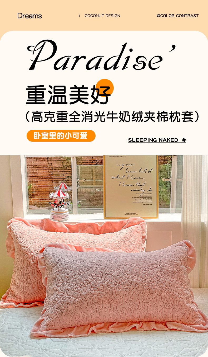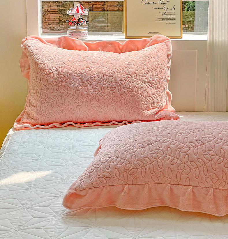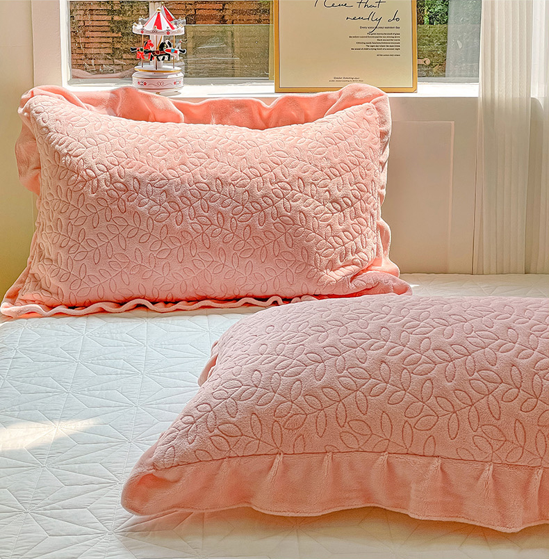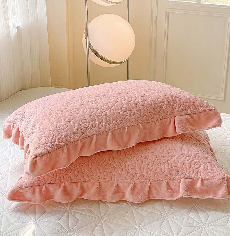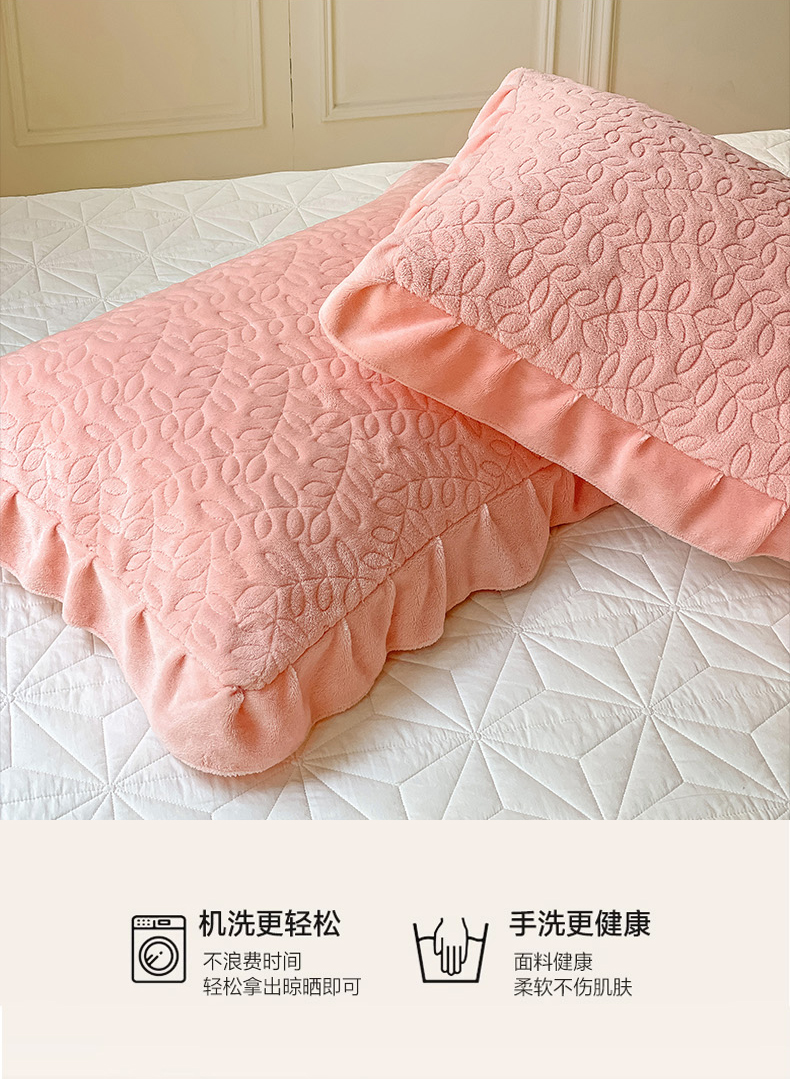 漫时光 2025新款纯色牛奶绒花边款枕套 罗曼-蜜桃粉