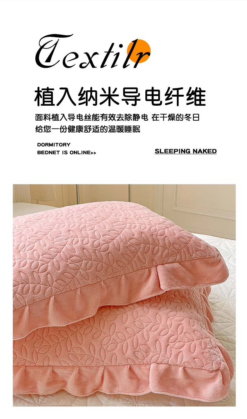 商品名称:漫时光 2025新款纯色牛奶绒花边款枕套 罗曼-蜜桃粉