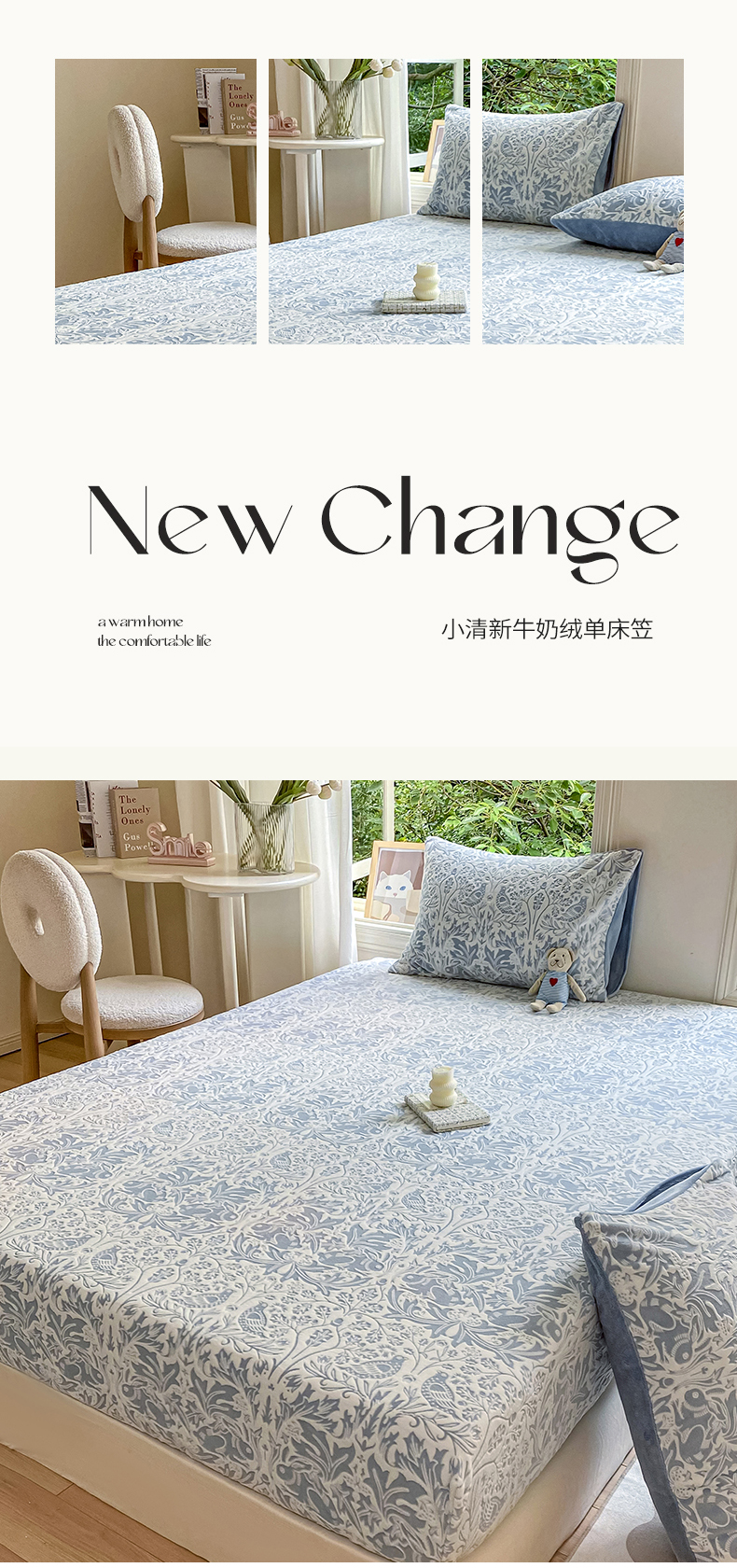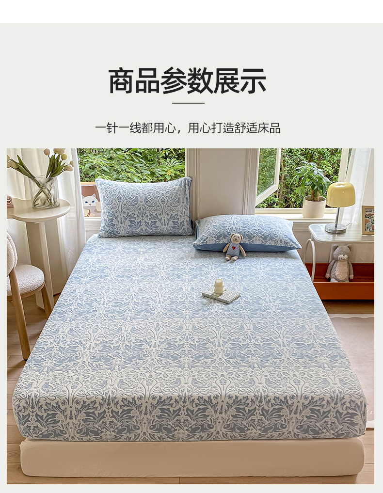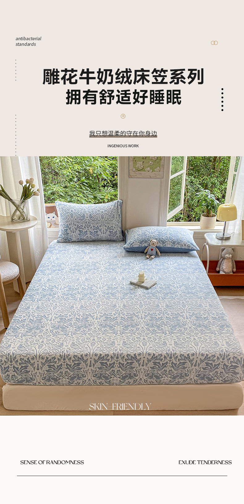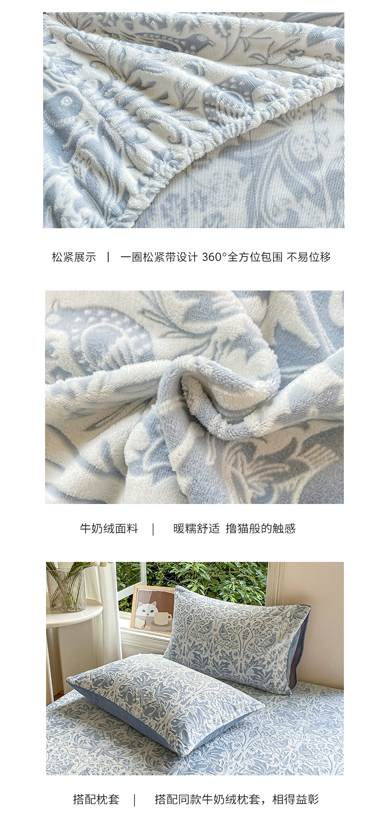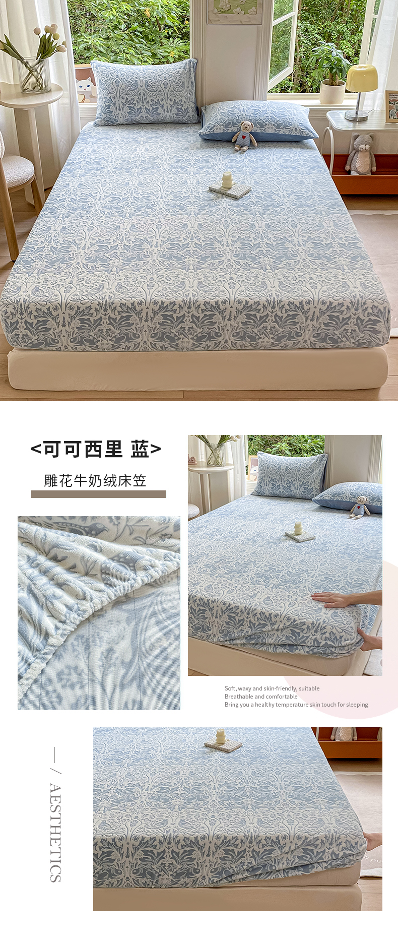 • 91家纺网 家纺一手货源 找家纺 大境 2024新款A类雕花绒牛奶绒床笠三件套单床笠宝宝绒婴儿绒 可可西里 蓝