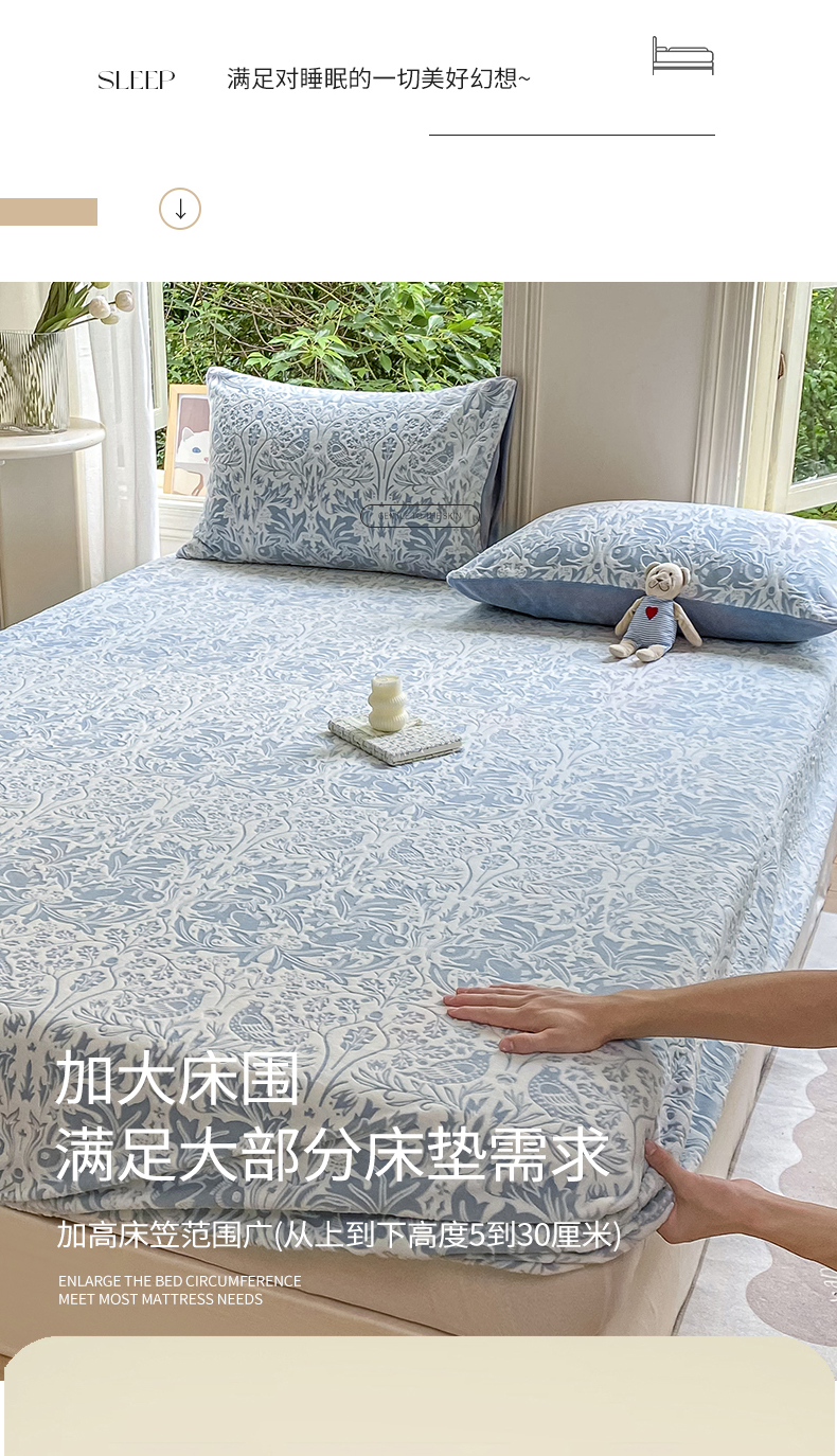 当前位置: 91家纺网 > 商品网购 > 床上用品 > 床笠 > 大境 2024新款A类雕花绒牛奶绒床笠三件套单床笠宝宝绒婴儿绒 可可西里 蓝