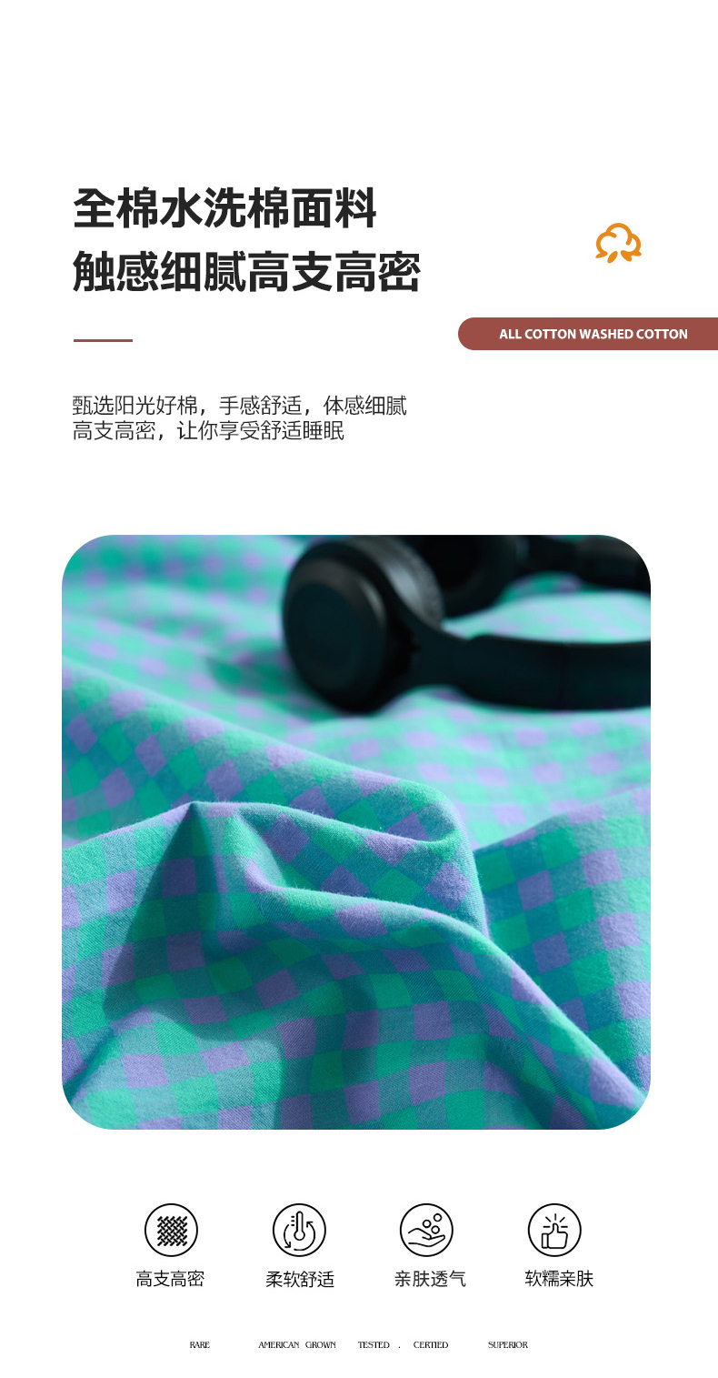 当前位置: 91家纺网 > 商品网购 > 床品套件 > 四件套 > 水洗棉四件套 > 三沁家居 2025新款格子色织全棉水洗棉四件套直播爆款量大价优 绿野仙踪小格