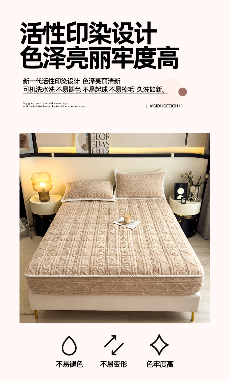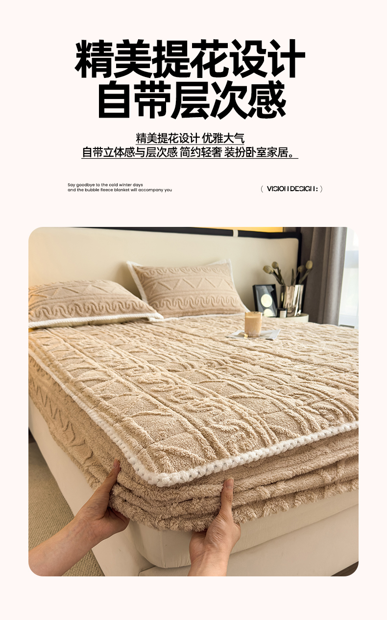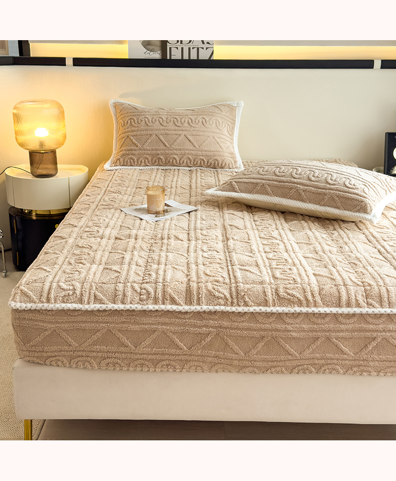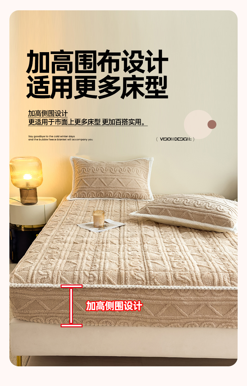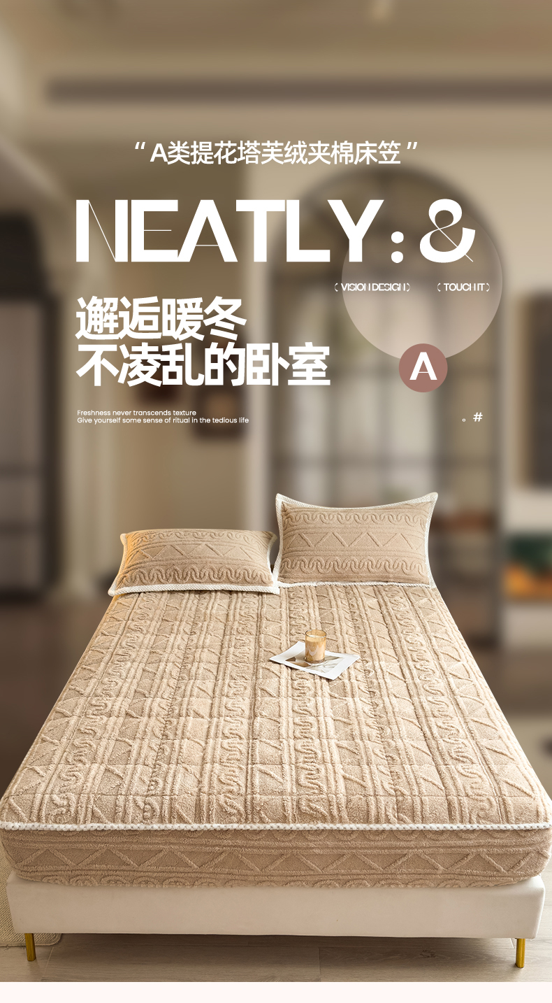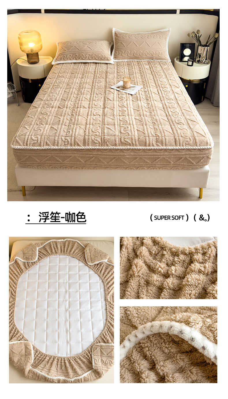 商品名称:暖季家纺 2025新款A类高克重提花塔芙绒单床笠 浮笙-咖色床笠