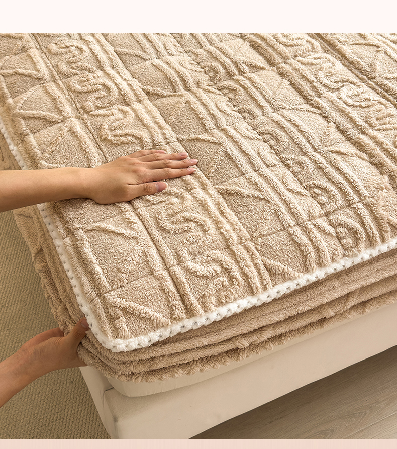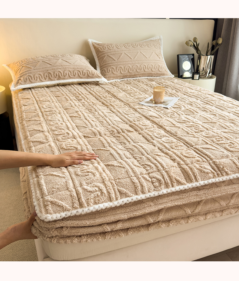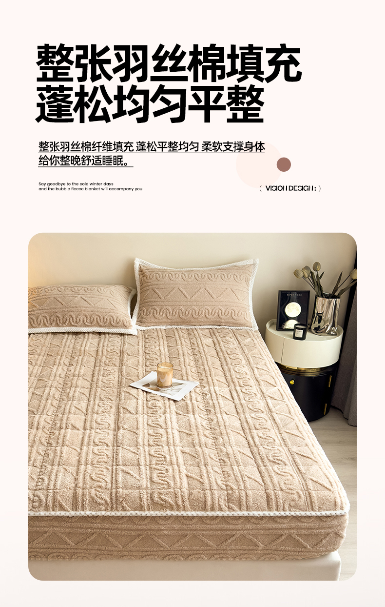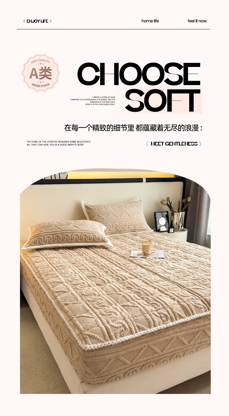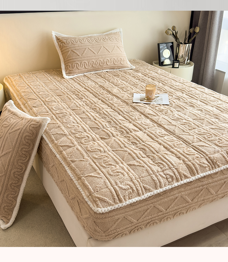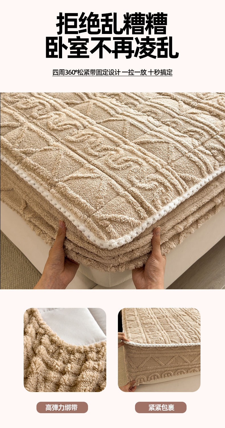 商品名称:暖季家纺 2025新款A类高克重提花塔芙绒单床笠 浮笙-咖色床笠