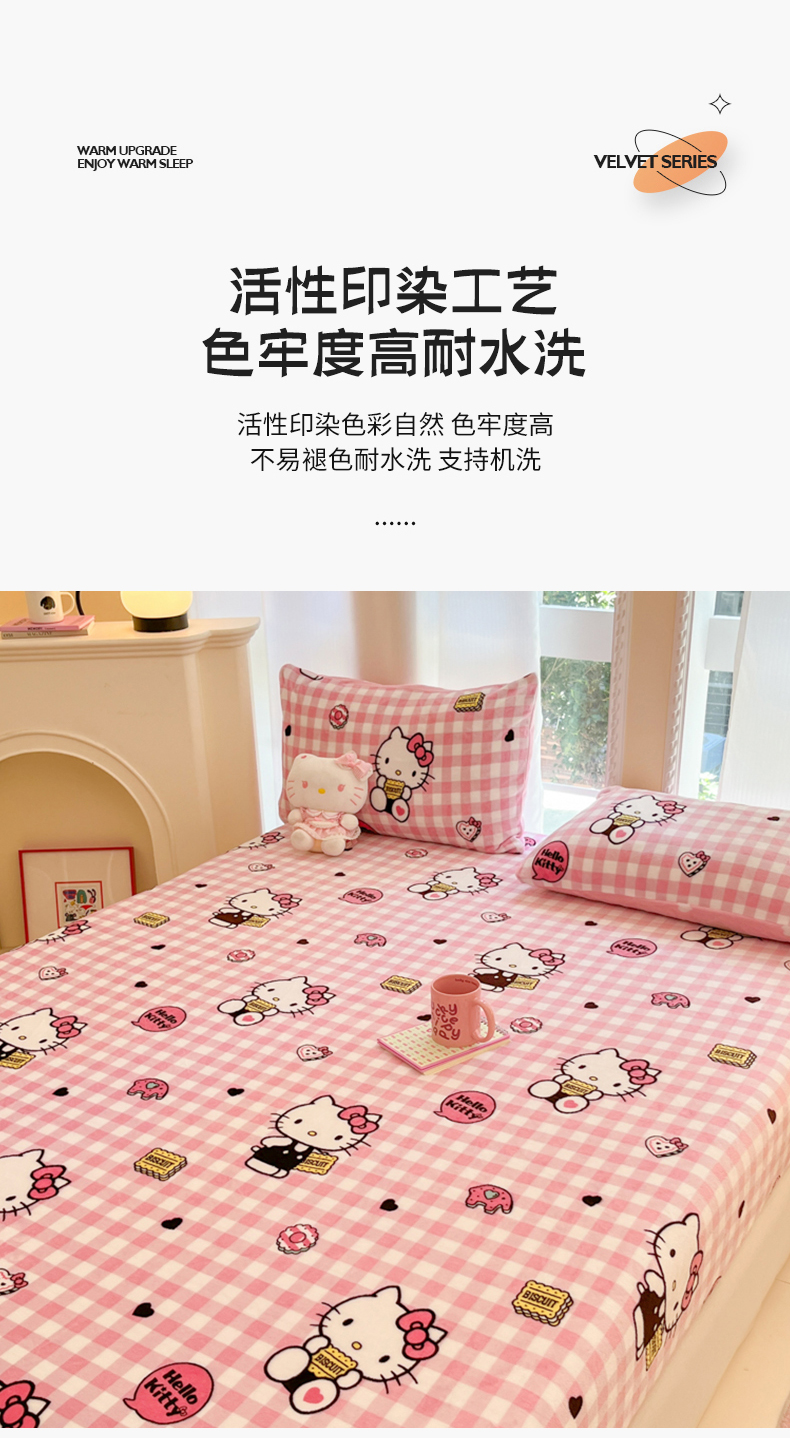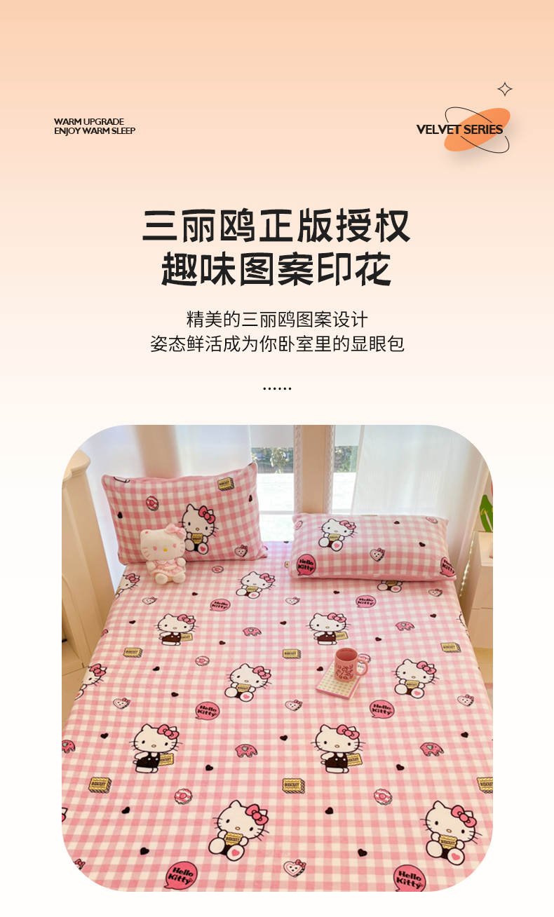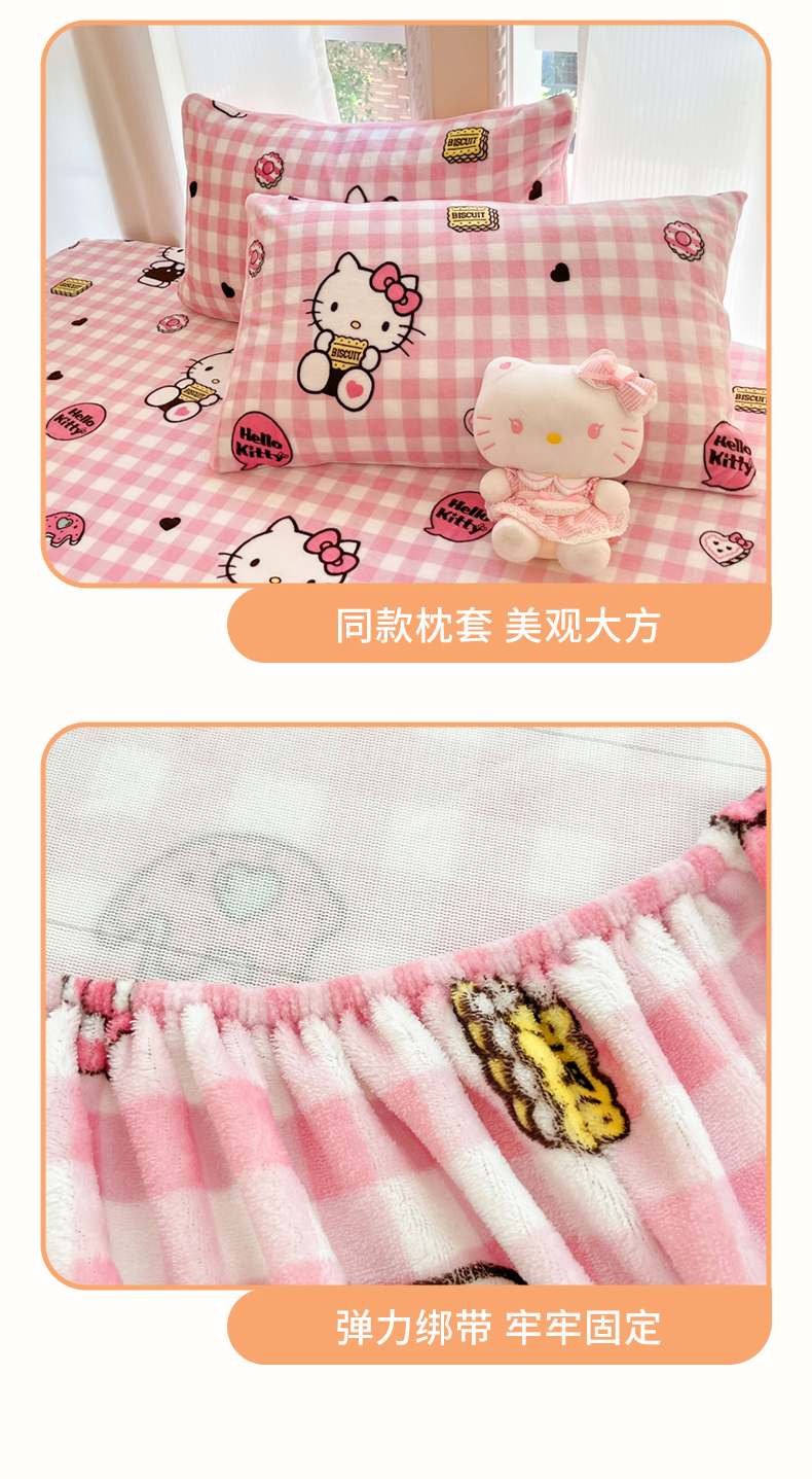 • 91家纺网 家纺一手货源 找家纺 博雅 2024新款三丽鸥牛奶绒小版床笠系列 牛奶绒小版-饼干KT猫
