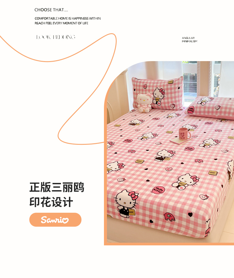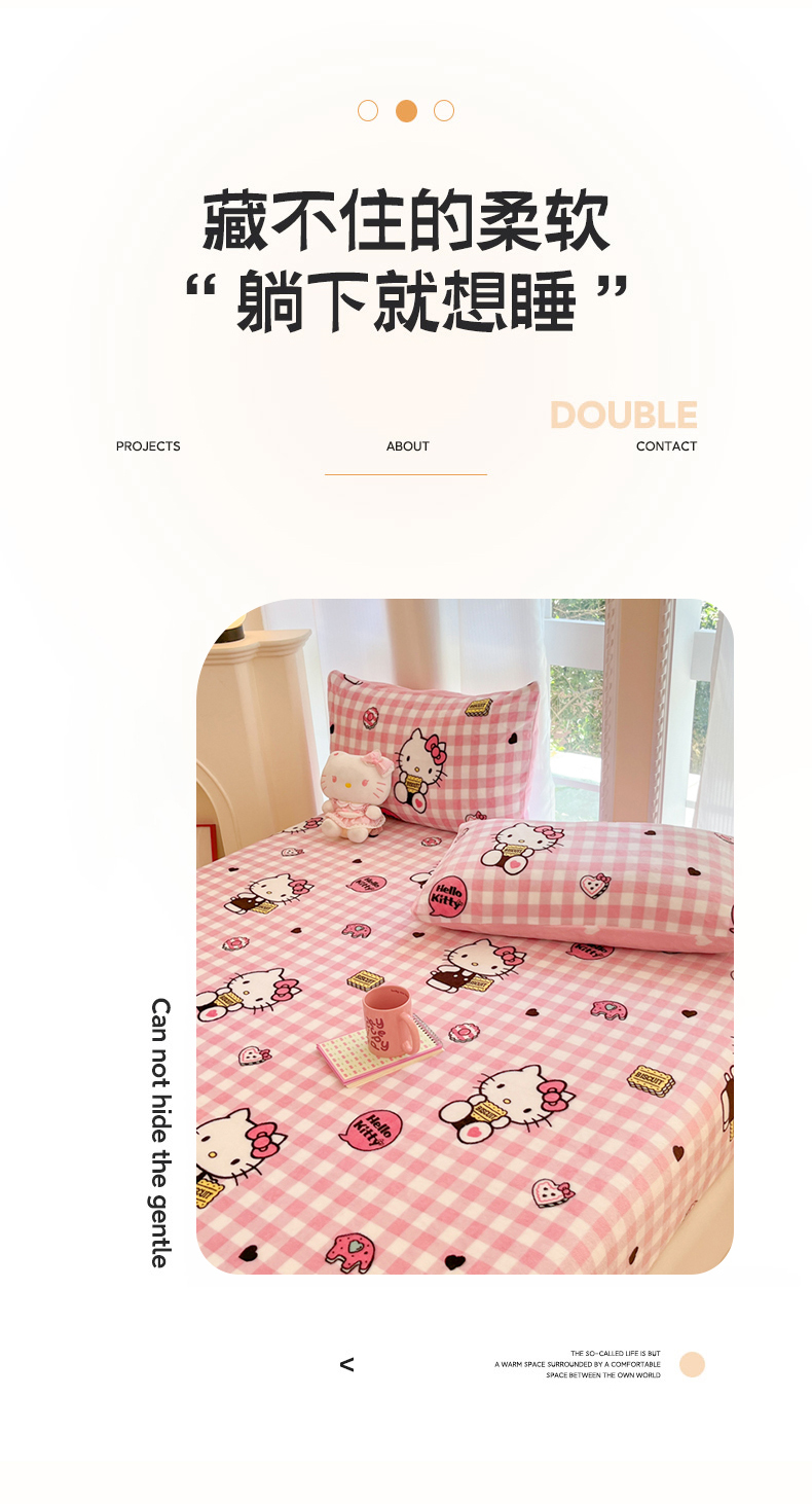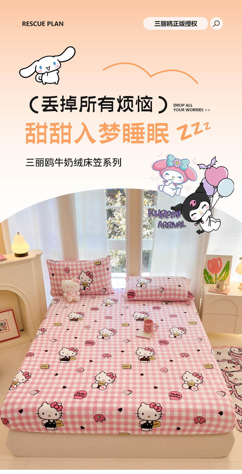 • 91家纺网 家纺一手货源 找家纺 博雅 2024新款三丽鸥牛奶绒小版床笠系列 牛奶绒小版-饼干KT猫