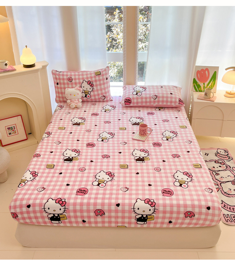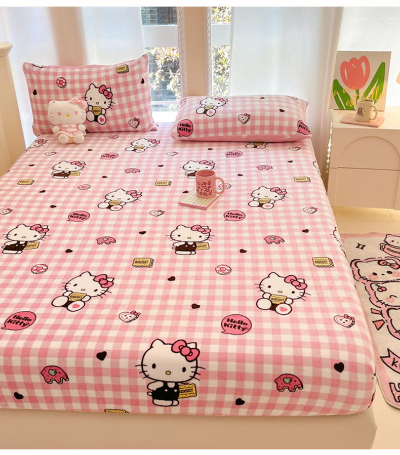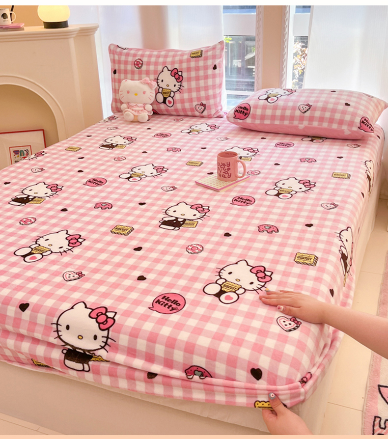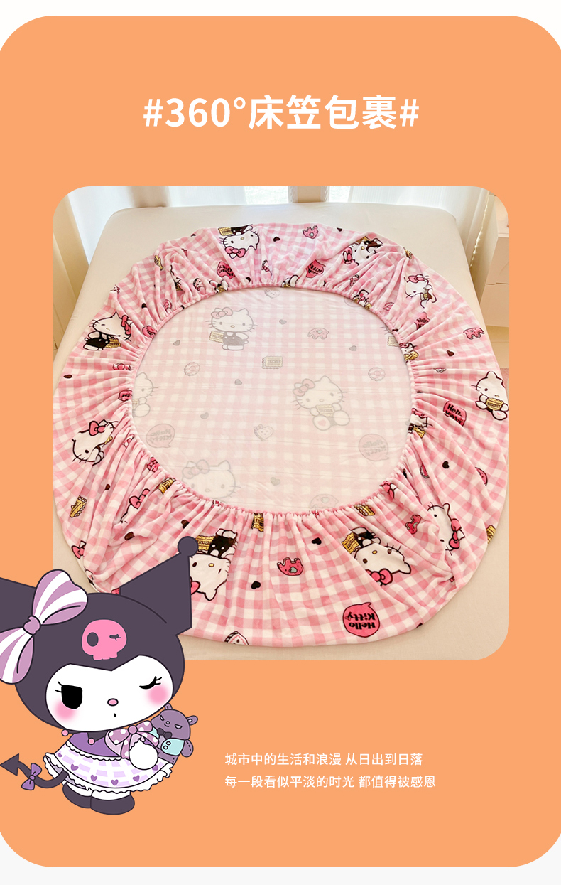 博雅 2024新款三丽鸥牛奶绒小版床笠系列 牛奶绒小版-饼干KT猫