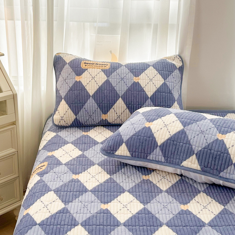 梵朴 2024新款牛奶绒直角包边床盖 英伦风尚