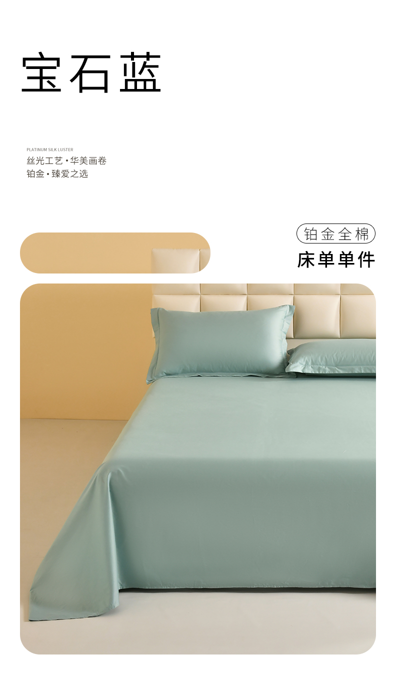 商品名称:元元被芯 2025款纯色全丝光-全精梳高密纺-铂金A类全棉单床单 宝石蓝