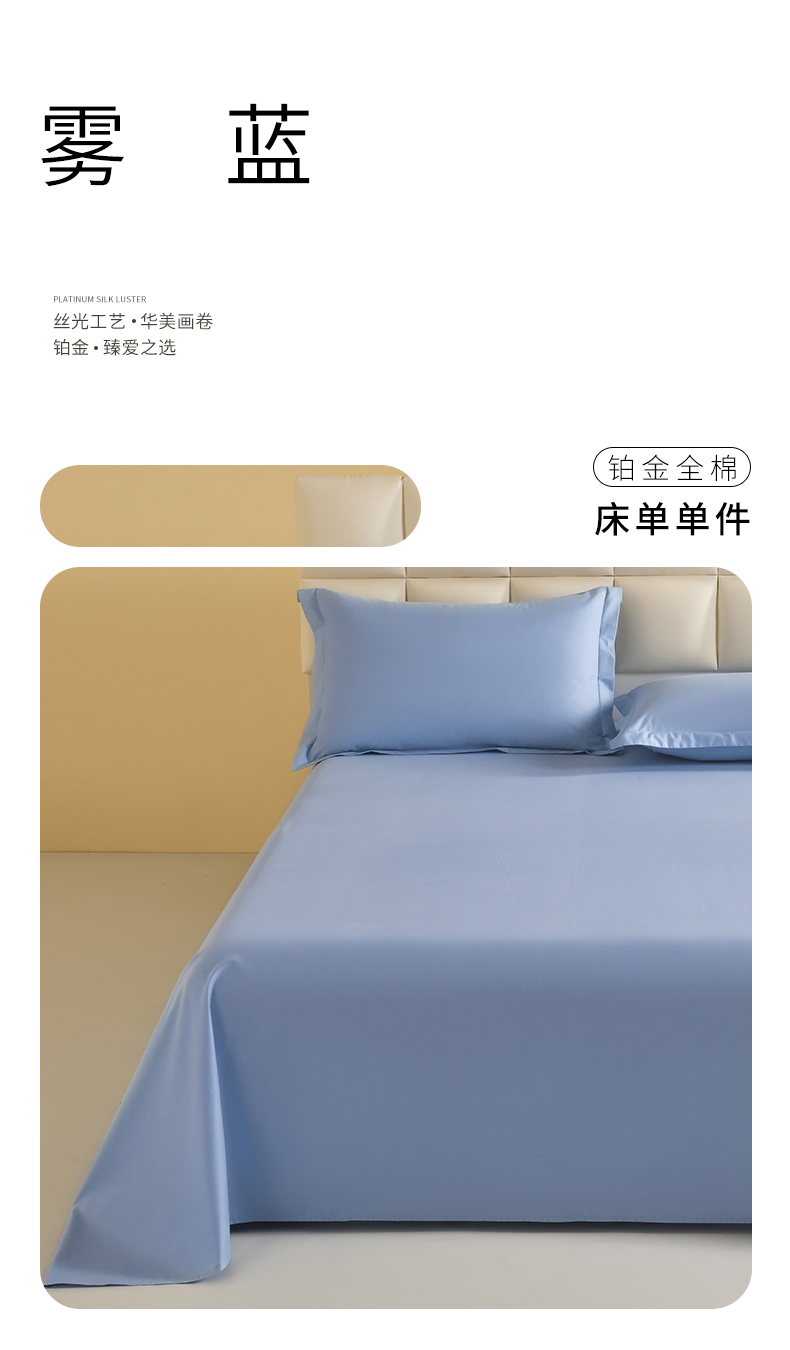 商品名称:元元被芯 2025款纯色全丝光-全精梳高密纺-铂金A类全棉单床单 雾蓝
